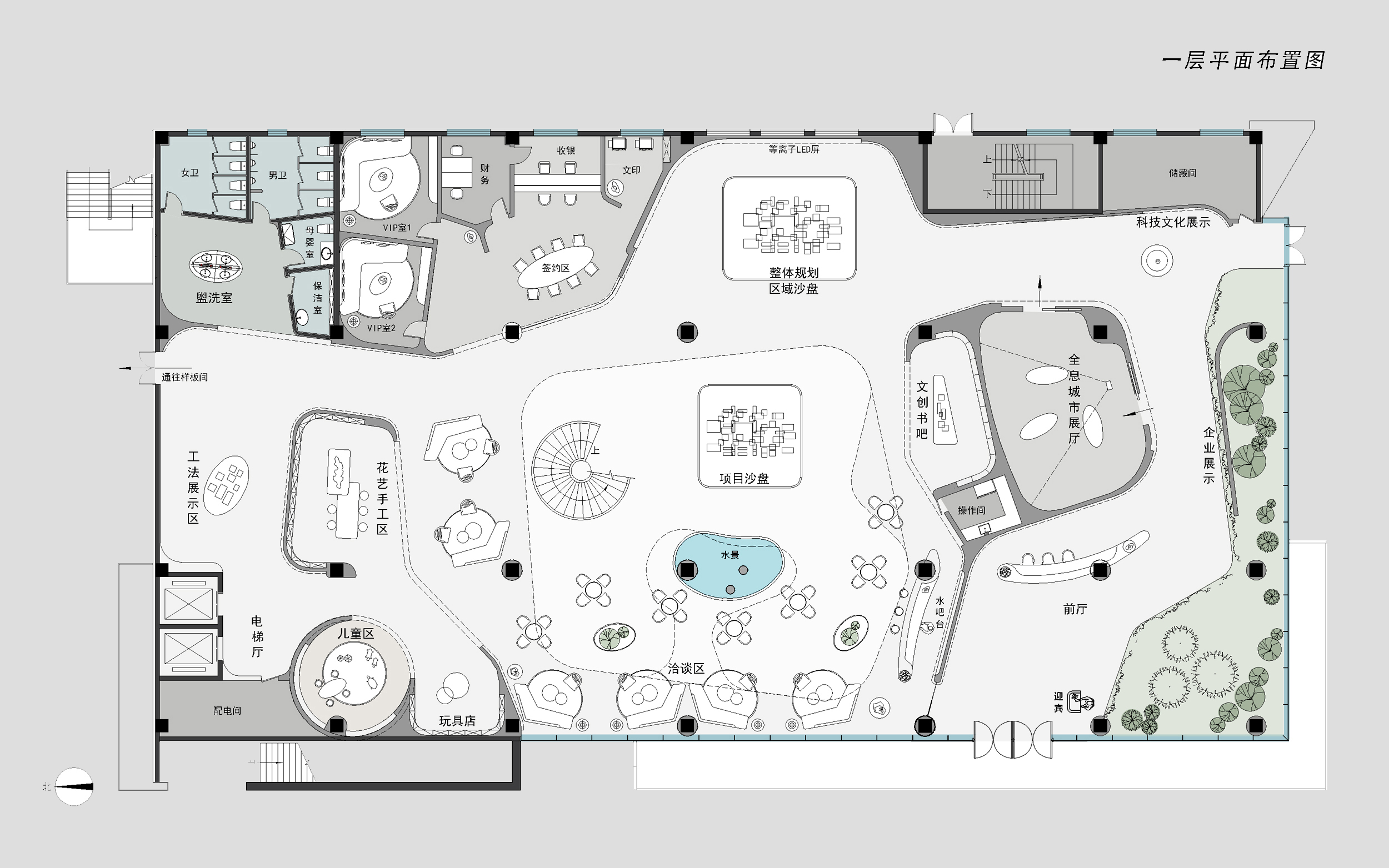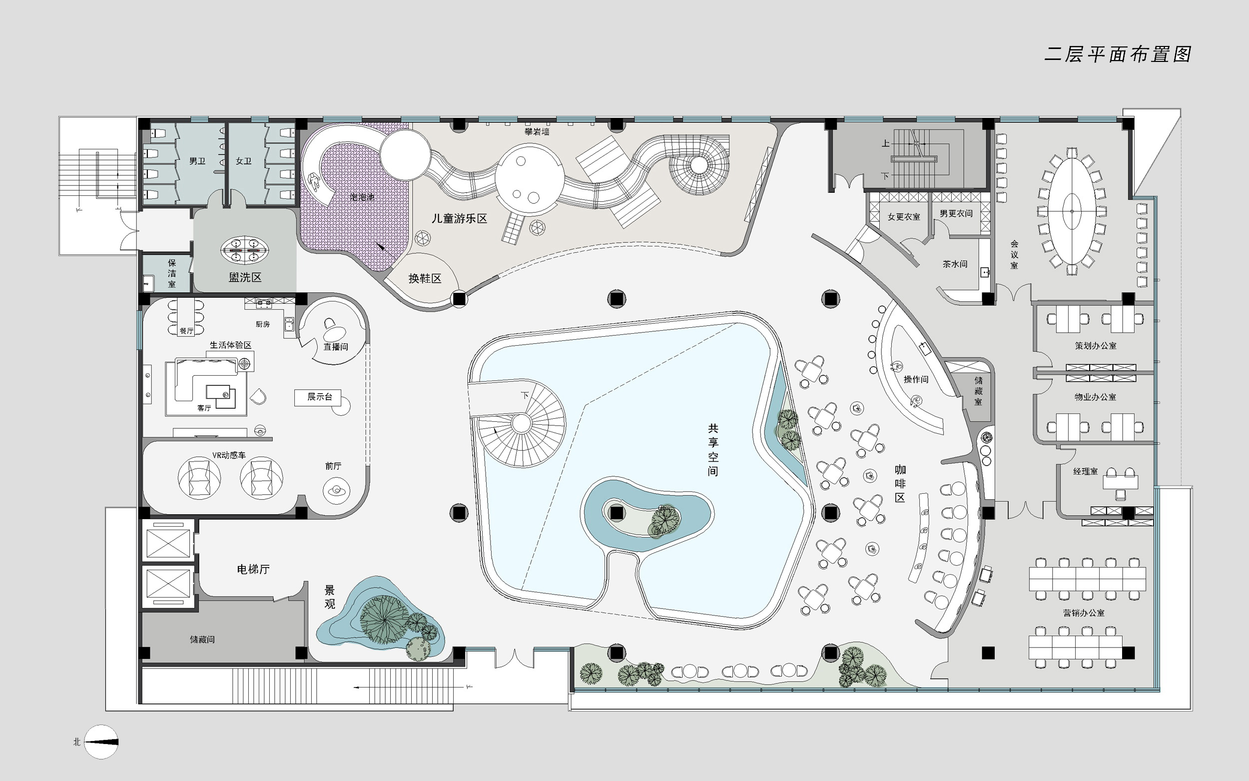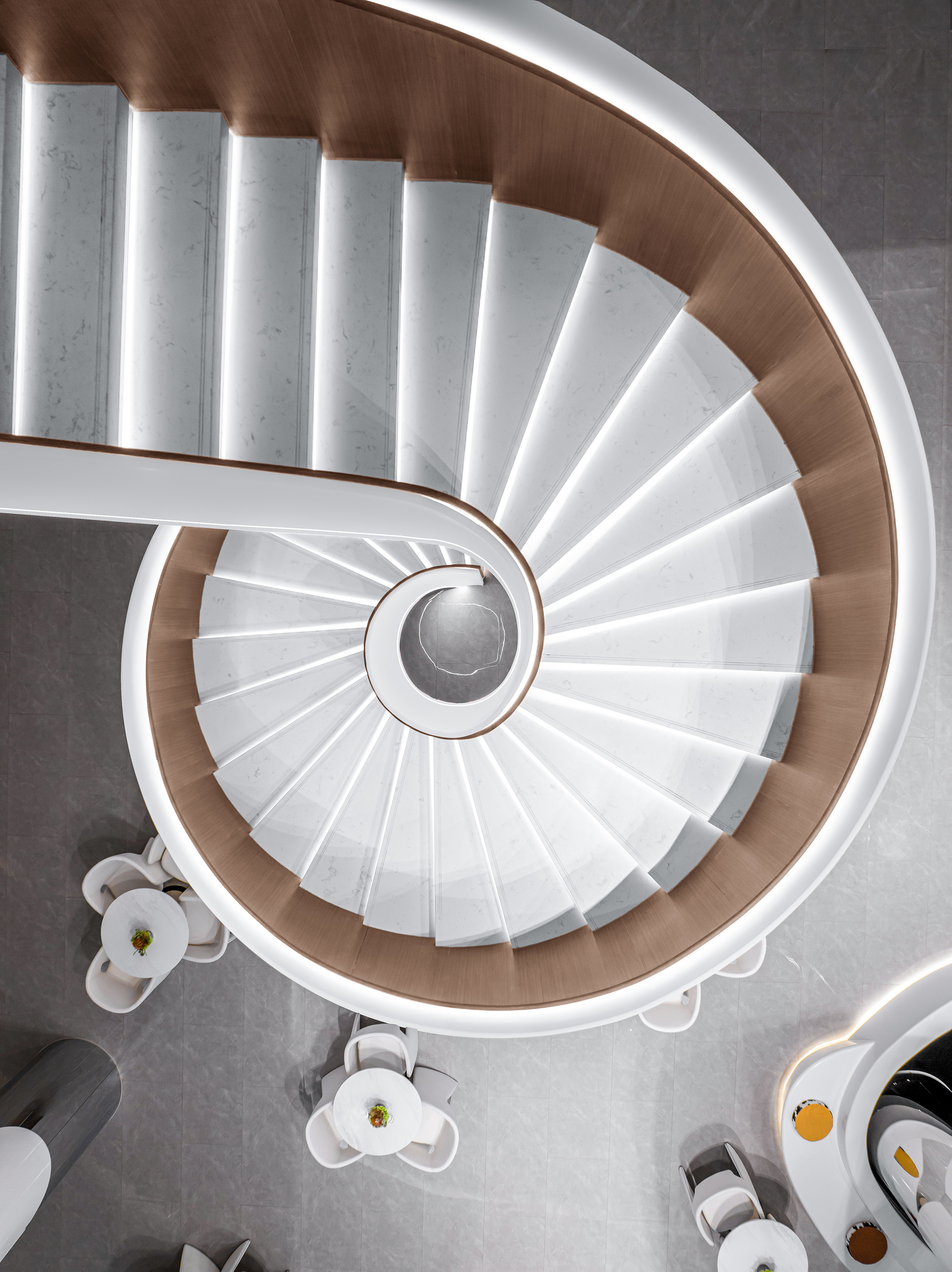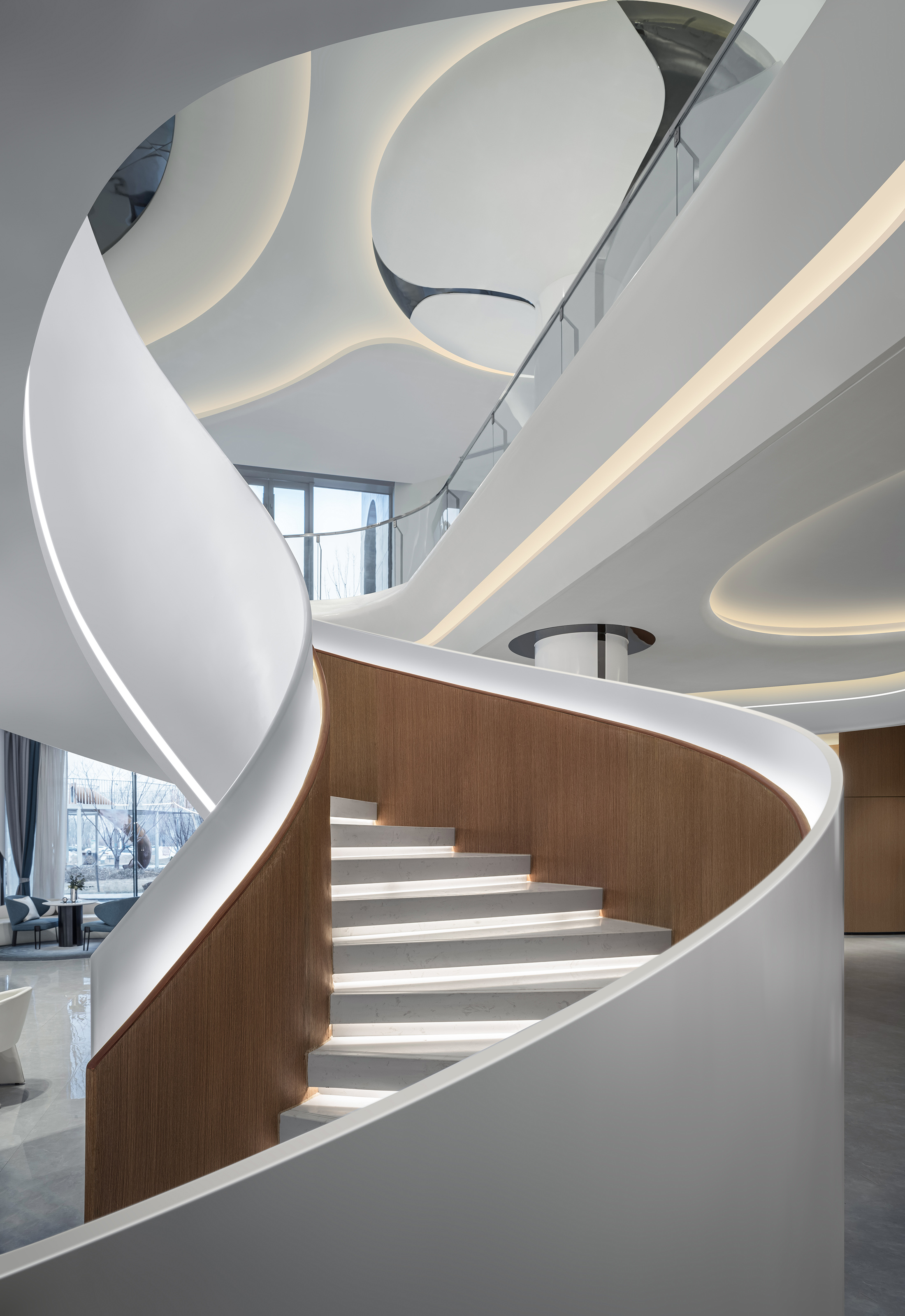 云梯、瀑台、洞穴、游廊,多重设计空间带来不同的视觉及情感体验,或宏伟、或奇幻、或温暖、或自然。自由的线条,带来灵动的空间,不断的层次与变化给人以无限的遐想。在这里,色彩是单纯的,心情是松驰的。白色表皮包裹着木色小天地,将花店、汽车展示厅、儿童娱乐区打造成一个个洞穴,温暖可爱,十分新奇,引人不由自主地想要去探究,在畅游中得到更多趣味的互动体验。