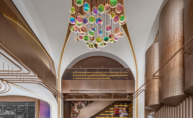 哈弗城的设计灵感来源于宫崎骏1986年的电影作品《天空之城》,这部近四十年前的经典动画作品至今令人难忘。本案中设计师用充满想象力的浪漫主义设计手法着重塑造空间的悬浮感,通过营造气势恢宏的叙事场景带人进入梦幻般的新奇世界。