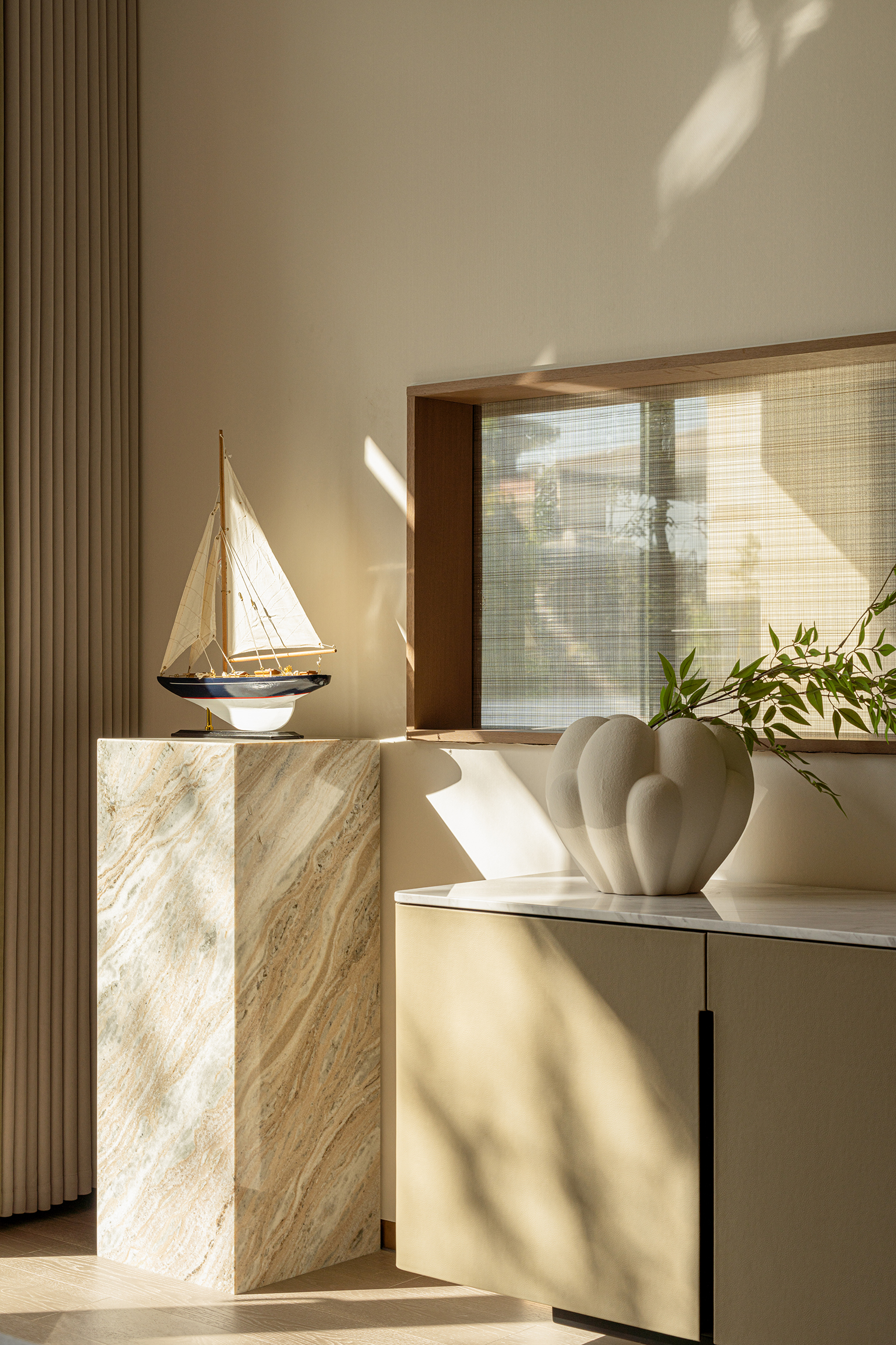 项目定位:建筑美学是一场关于空间与时间的旅行。本案设计师利用建筑设计的手法对室内空间进行释放与重构,将光影变幻与自然景色充分融入设计,结合人居特性及生活态度,打造出了一个轻松自然、自由雅趣的生活度假美学空间,对新自然主义进行了一场深入探索。