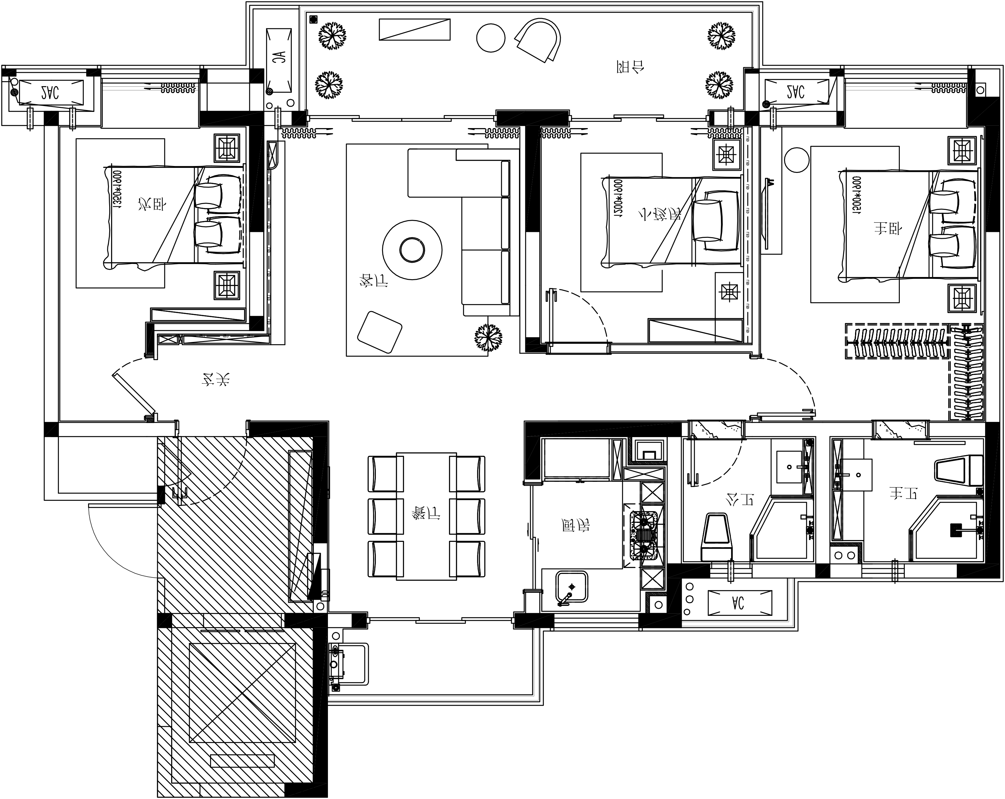项目定位:客群年龄阶段定位在30岁— 40岁,结合硬装资料我们对此户型提出都市“花园”的概念。花园,投射了哲学家、文学家、建筑师们对乌托邦、人类理想居住空间、自然与人工关系的想象与探索。