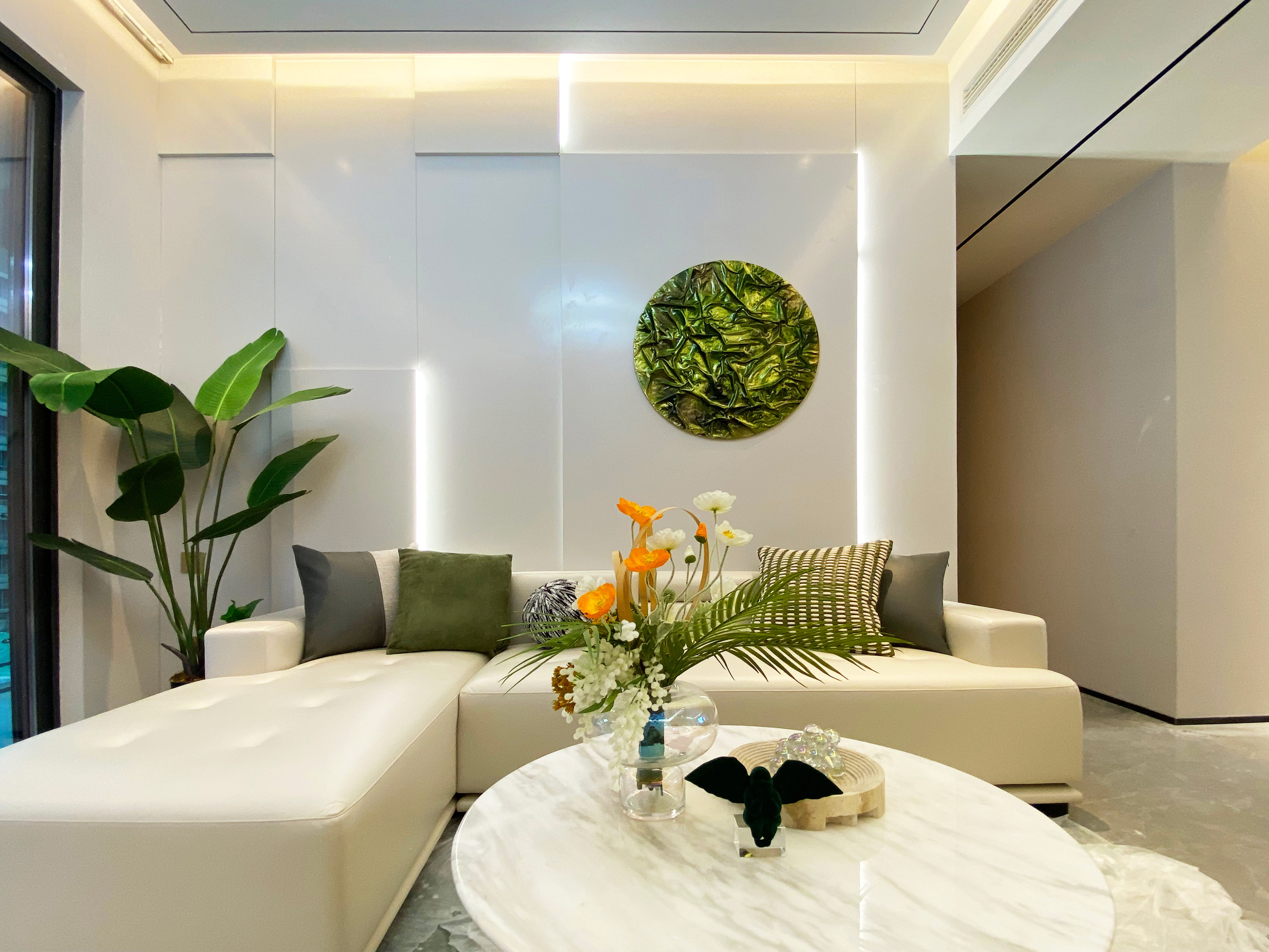 空间意境:遵循都市新浪漫主义的步调,本案藉由造型和色彩的纯粹性,与线条分明的硬装相契合,在美学中寻得平衡,呈现出都市中一座精致又野性的花园。