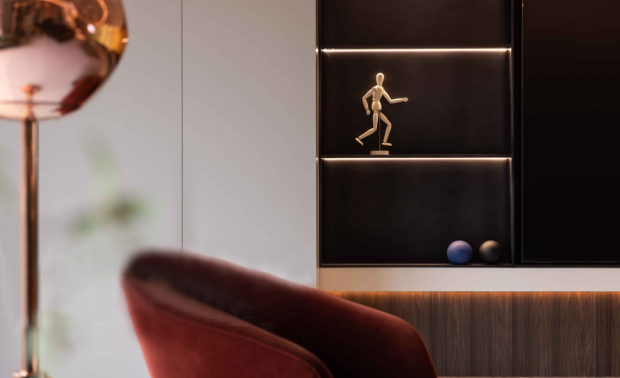 卧室区域入门墙全拆解,用极简门和艺术漆形成一体走廊,弧形过道端景巧妙过渡连接卧室,再次出现的弧面元素让空间神秘出彩,尽显独树一帜的空间气质;注入独特的优雅气息,让空间更加灵动精致,减少循规蹈矩的刻板感。