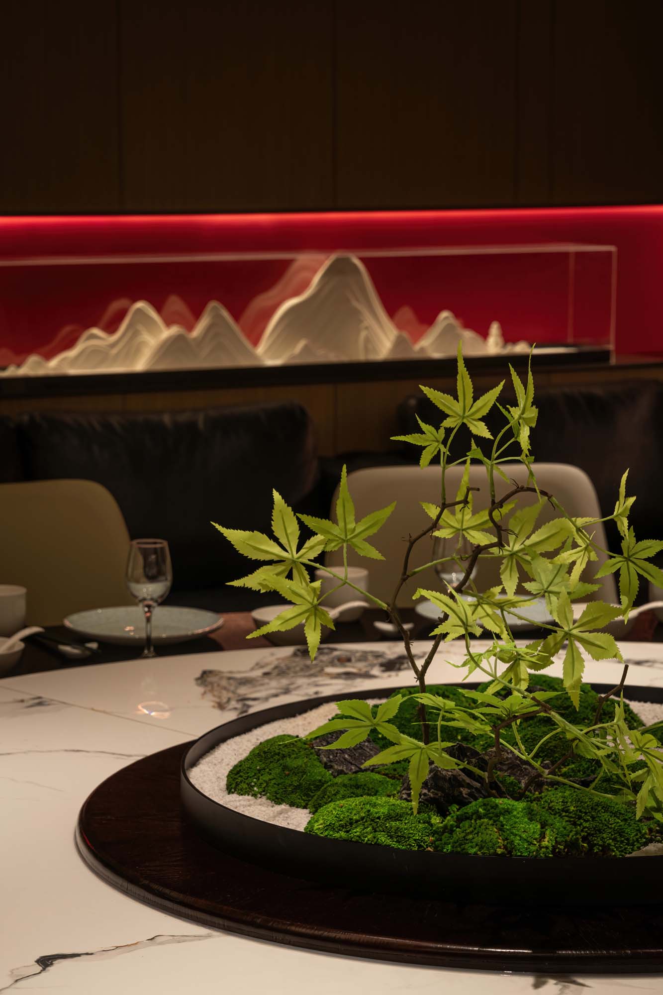 空间布局:空间规划方面,设计师进行了外科手术般地解构与重组,通过对建筑向下半米的深度挖掘,换取了楼板搭建的半层阁楼。为食客们营造出独享的就餐角落,绝佳的视角可以俯瞰整个用餐大厅。食客们沉浸其中,仿佛进入了一幅意境深远的画卷之中,而在设计的魔法中,他们即是观赏者,也是被观赏的一部分。