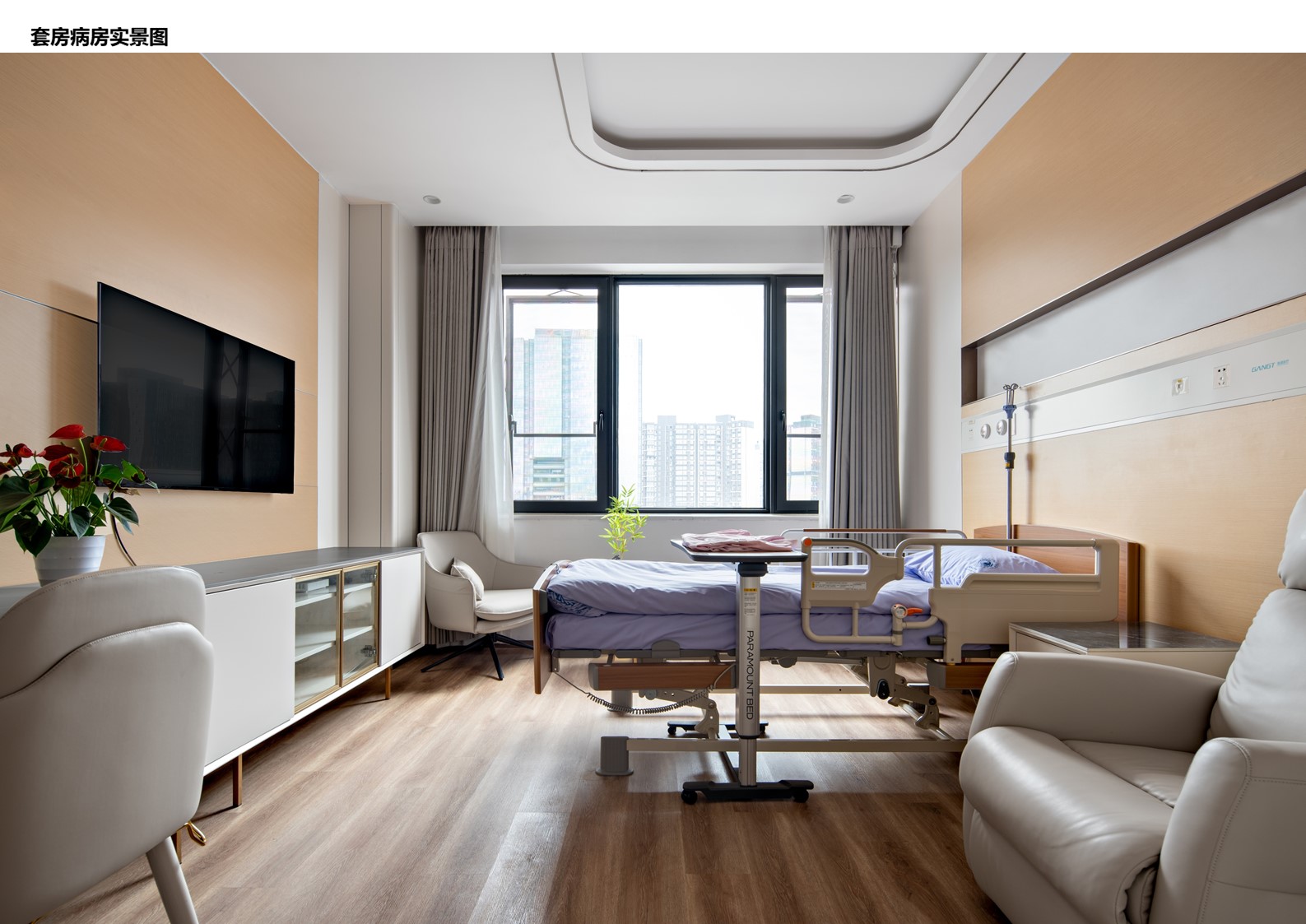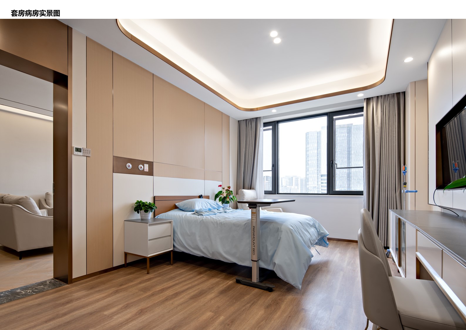 空间布局:本项目主要针对15-16层27间单间病房、8间套间病房及公共区域进行打造提升。改造后的病区布局有良好的私密性,具备酒店式及家庭式的环境氛围,病房配备完善的医疗设备、家庭化、智能化服务设施。公共区域的布局上打破传统陪护格局,为陪护家属营造一个有温度的休息环境。