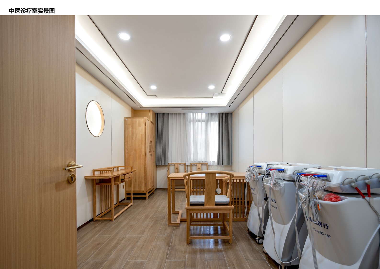 空间意境:项目方案整体以去医院化的医疗环境为设计思路,以现代化的设计语言结合中医传统文化和理念,以现代中式·东方美学——中医与城市文化、地域元素之间的碰撞为设计主线,提取自然元素中的色彩,色调在雅灰色的基础上传达温馨与舒适感,适当运用亮色进行跳色对比。软装配饰上运用金属质感,赋予空间层次与品质。