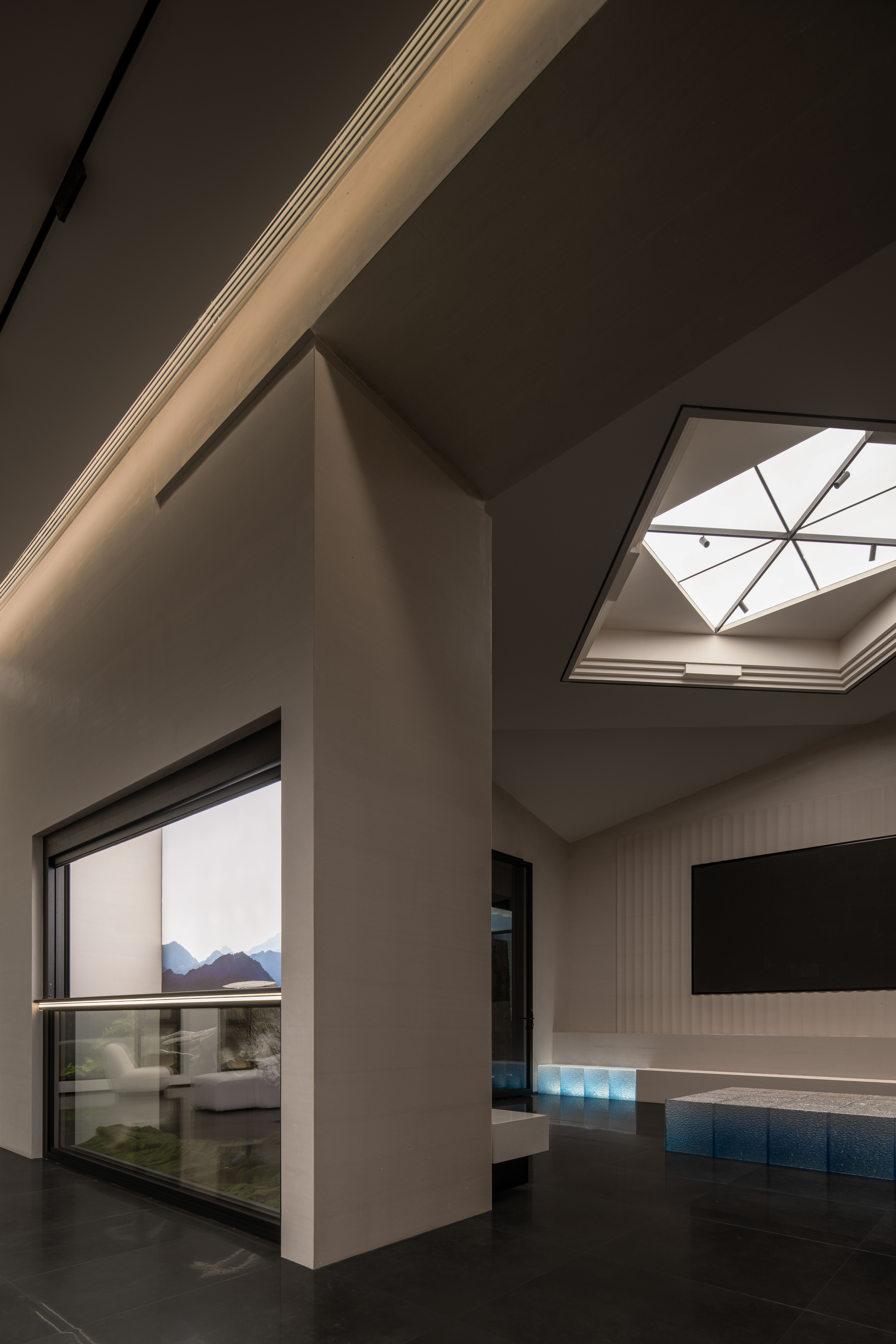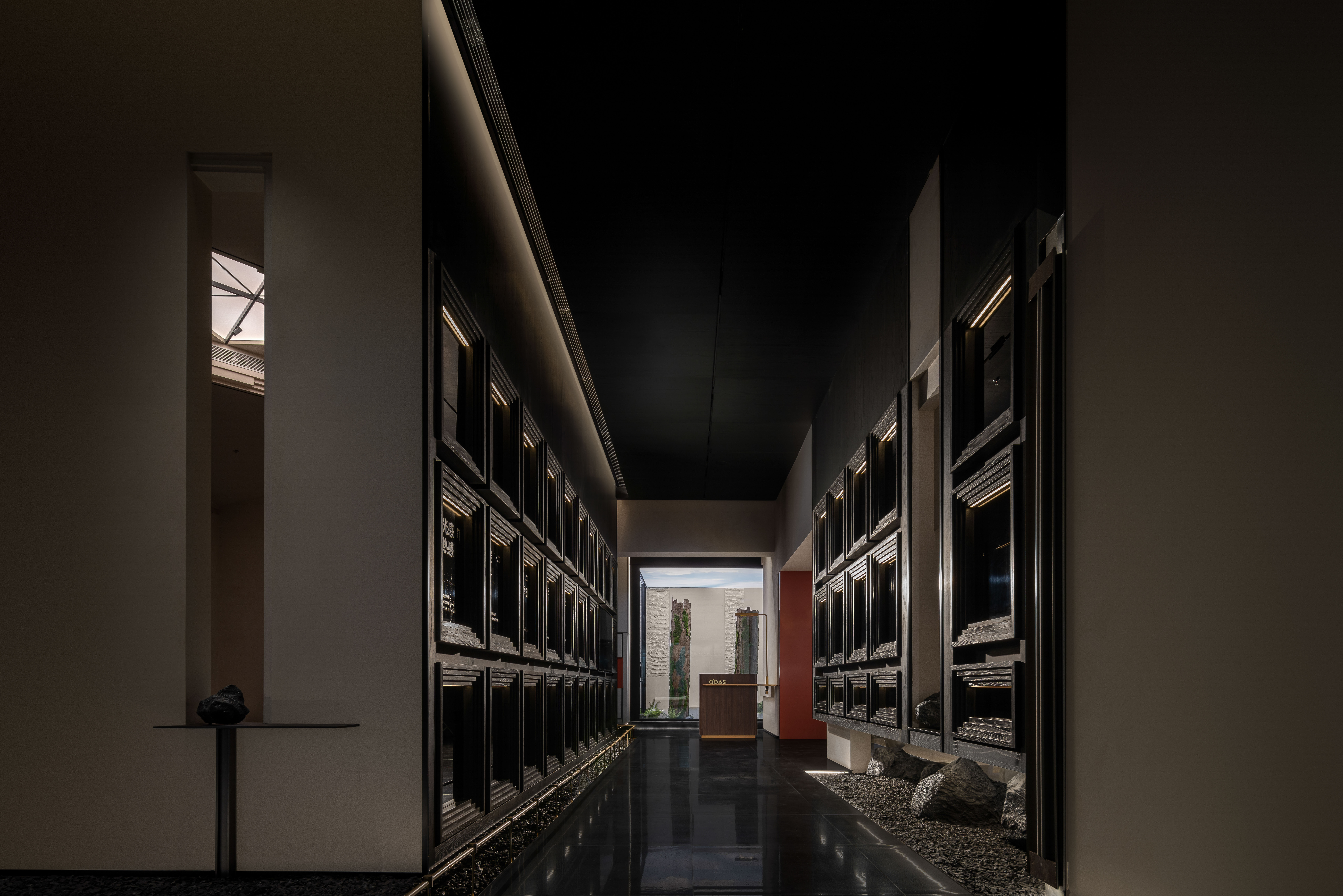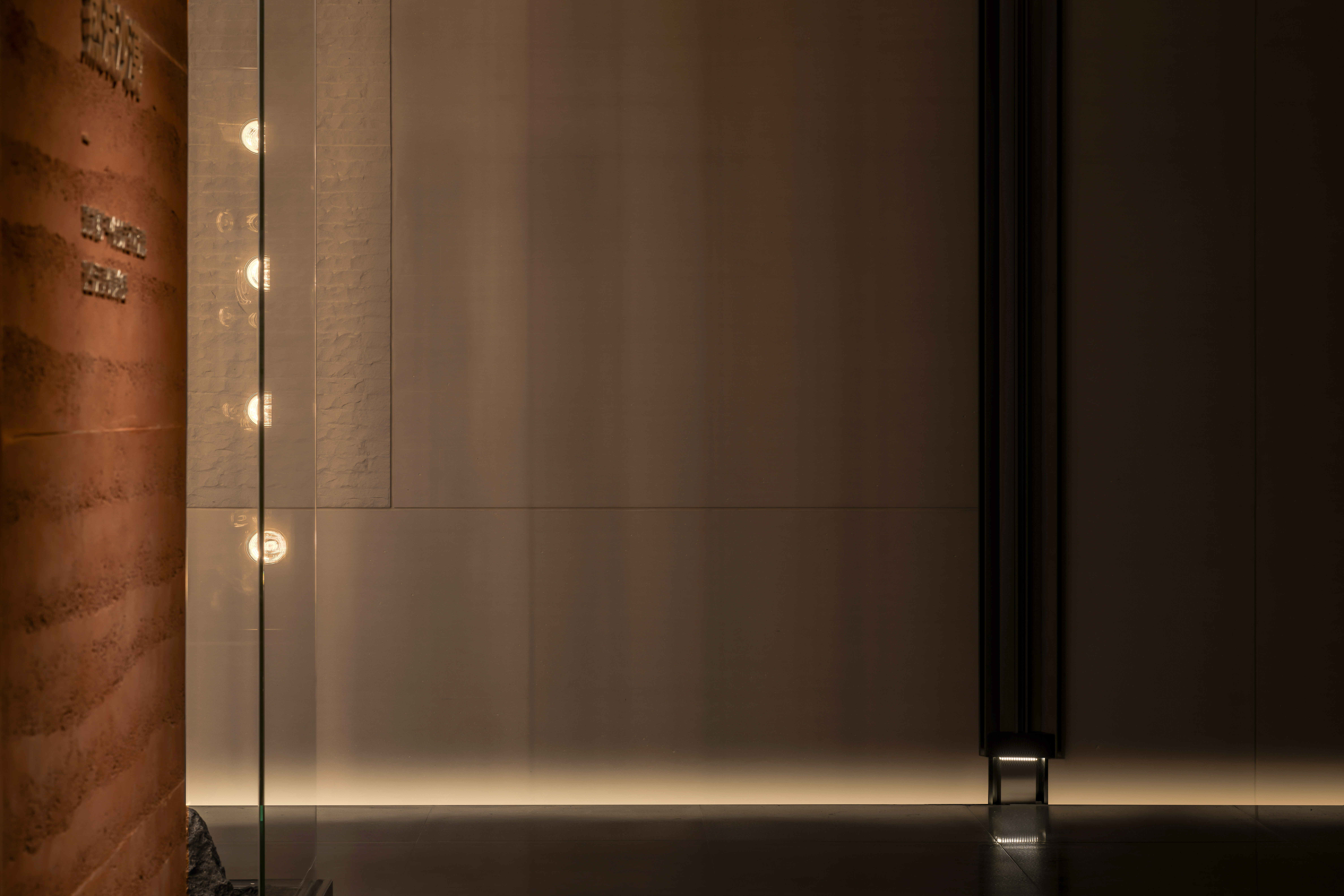 引光入境;微妙的细节强调空间质感,凝聚成极致的空间体验。光的凝练,材质之间形成的碰撞对比,由远及近,由浅到深,呼吸之间,流淌着自然永恒之美。