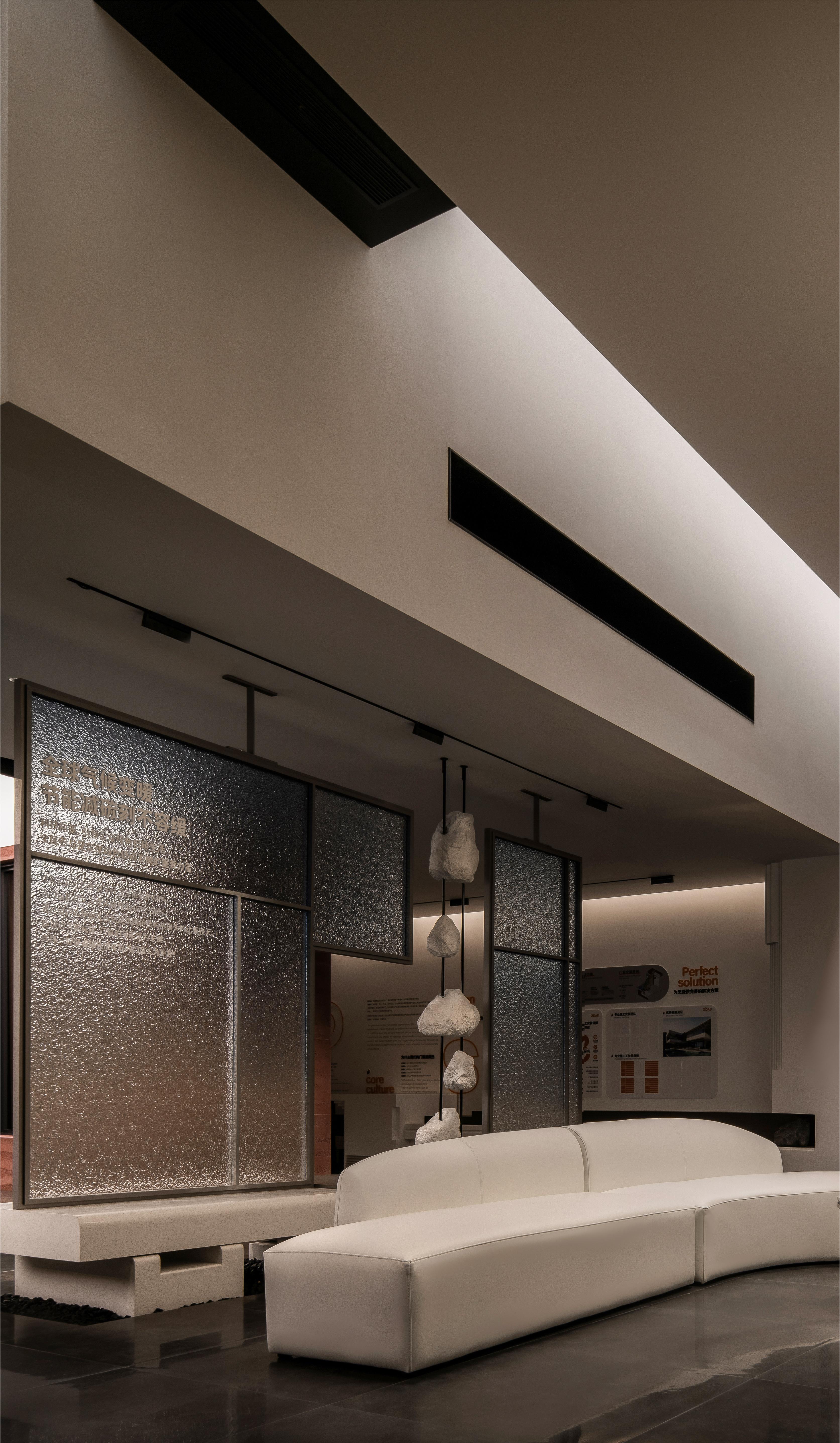 品牌展厅不仅是产品的展示,而是给予观者一定的空间,使观者在进入其间后,充分感受、体验、探索,从而形成与品牌之间的互动与情感连接。针对品牌属性,设计师规避传统展厅的陈词滥调,以“建筑”的概念展开空间叙述。