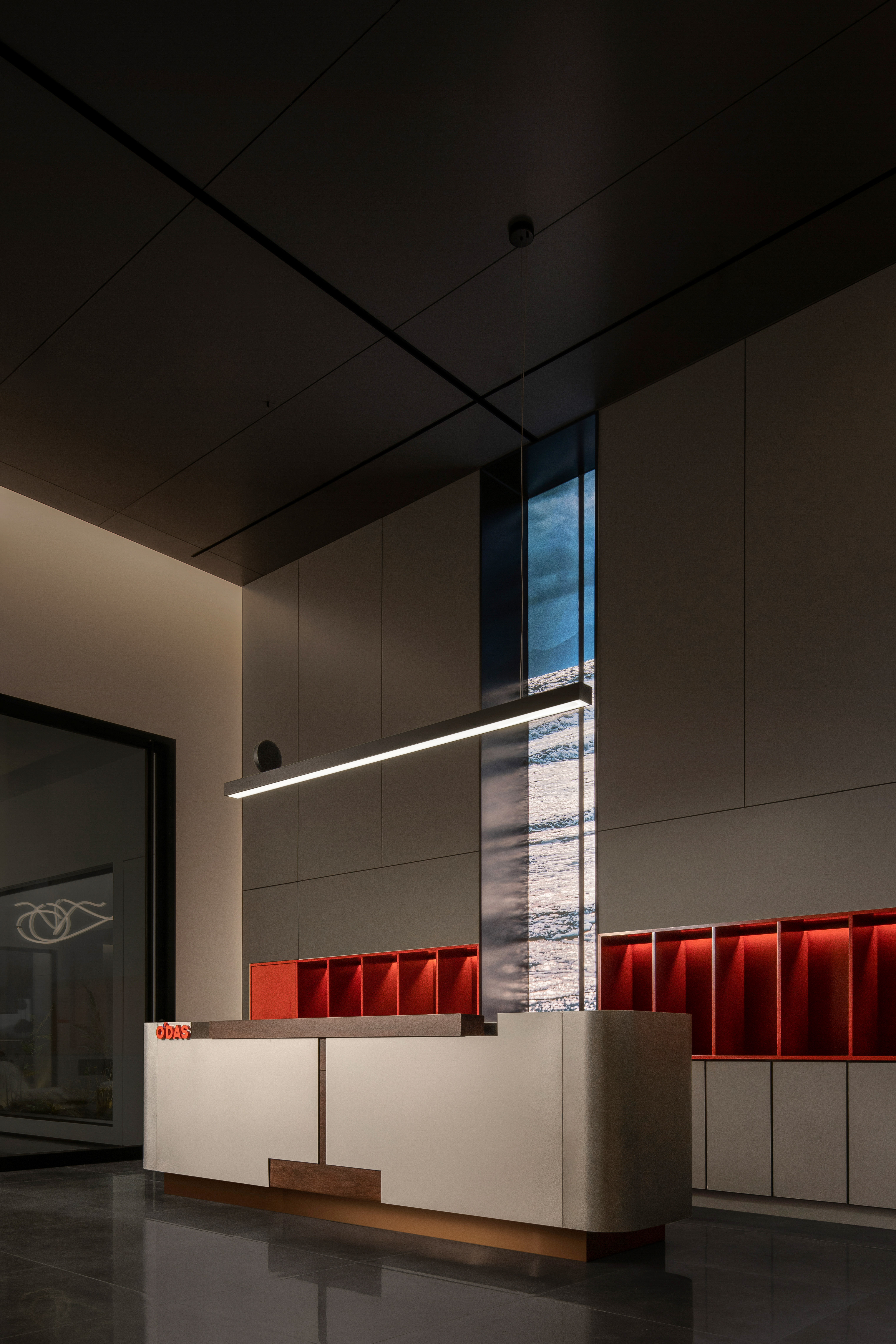 外立面结合了色彩、质地和形式、一个由柔和的沙漠色调组成的分层画布,从中体会品牌理念的可感知形态。