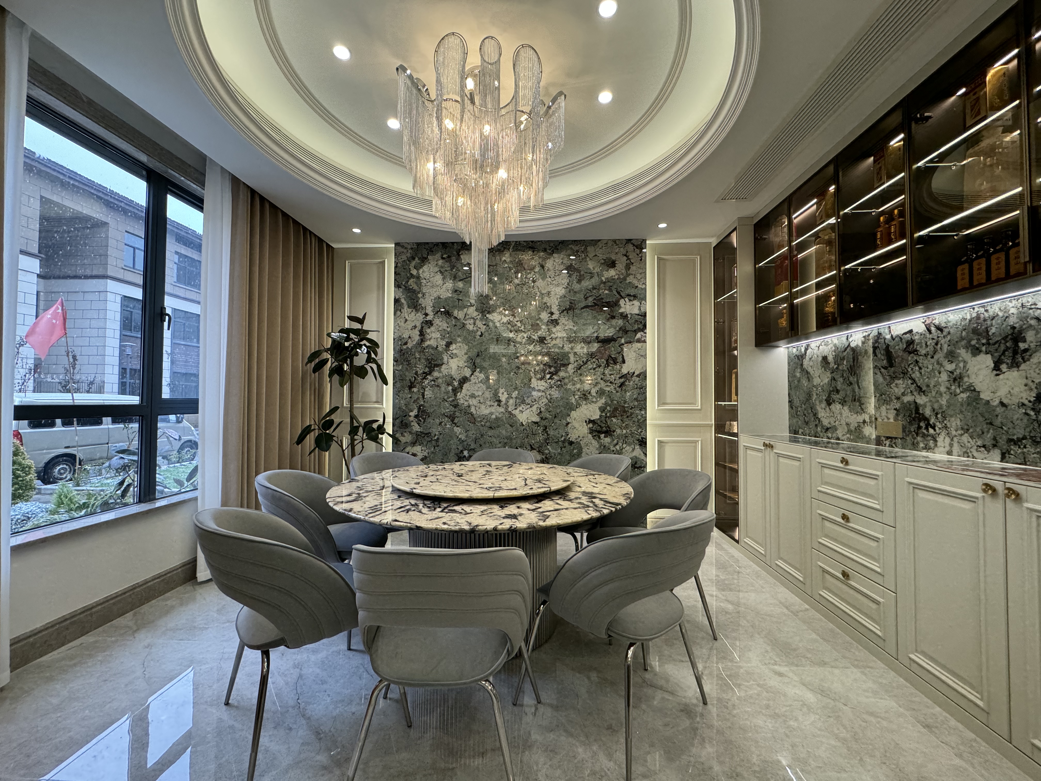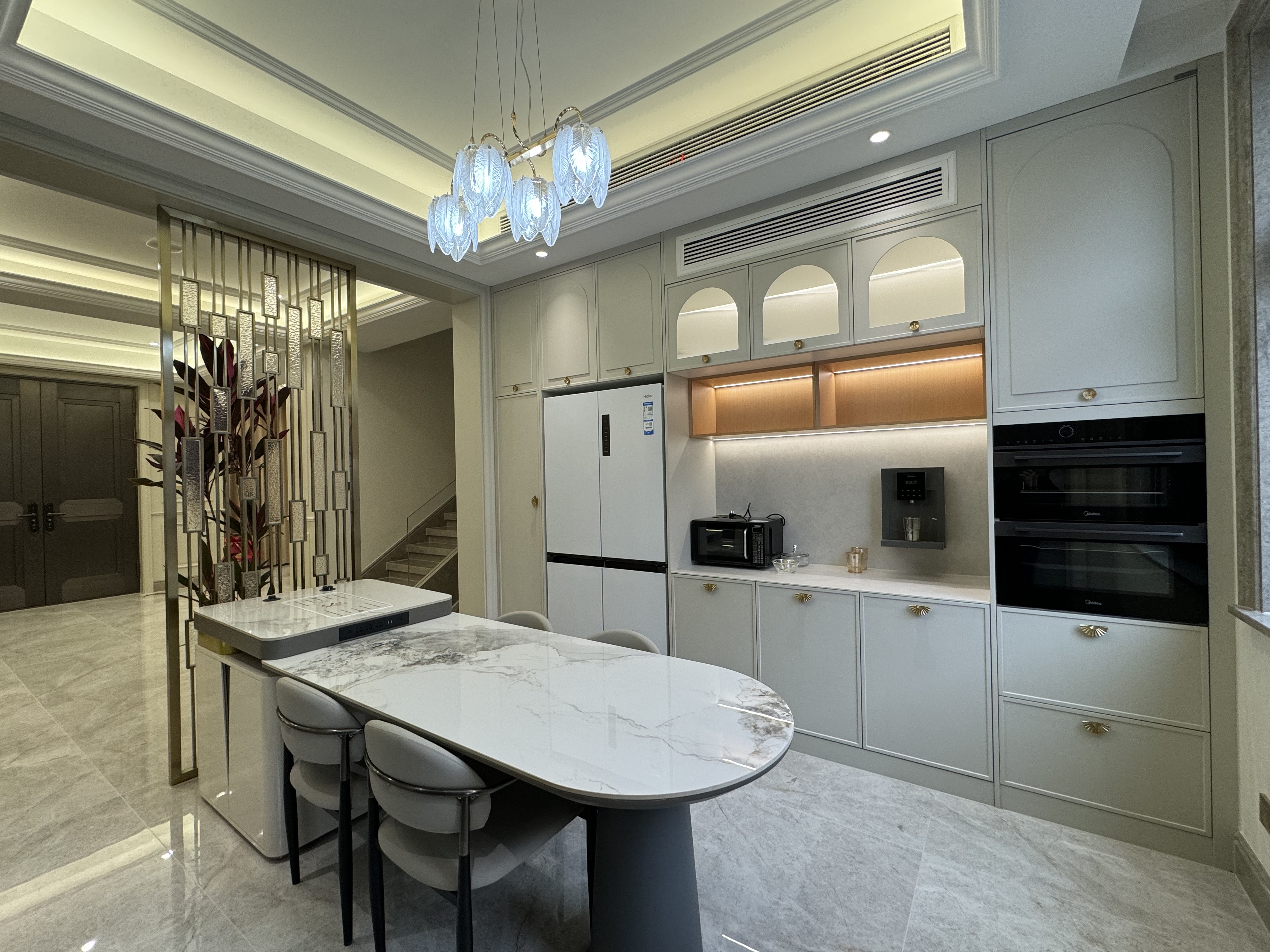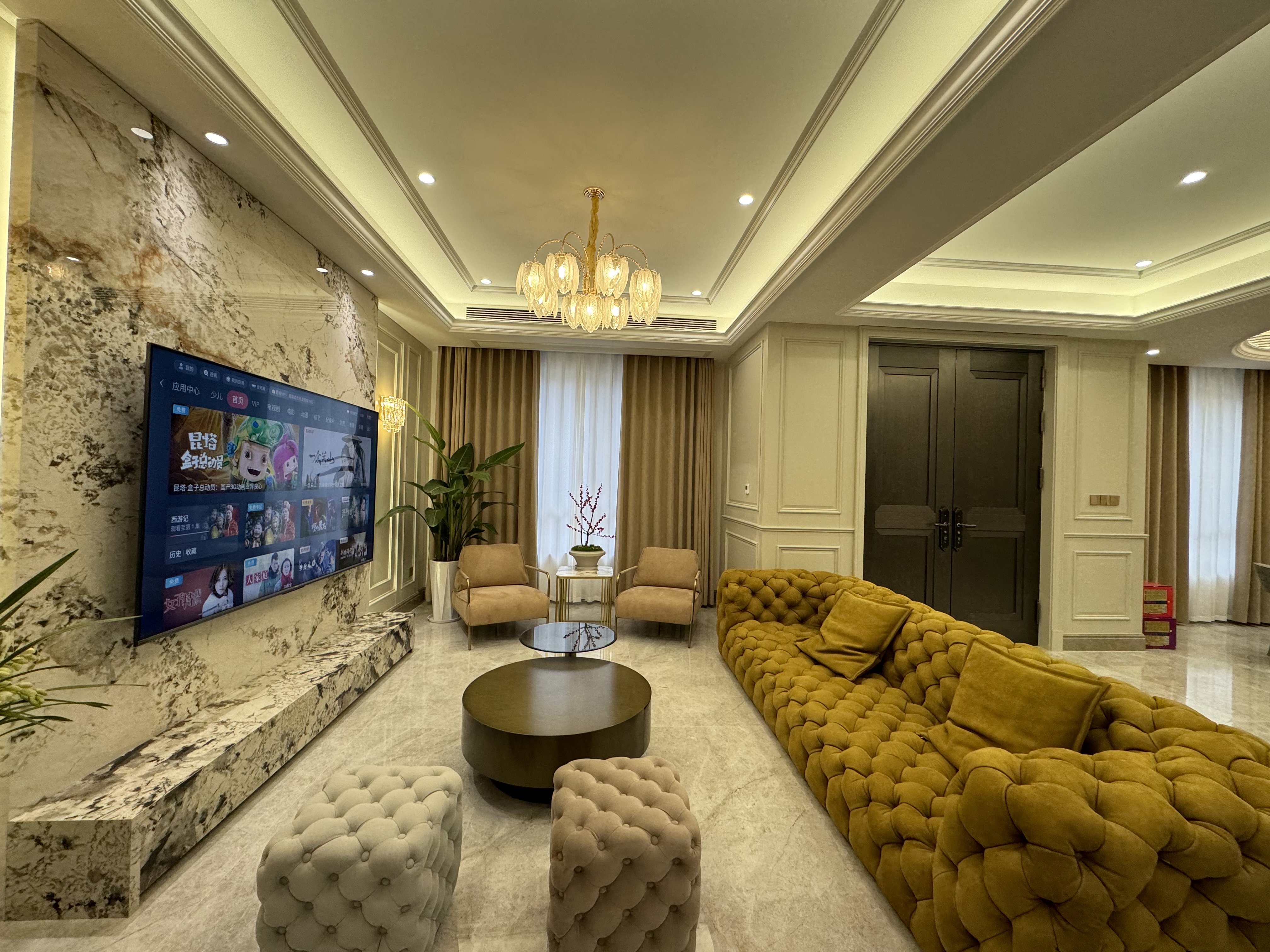 项目定位:本案例以轻奢法式的风格定位设计理念,采用米色法式木作及跳色系参差点缀,采用经典的奥特曼大理石及奢石背景装点背景空间。设计中采用开放式空间理念结合隔而不断的屏风及软隔断,来打造别墅大空间氛围感和灵动的生活空间,给业主一个舒适、敞亮、奢华、精致的家的空间。