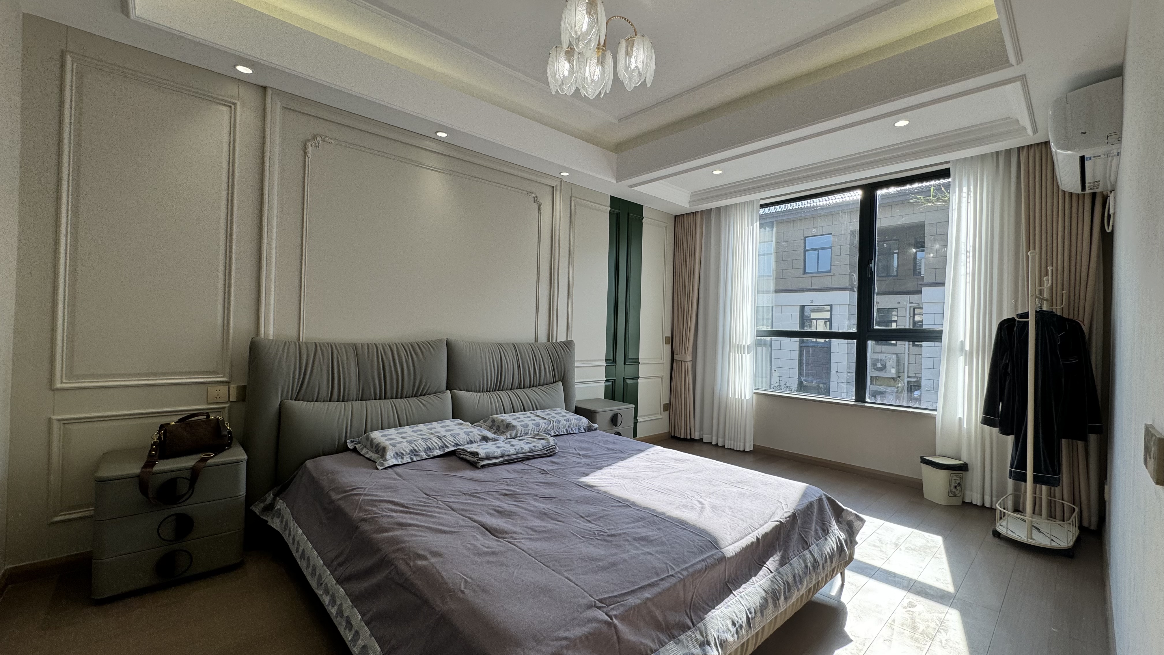 空间意境:精致的法式轻奢居住空间、开放式大空间设计、跳色系木作点缀、精致的软装搭配。