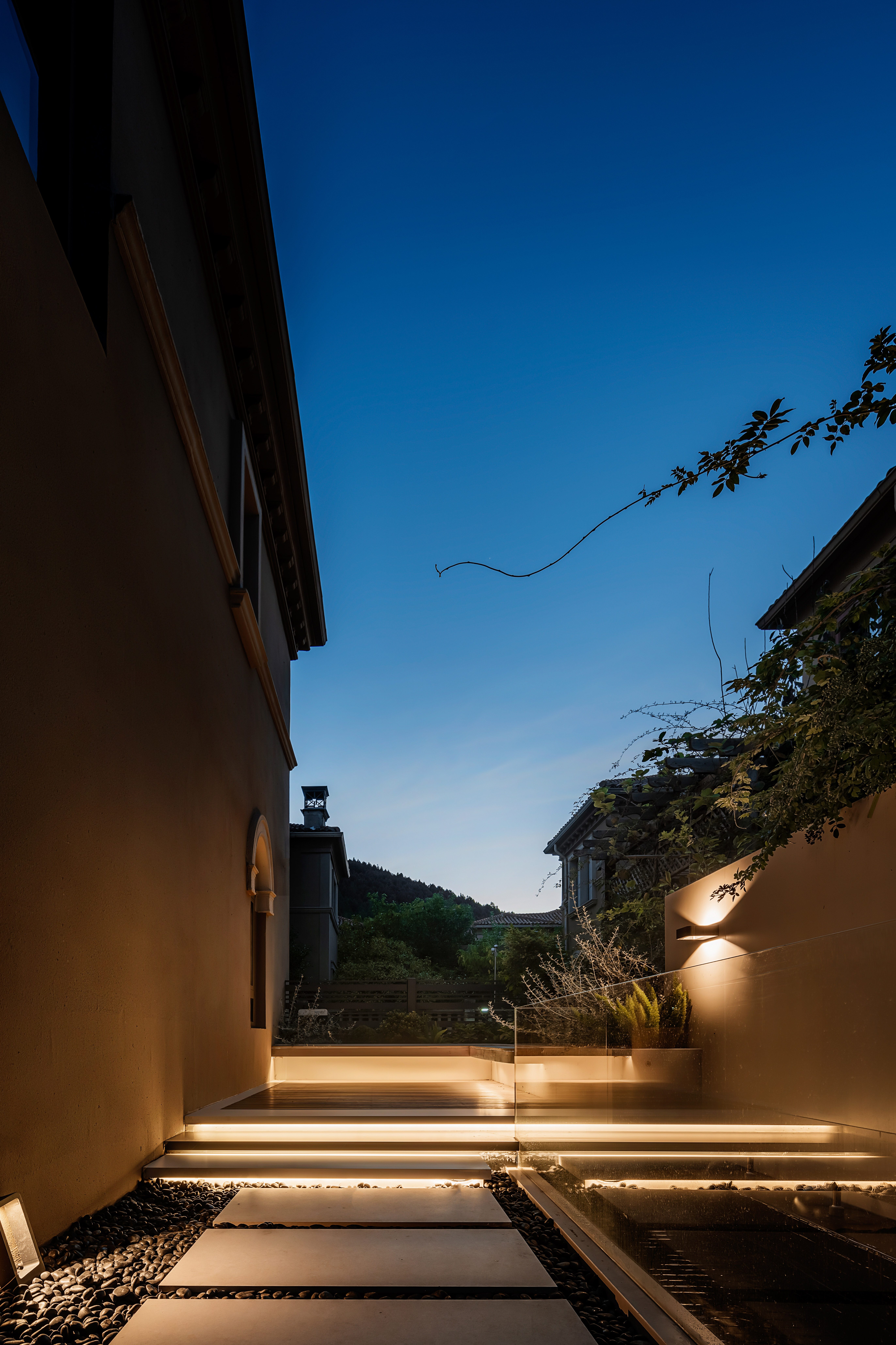 空间意境:远处的山 夜晚的蓝调 黑白光影的交织