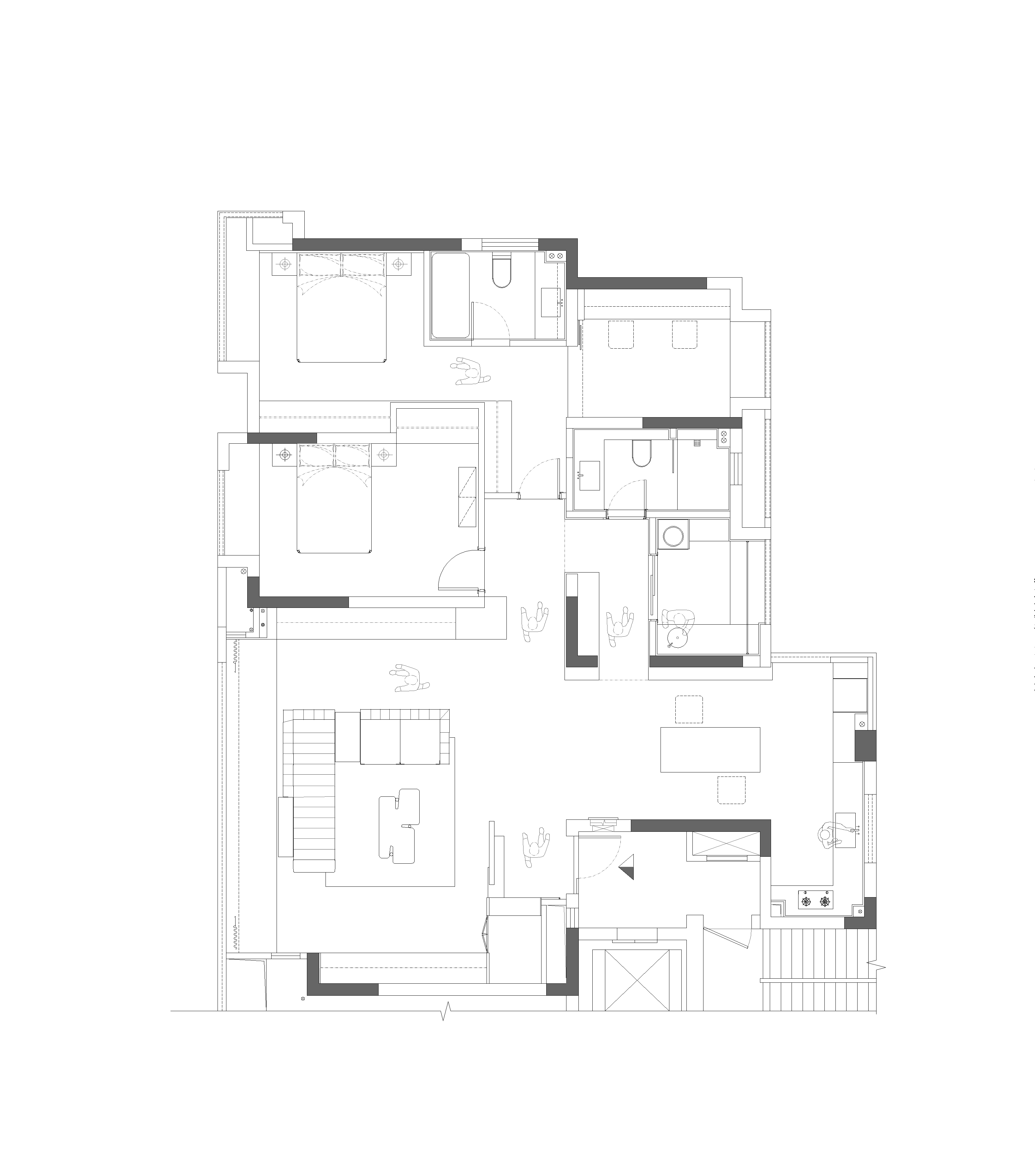 我们通过对空间的分割与重塑,将不同的场景进行有效的区分;试图改变使用者看待空间的方式,希望透过拆解并重新组织空间的手法,让居住者体会到不同于以往的空间形式,并在空间中发现更多的生活体验。
