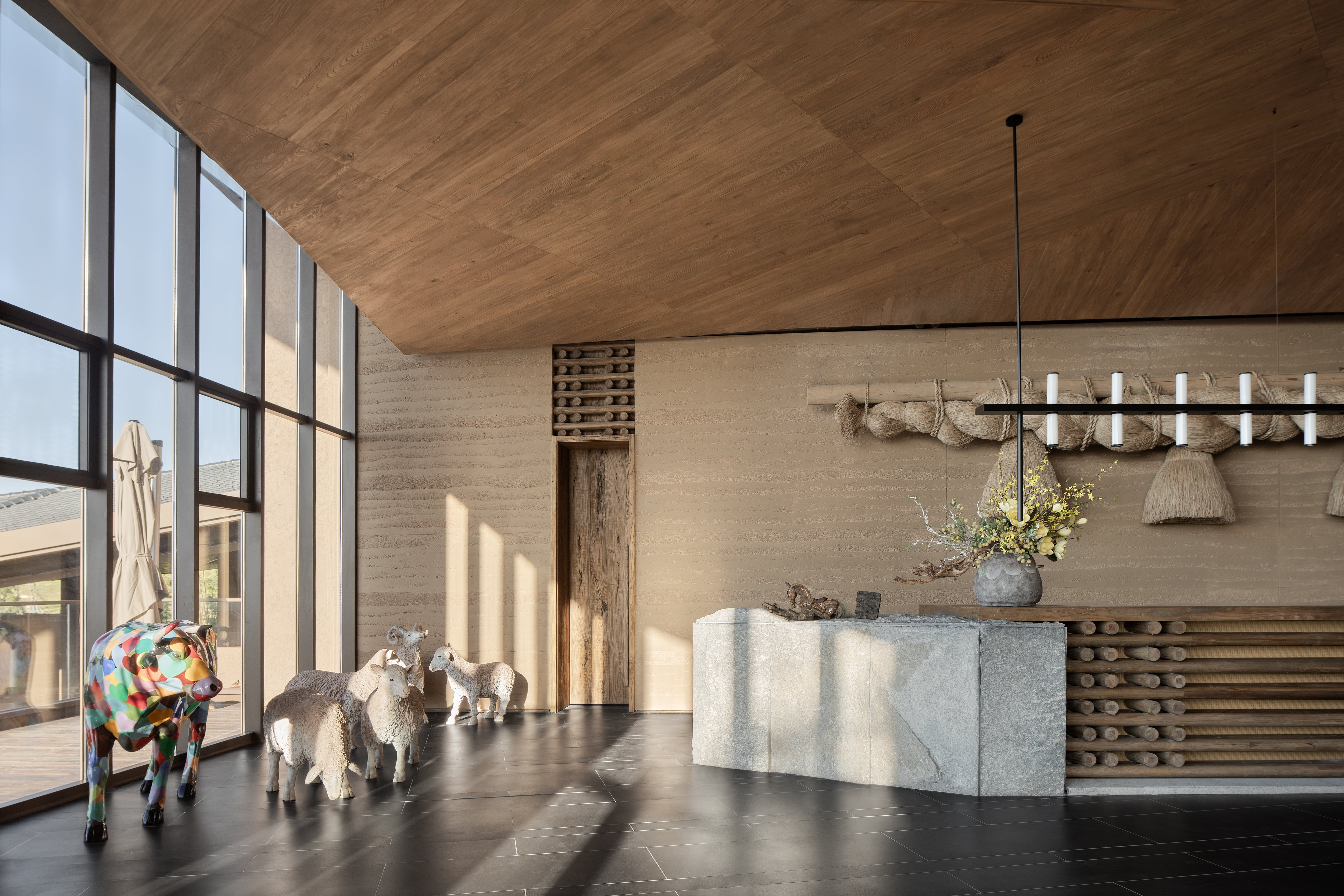 空间意境:设计上尽量用自然、原生、当代的素材和表现手法去还原一个轻奢放松的牧场主题度假酒店