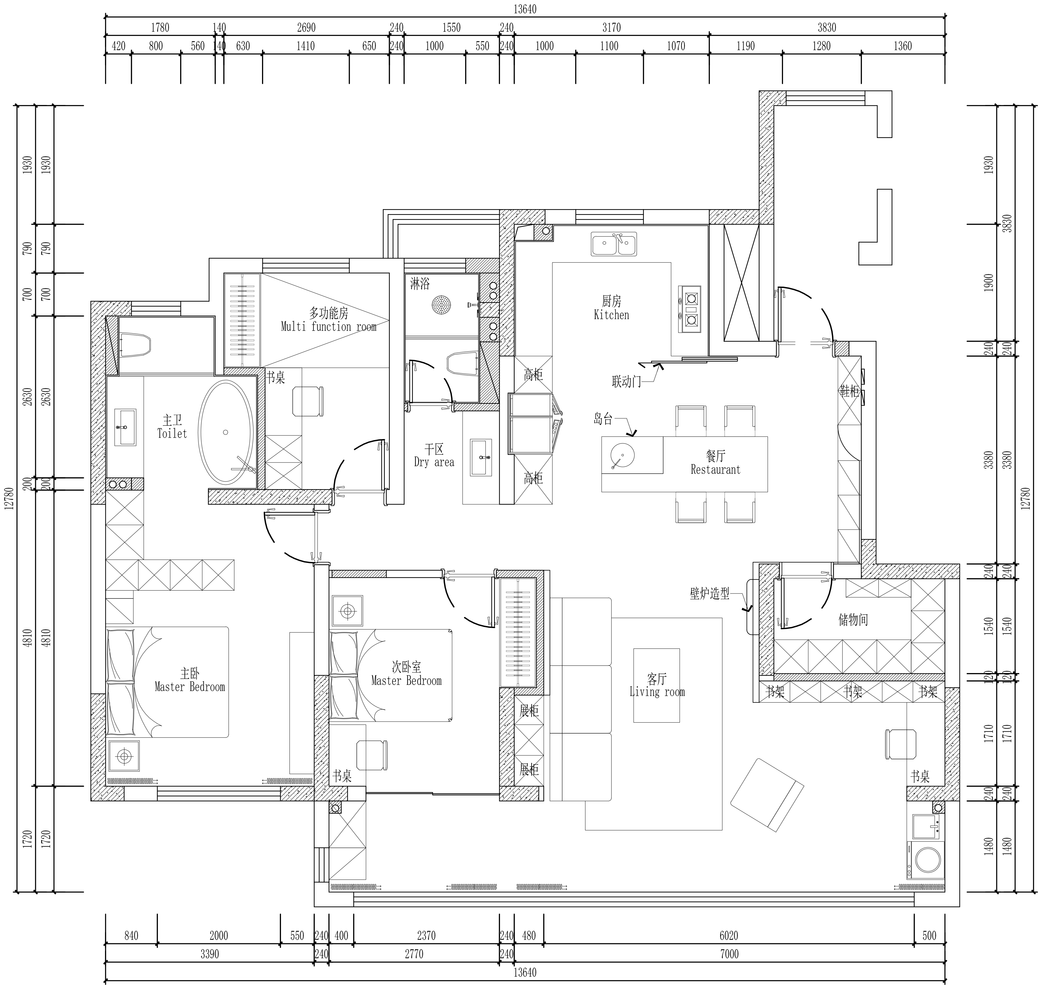 二是在把书房,阳台空间做了延伸,在这个规划上多了储物间,弥补了家庭的储物功能 -