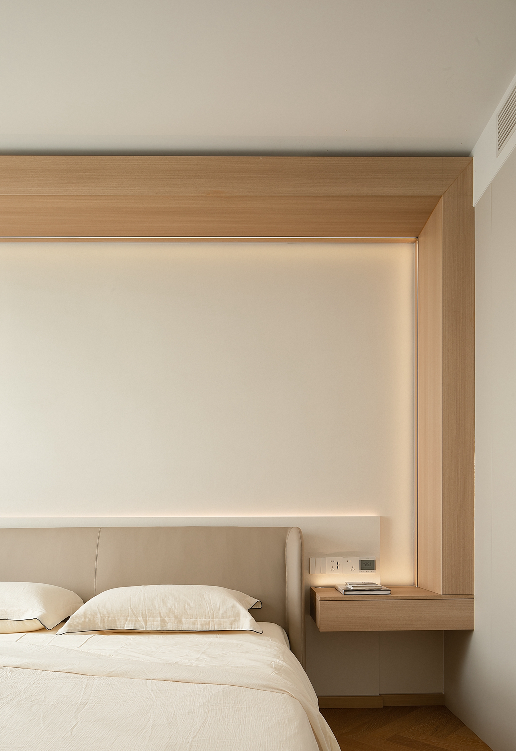 项目定位:本案通过木质独有的温润自然的气息,构建柔和天然感的生活场域。以极简风格为主轴,简洁的家具与空间线条塑造轻盈质感,大面积的木质介入,柔化了极简带来的疏离感,营造舒适的宜居氛围。空间中的材质、颜色、家具,装饰……无一不在调动居住者对生活的感知,让美的力量在生活中滋养而生。