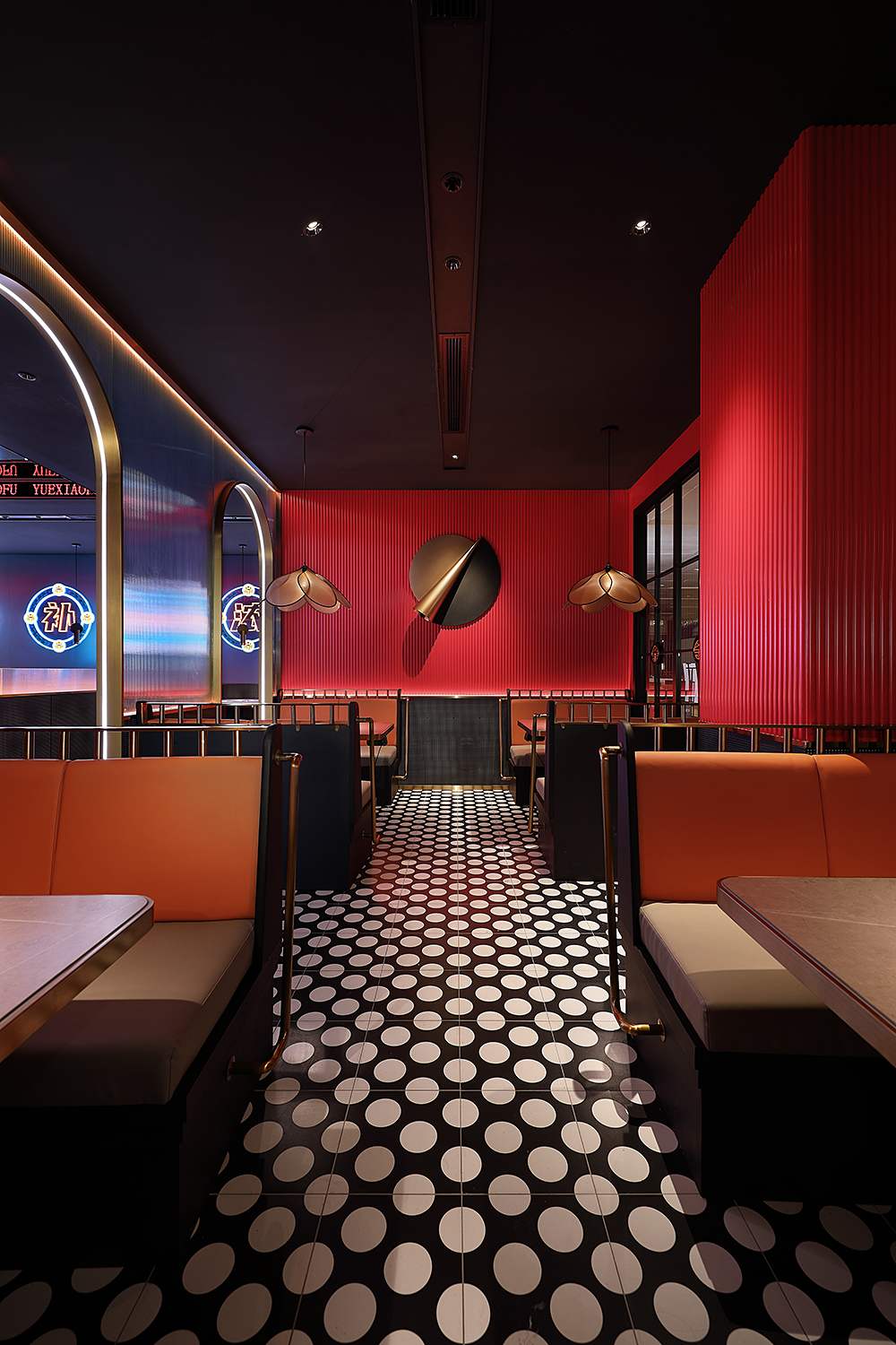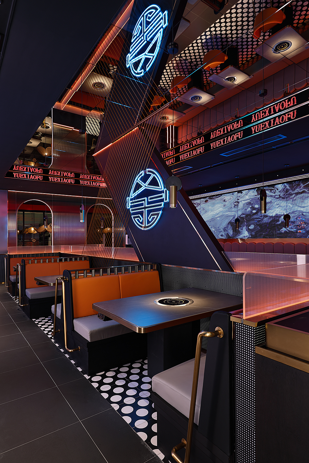 灯光是一个空间的灵魂,音乐则是一个空间的思想。粤小釜作为一家rap主题音乐餐厅,设计师精妙的将乐器的元素融合在场景装置里。