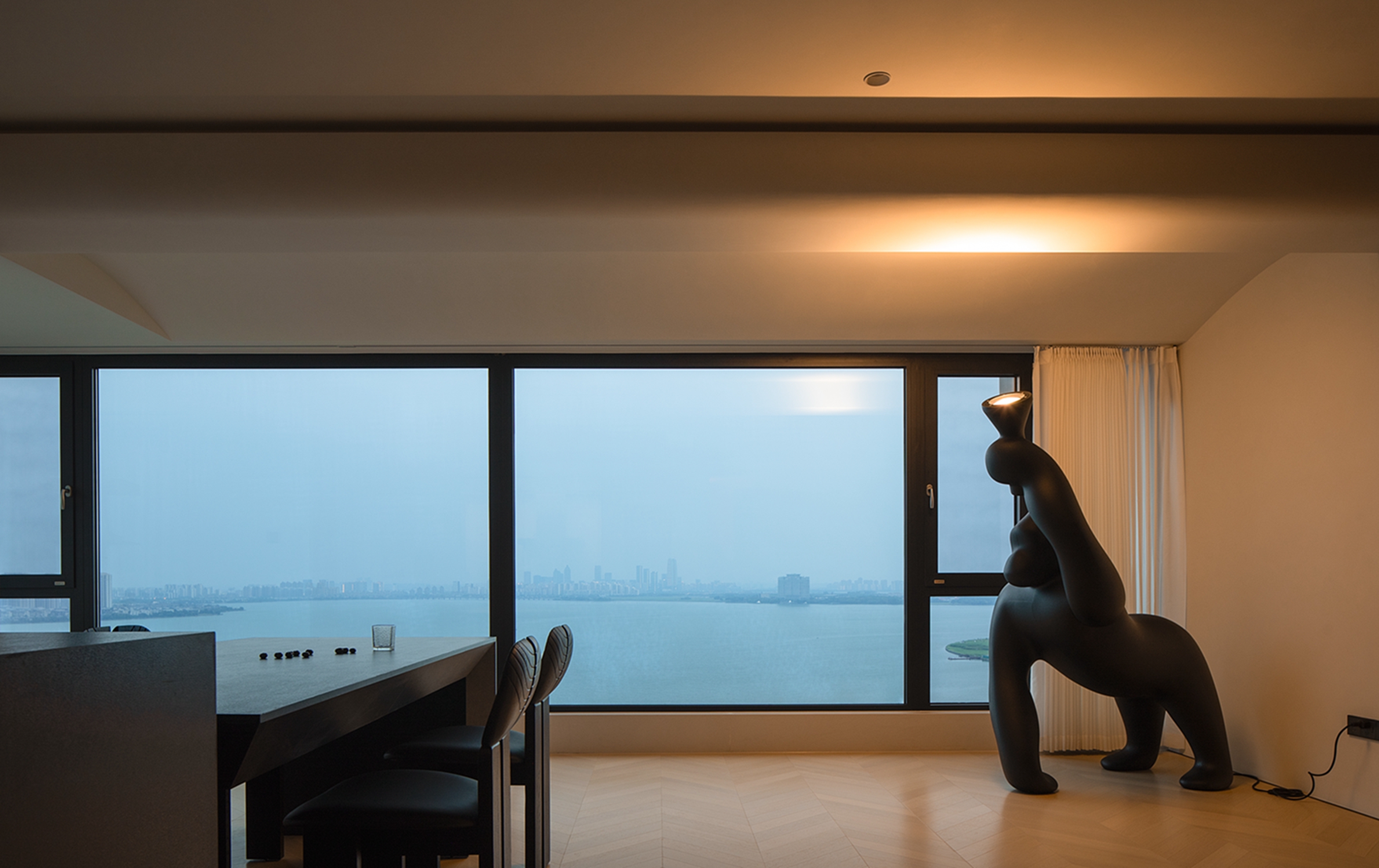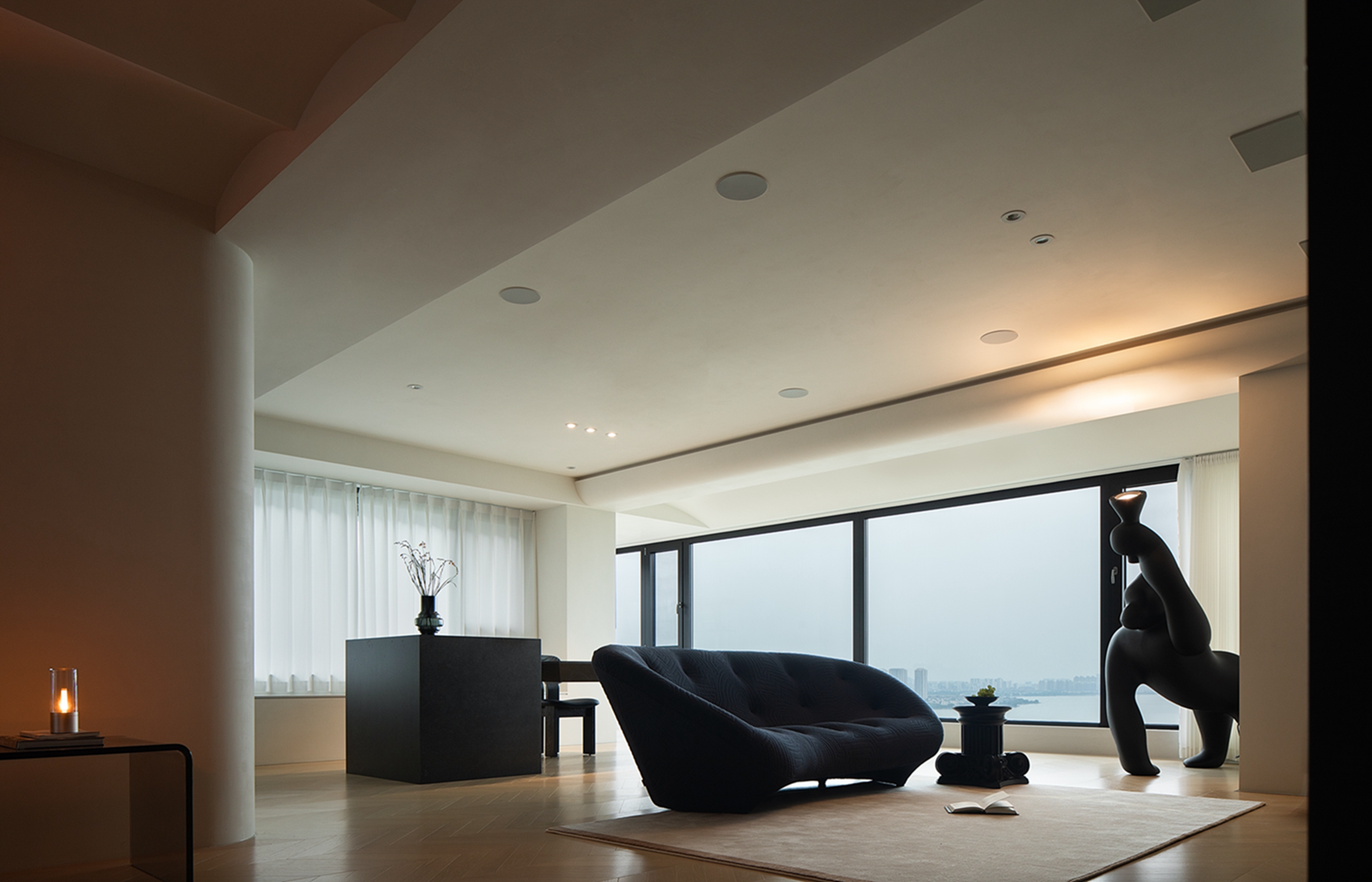 项目定位:本案位于独墅湖畔,自然的意蕴与城市CBD的繁华交织,为居住者创造了独特的现代湖居环境。空间设计回应了地域的底蕴,以纯粹的选材创造舒适的体验,极具设计感的软装提升空间的品味,无自然之形却极具自然之韵,松弛和谐