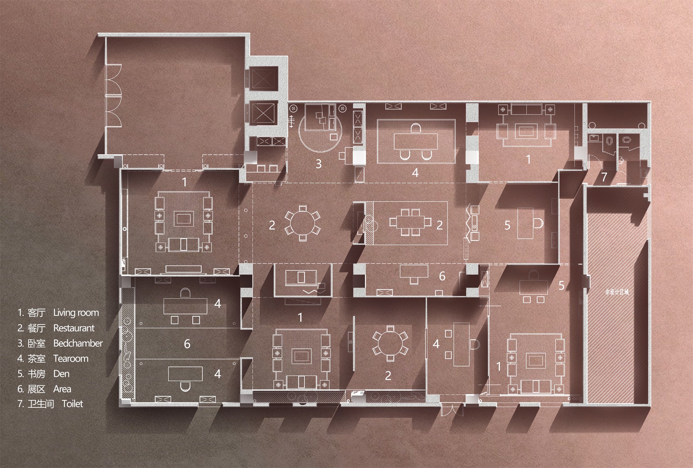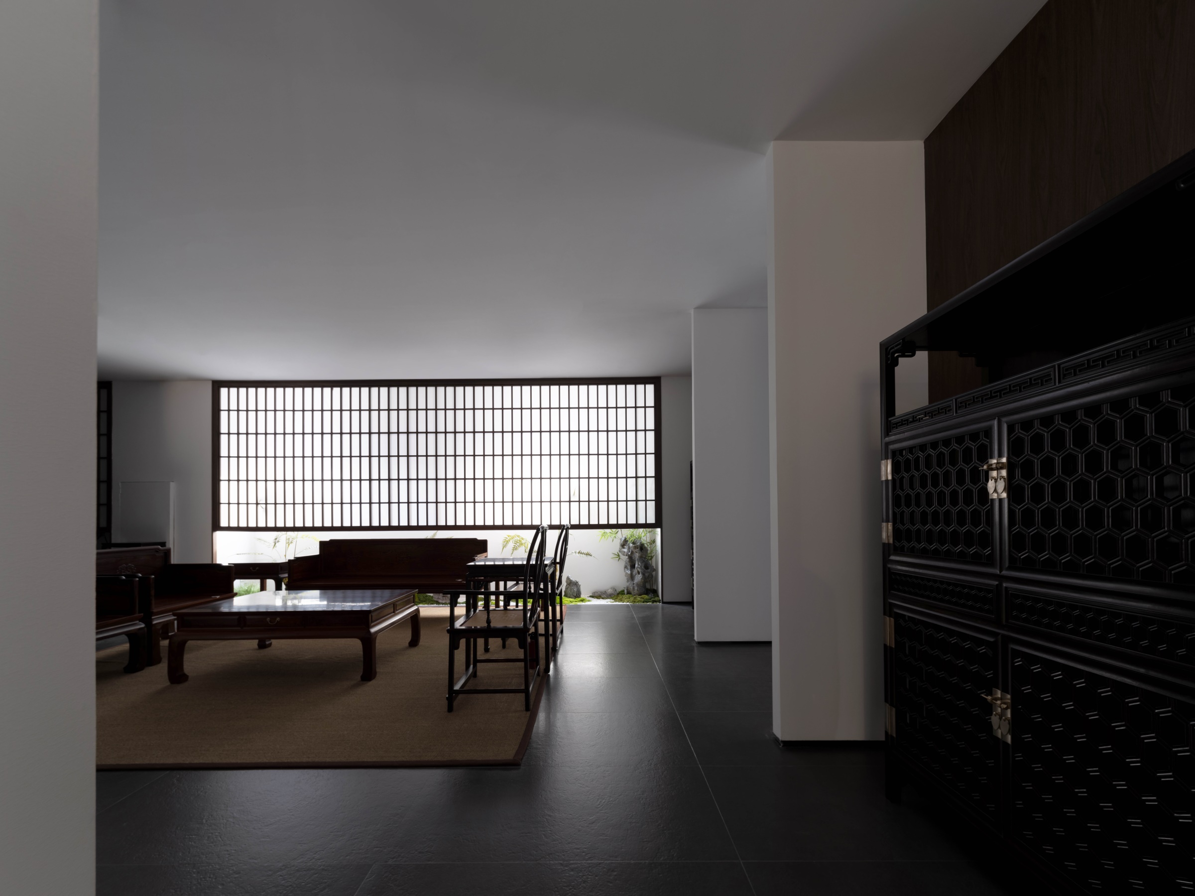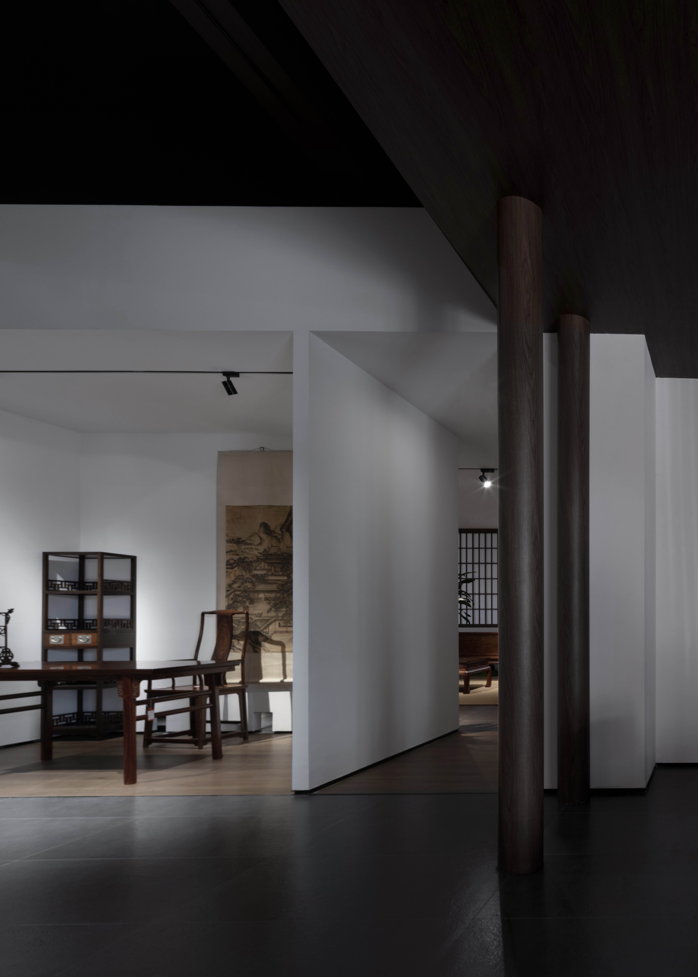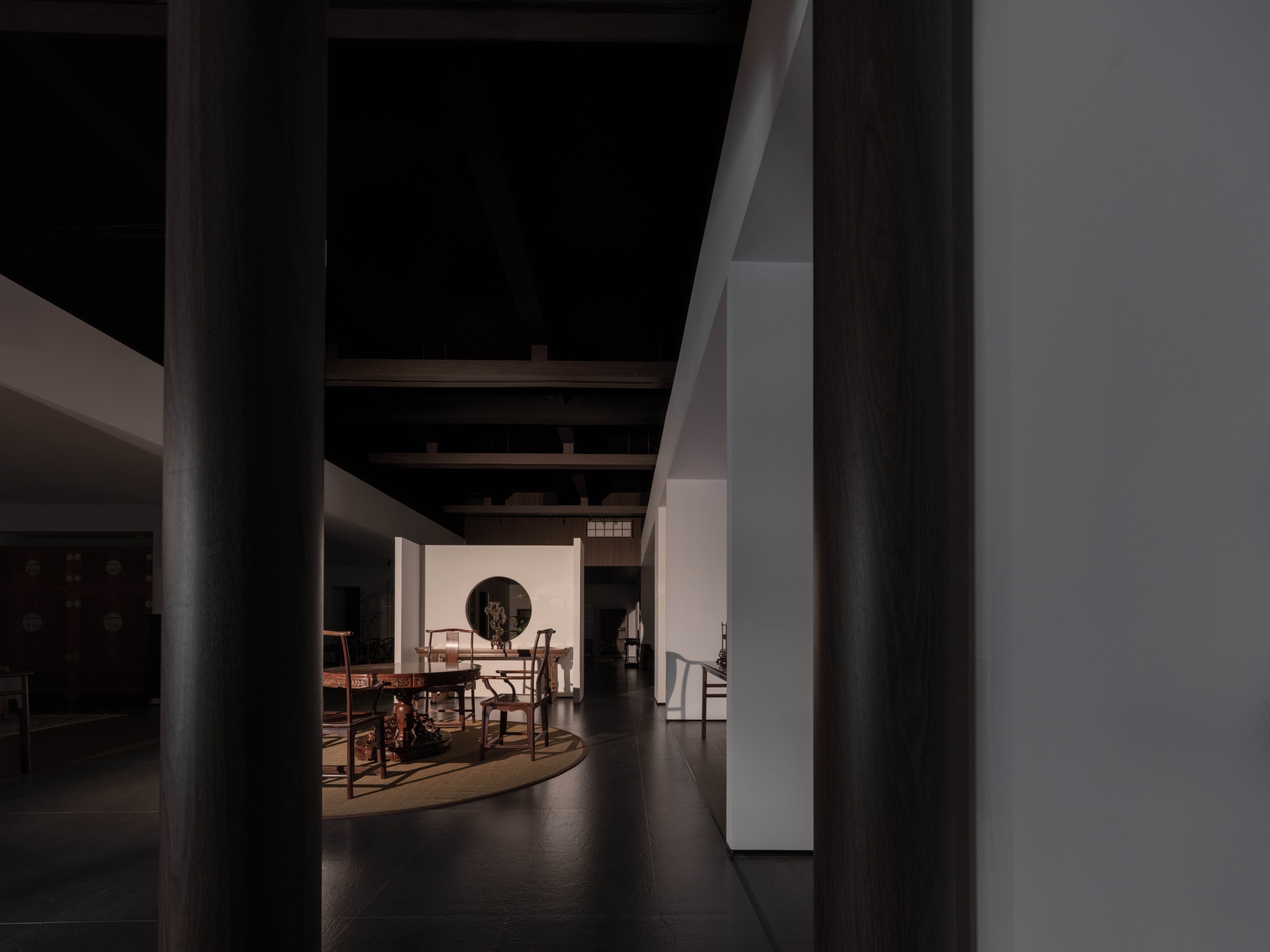我们根据品牌的调性与高端定位,在展厅设计上,以故宫的平面布局为灵感,奠定空间庄严的基调,塑造秩序之美,体现礼序与尊崇感;同时结合江南园林的围合手法,以小见大,在有限的空间里创造无限的自然气韵,呼应苏作家具诞生地的文脉,以产品背后的文化加深来宾对产品和展厅的理解。