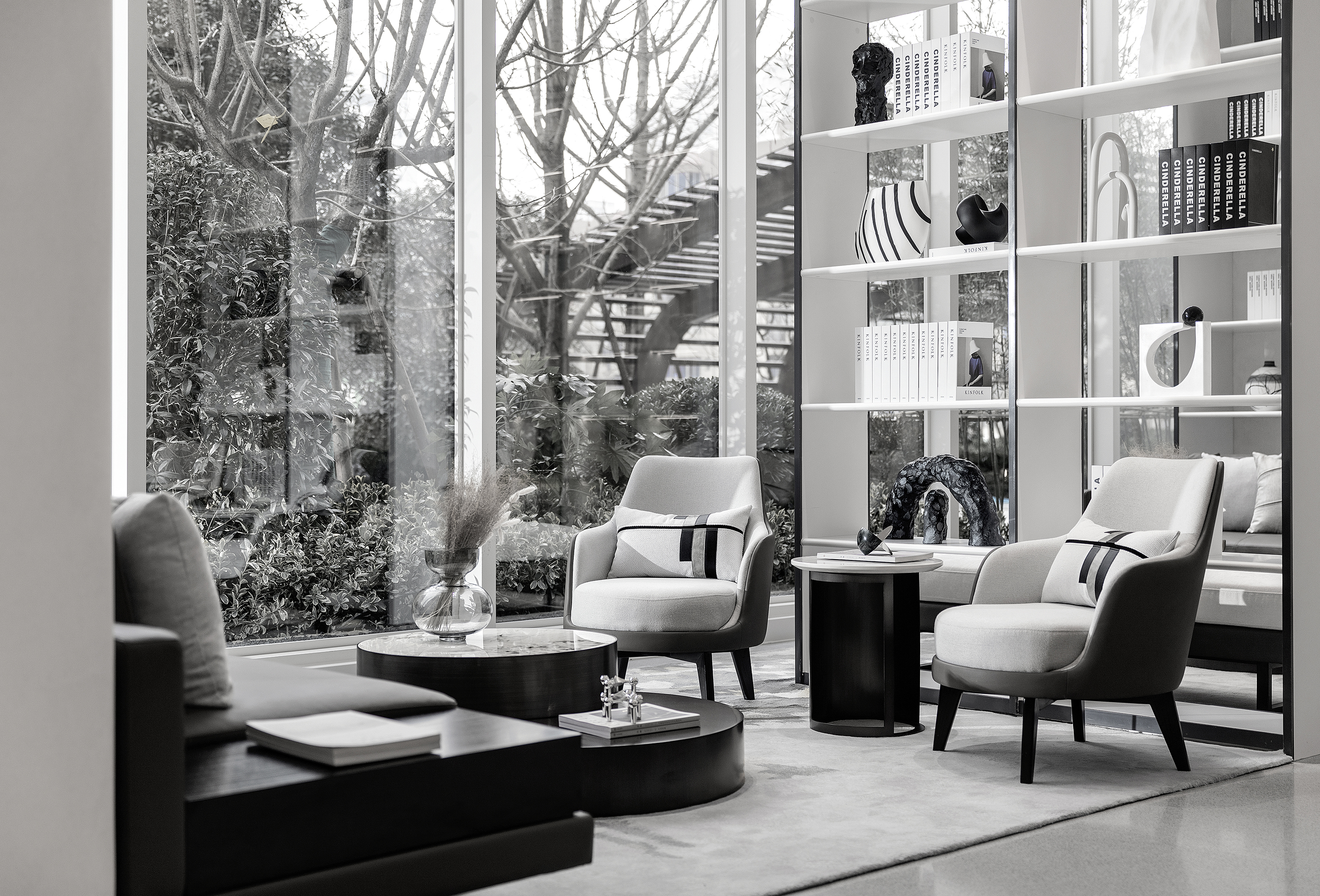 一整面落地窗将户外美景展现得淋漓尽致,不仅提升了室内采光,还让人在愉悦的谈话中感受到自然的魅力。