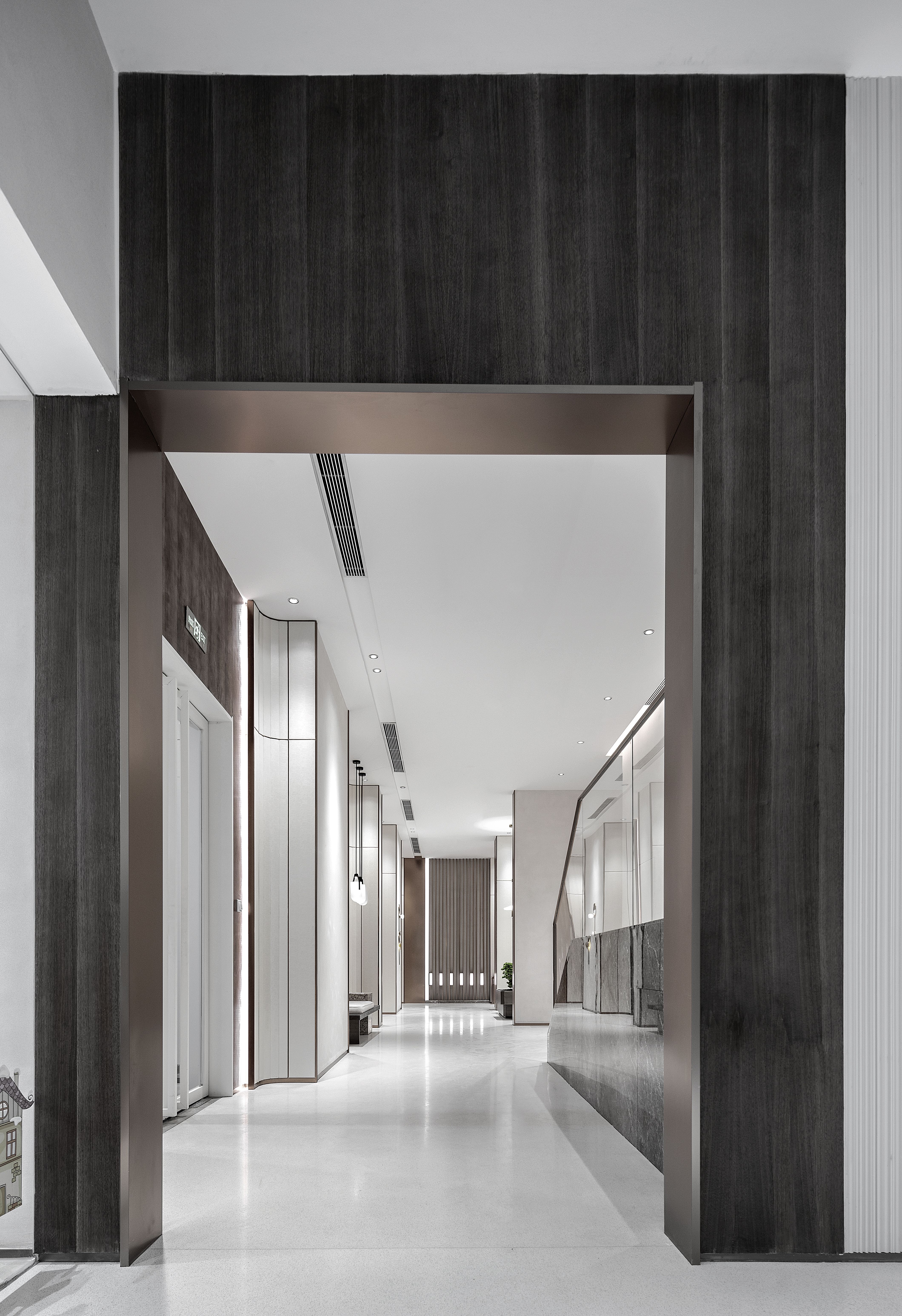 墙面局部采用金属造型板、水波纹不锈钢、生态木,艺术视觉效果强烈,光影交辉与纹理的相互作用晕染室内,呈现出丰富的立面表现。