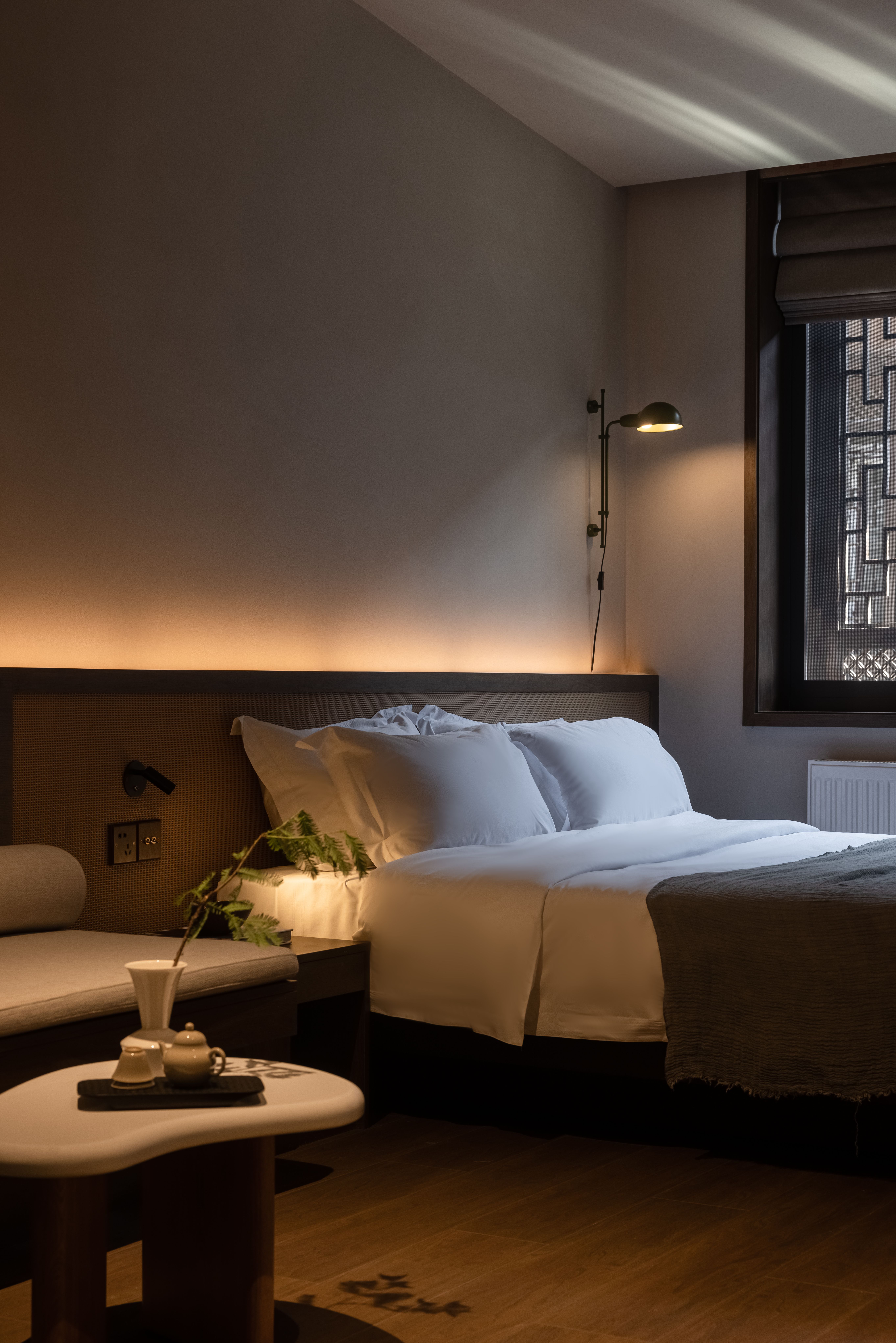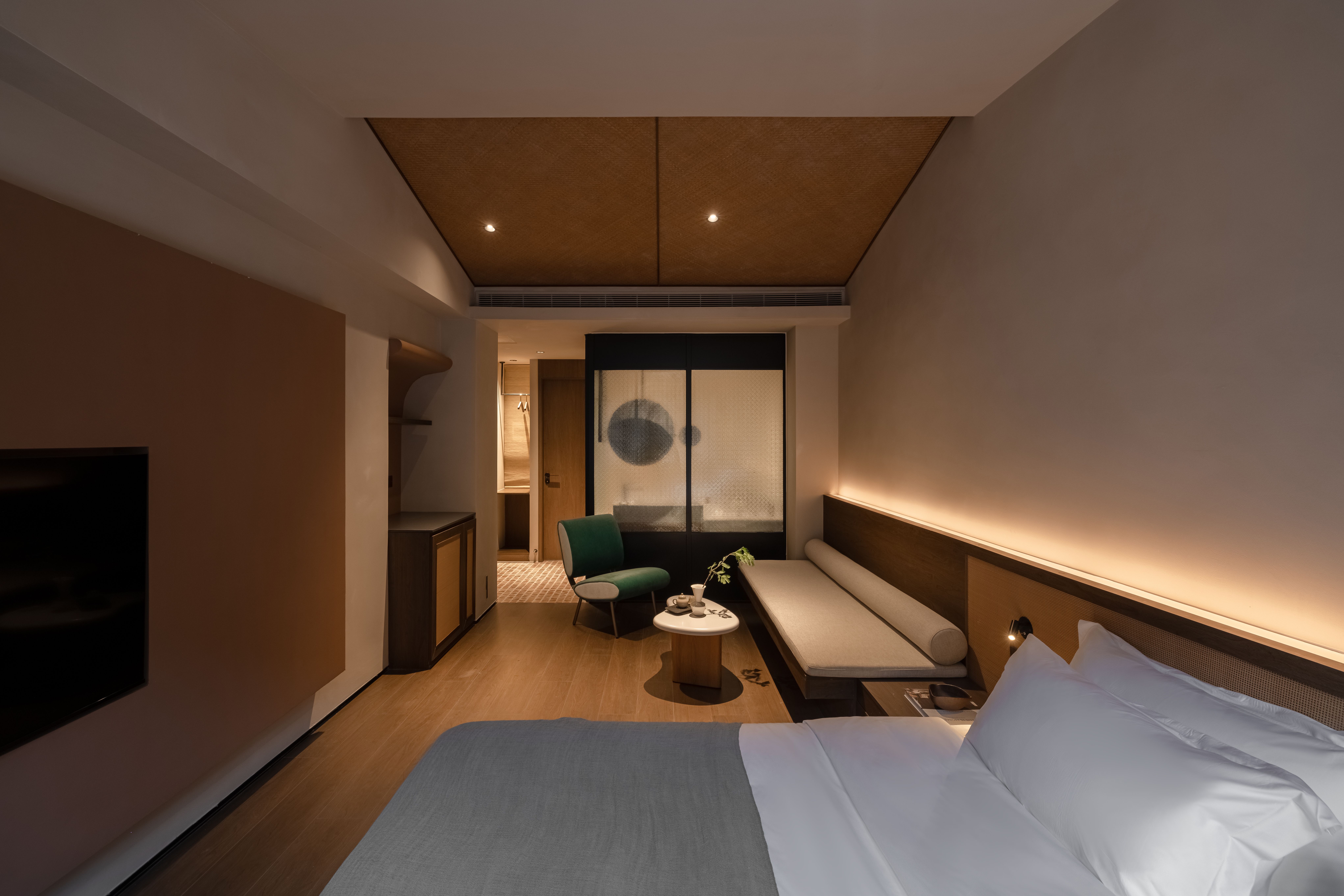 提炼中古元素贯穿室内设计,传承骨子里的东方情结,与古镇风貌“里应外合”。中国的传统深藏在潜意识里,居所是一个让人感动,留下存在的场所,兼顾其中的平衡,设计的哲学,过去为未来合理性建构。点缀青色、朱色的亮色系家具,活泼空间氛围,且青色与朱色为中式代表色彩,多元配色满载温情,享受家族温馨,度过充满乐趣的亲子时光。不同房型匹配不同家庭的入住需求,三代同堂亲子宅。满足民宿市场现状需求。