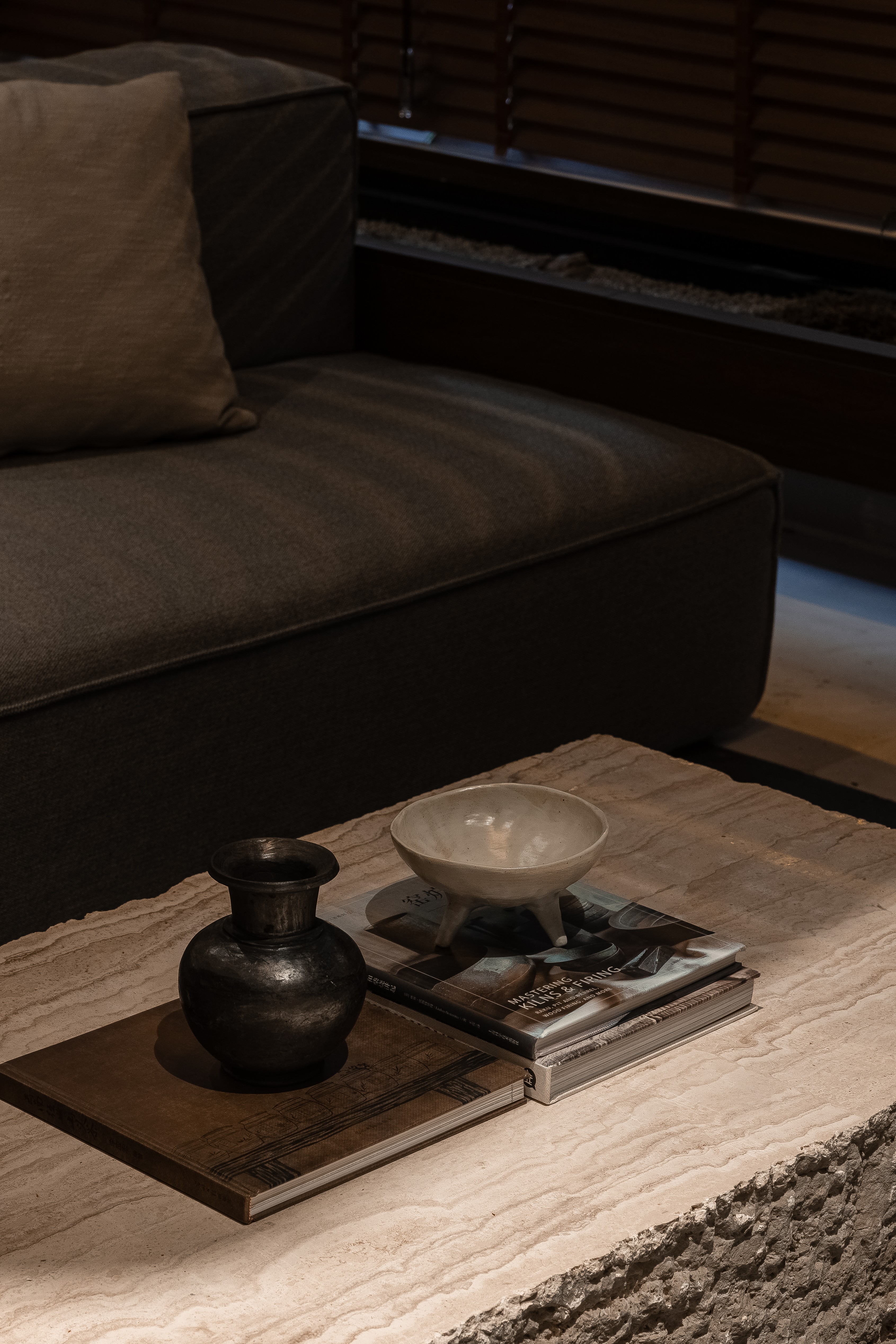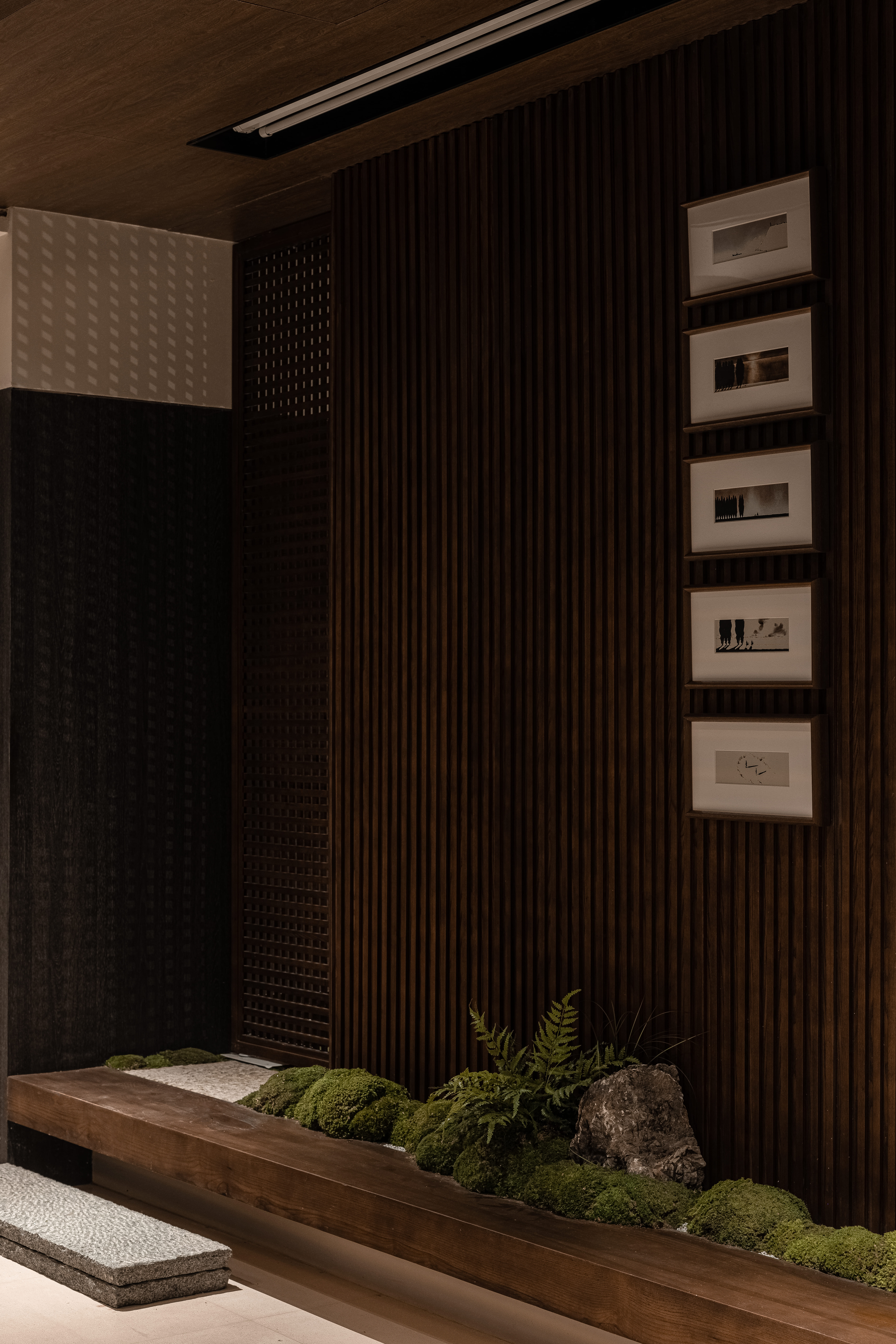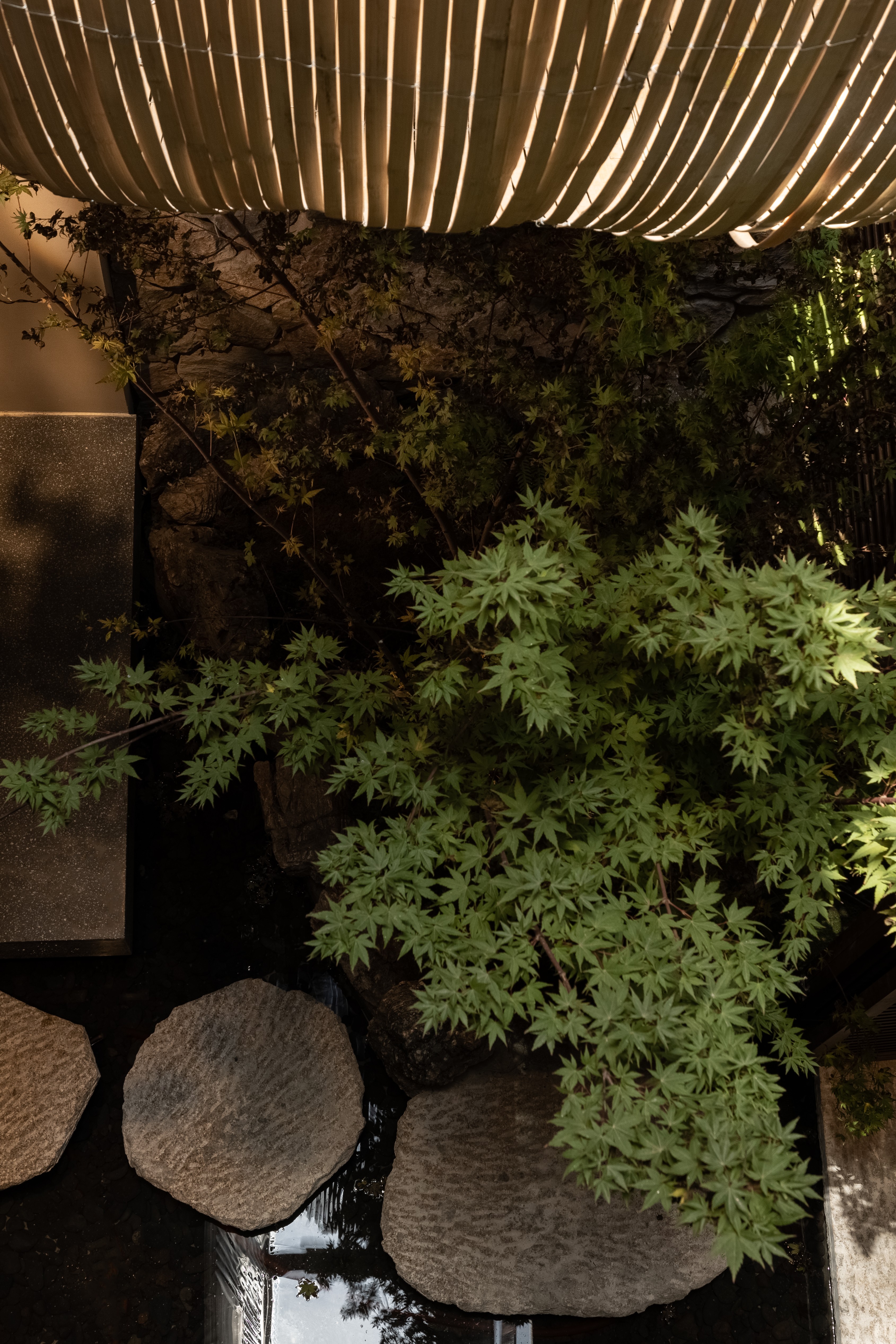 目及长满苔藓的石头,顽强的生命力最是动人。水池与庭院,透露着质朴简约的侘寂之美,散发出由内而外的禅意美学。