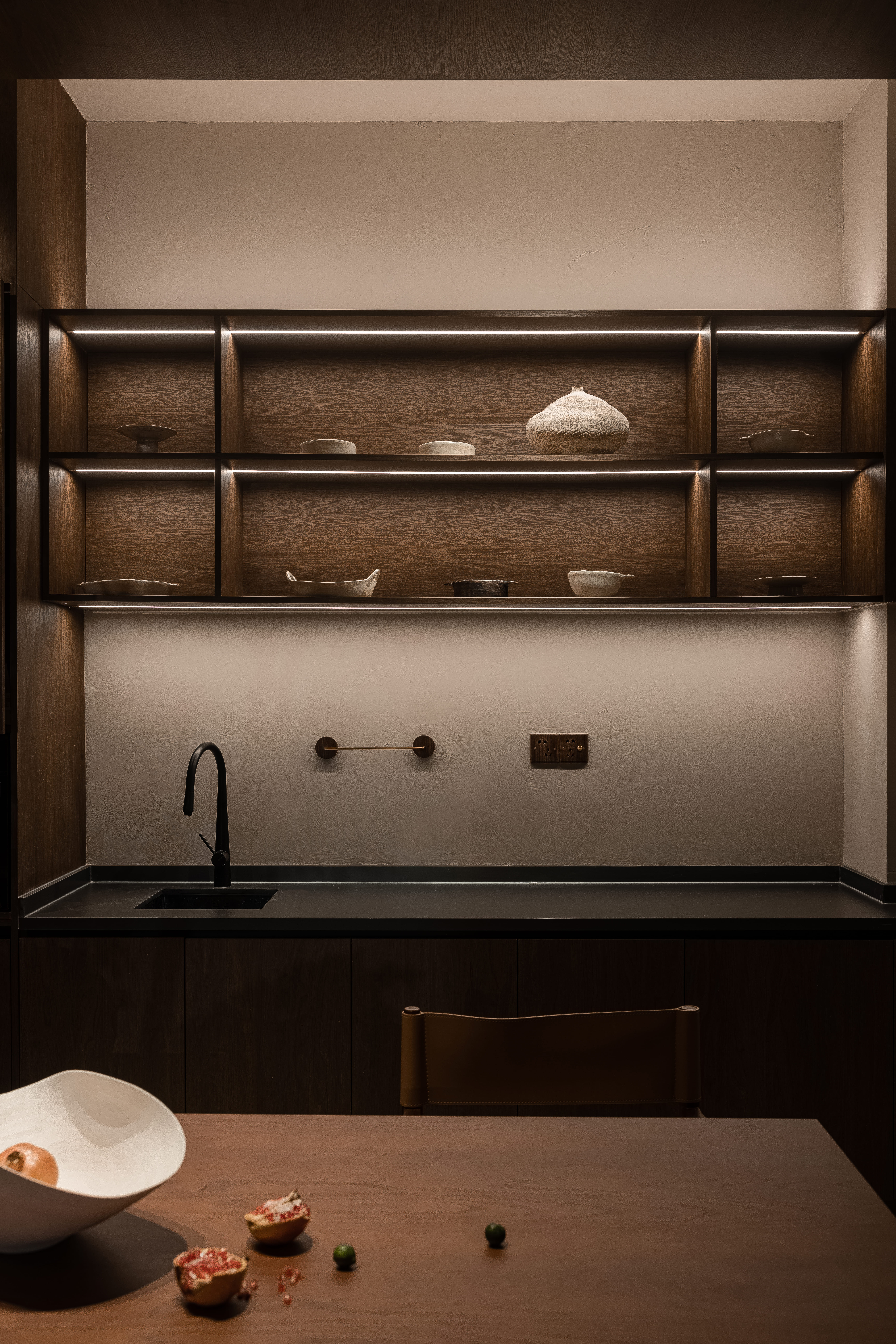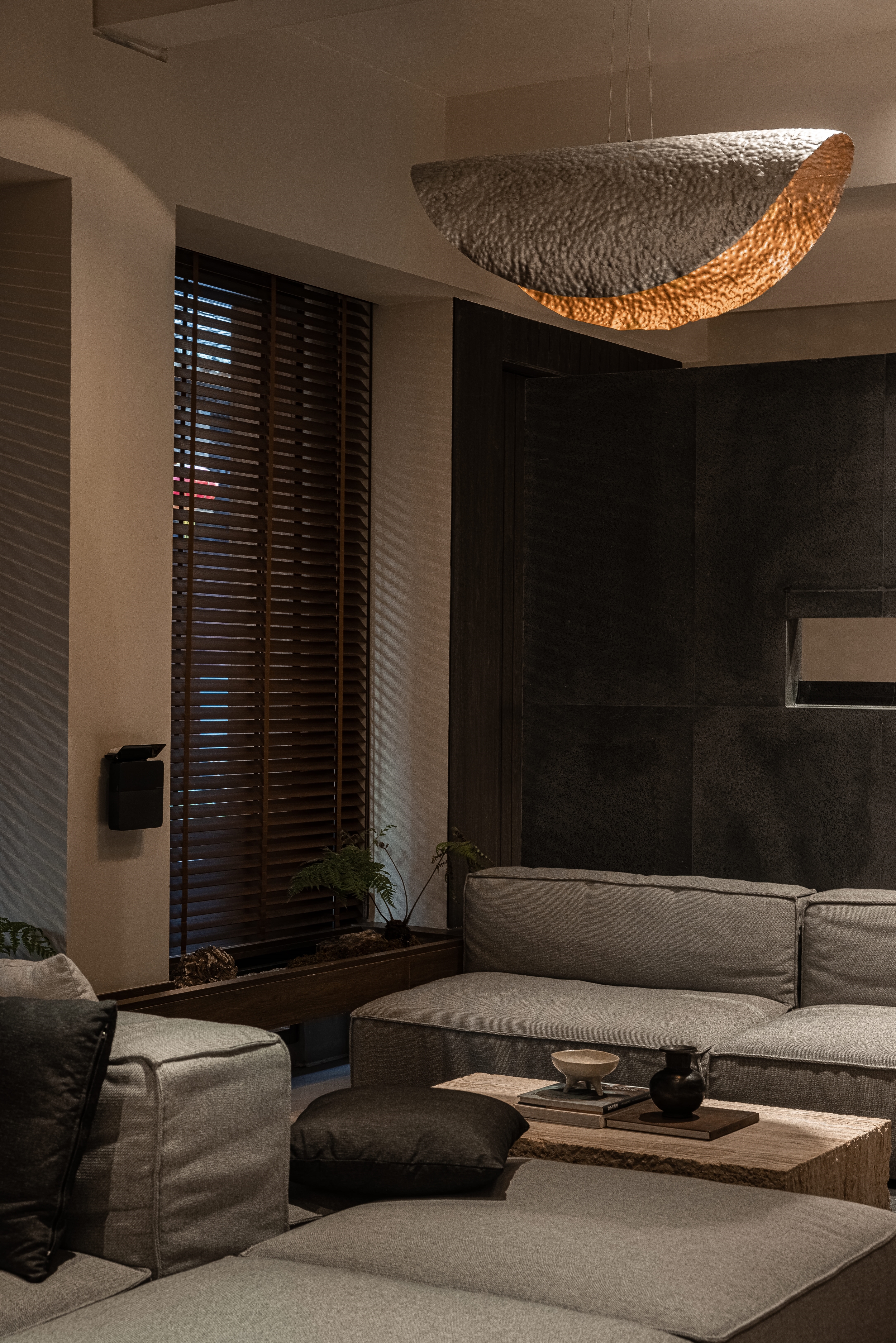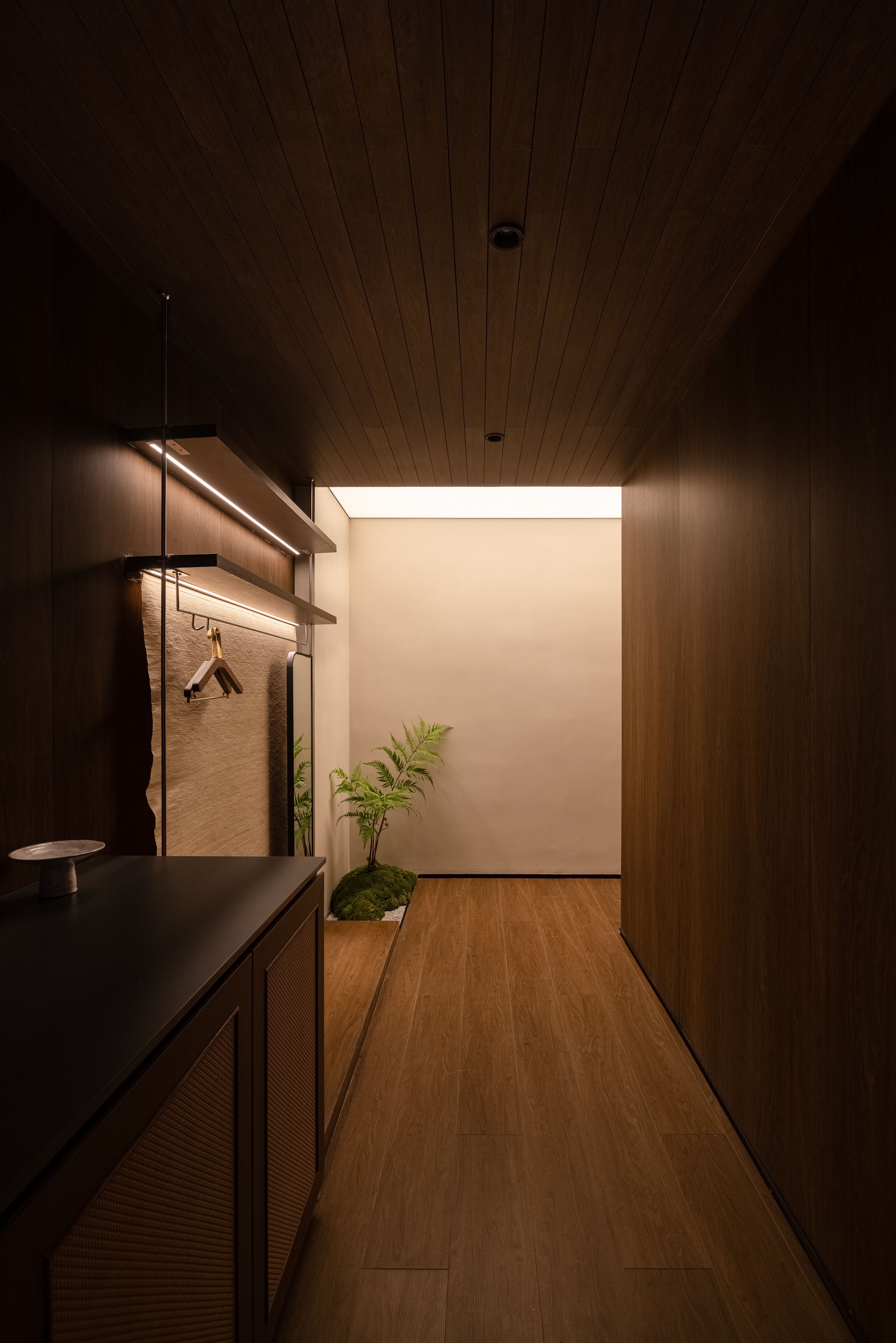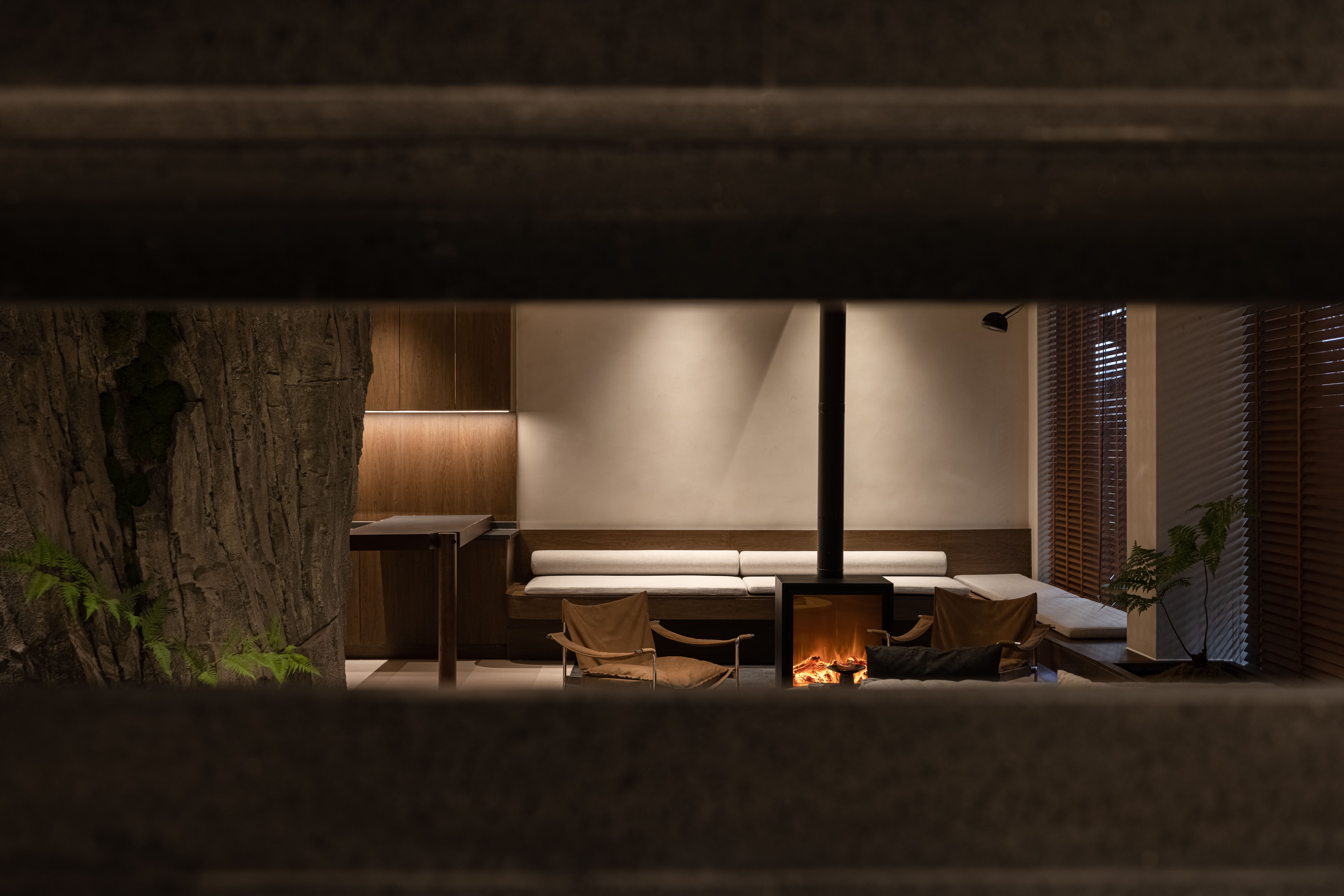 扶梯而下,庭中下布苔石步岩,上有绿枝垂探。感官带来湿润的触觉与知觉,抵达自然绿植的生命场力。