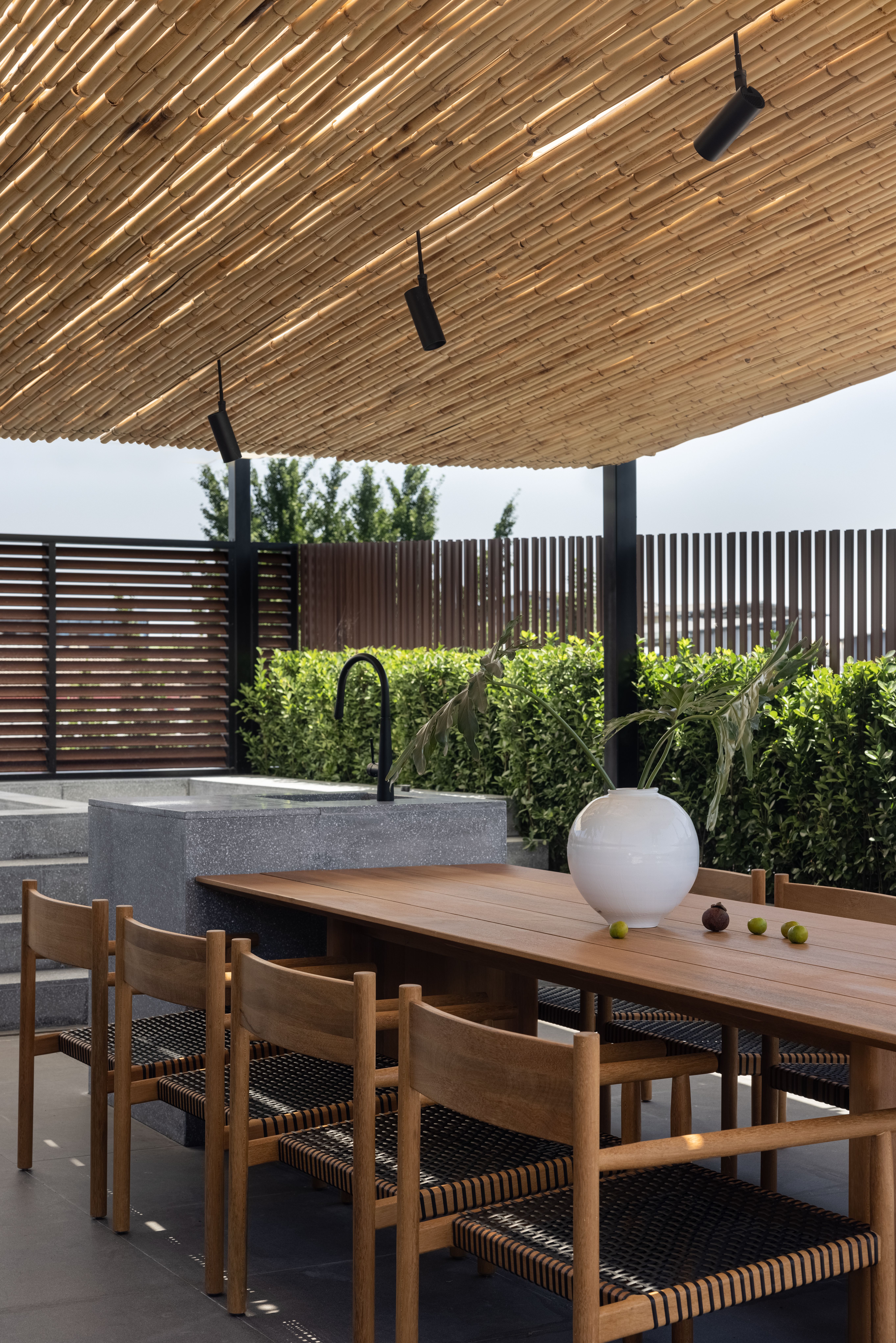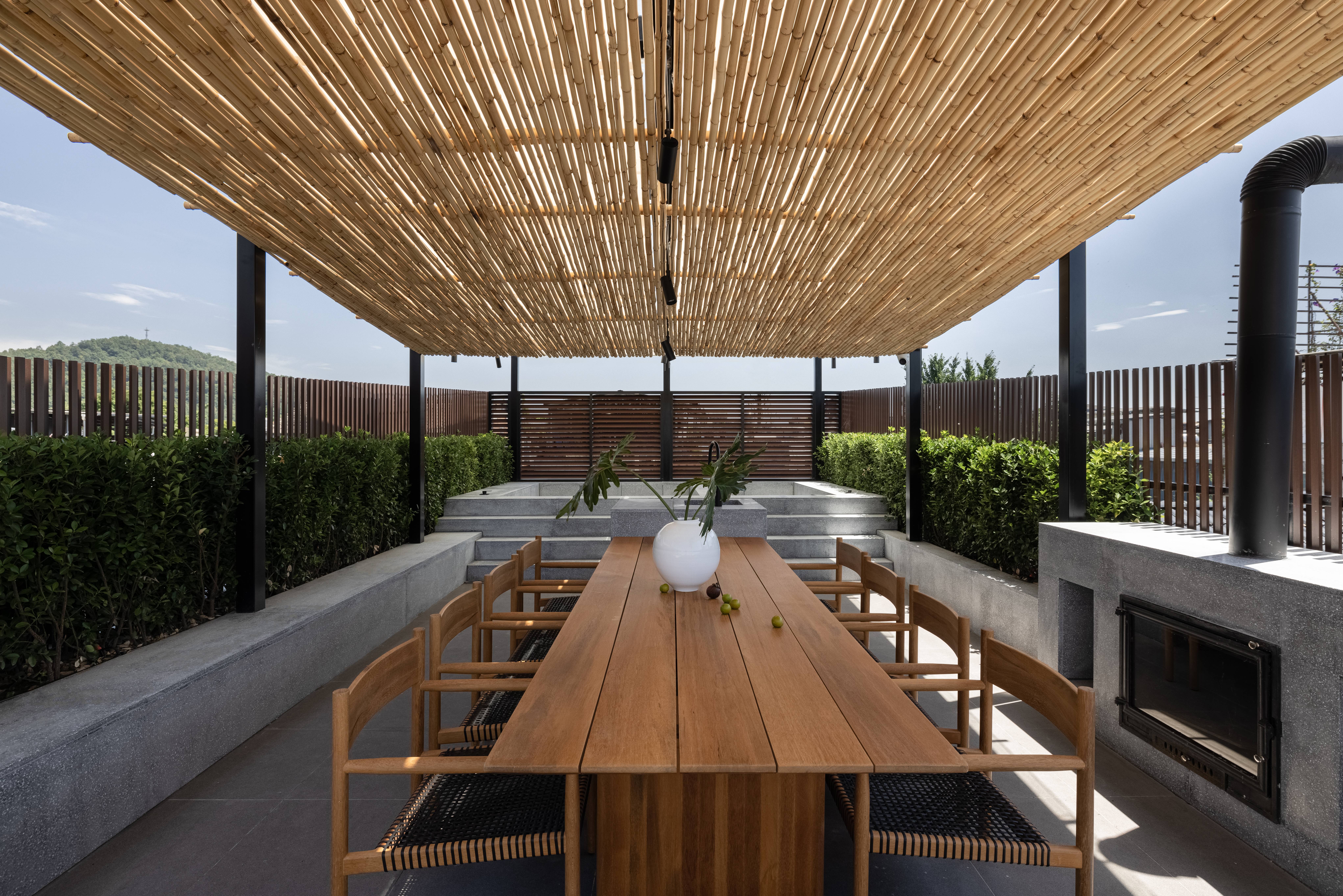 天台屋顶花园设置汤池,体验空中花园式浪漫泡汤,雾气氤氲,眺望缓慢落下的夕阳。