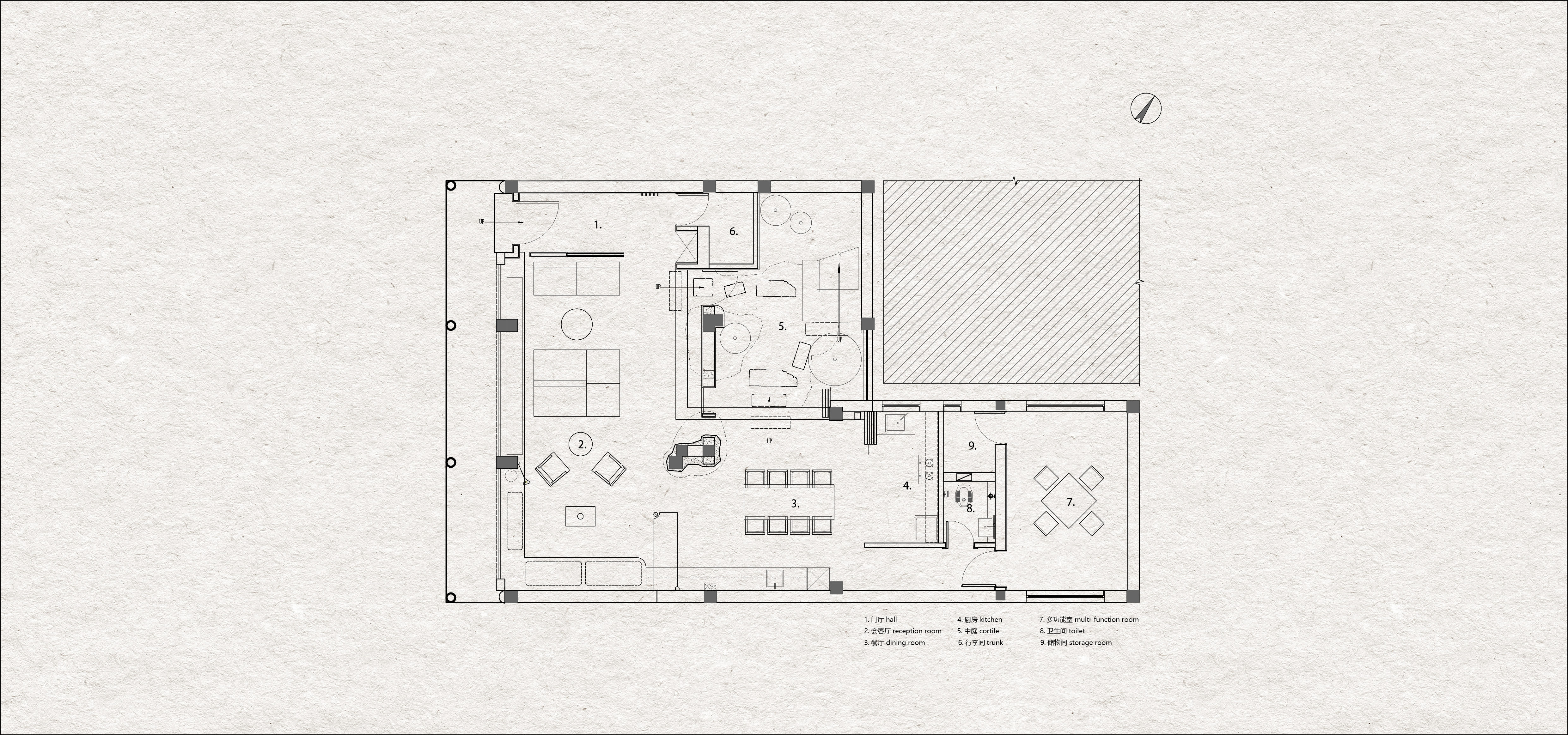 不希望它成为一个“外来物”,融入古镇的土地,唤起人们对川西古镇民居的记忆。基于原始建筑是满足基本功能的砖混结合木构的自建房,本身存在着不同年代的交融,决定在满足功能及结构安全的基础上,植入川西韵味;同步加入对当下符合当代结构规范安全强度的思考,这样的处理也许可以为后来者提供一个历史渐进的思路。