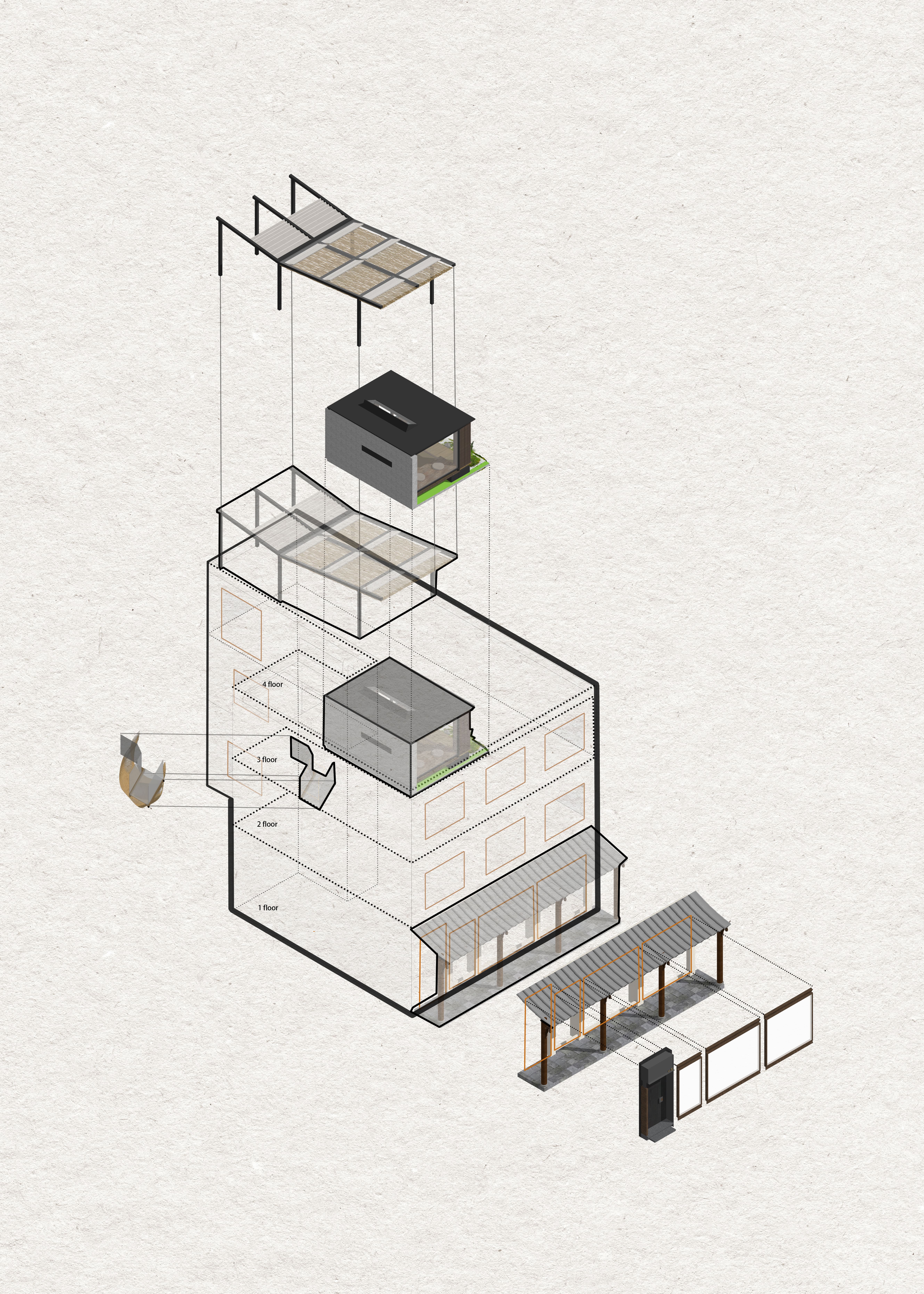 这是建筑对在地环境的一种回应,值得注意的是,建筑的结构改造是可逆的,过程中仍然可以清晰看到使用者们对古镇旧楼的改造理念与功能需求,这也是真实历史展现给世人的画卷。
