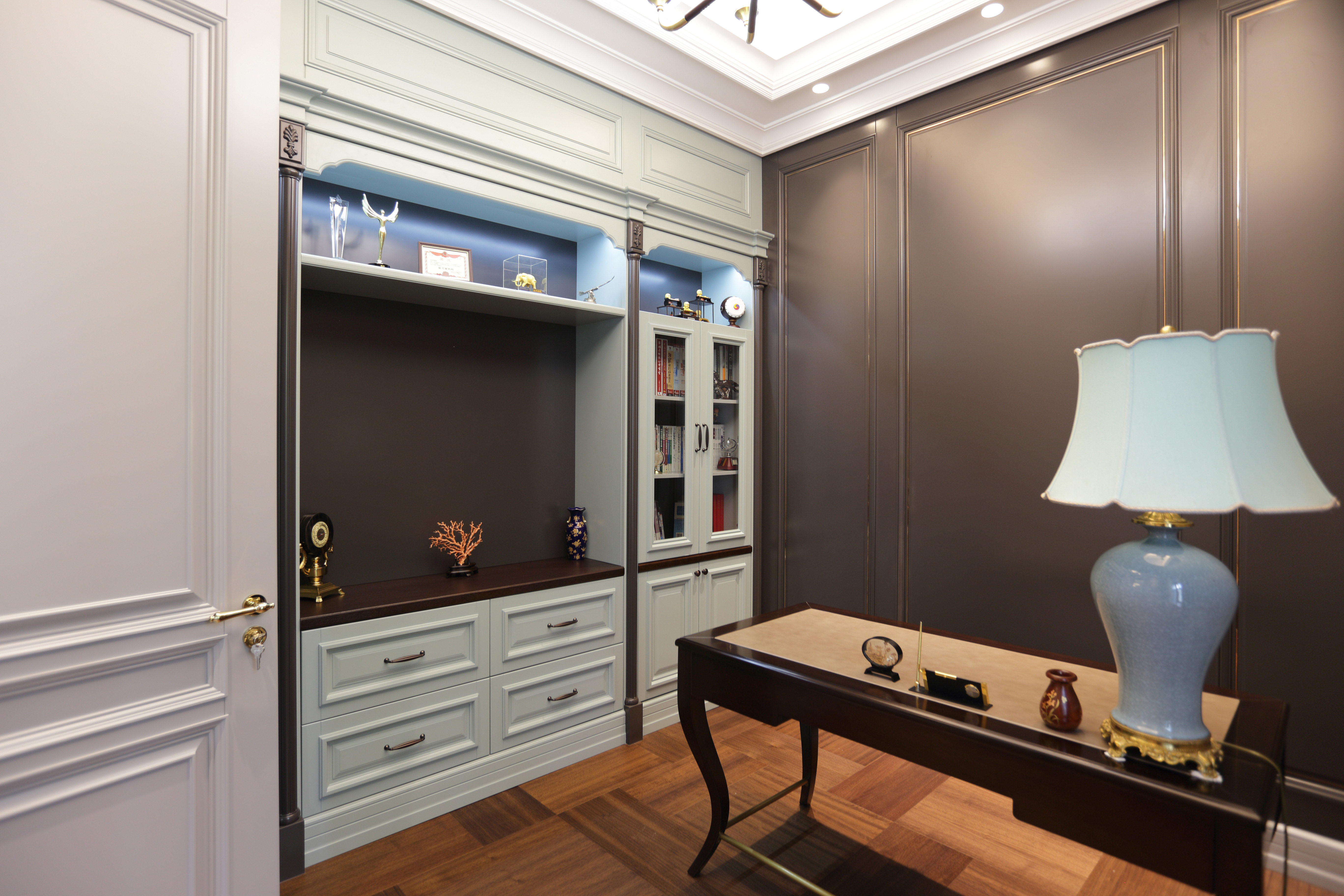 涂料,软包,PU线条,烤漆墙板,金属线条等材料来进行美式风格的搭配与应用。
