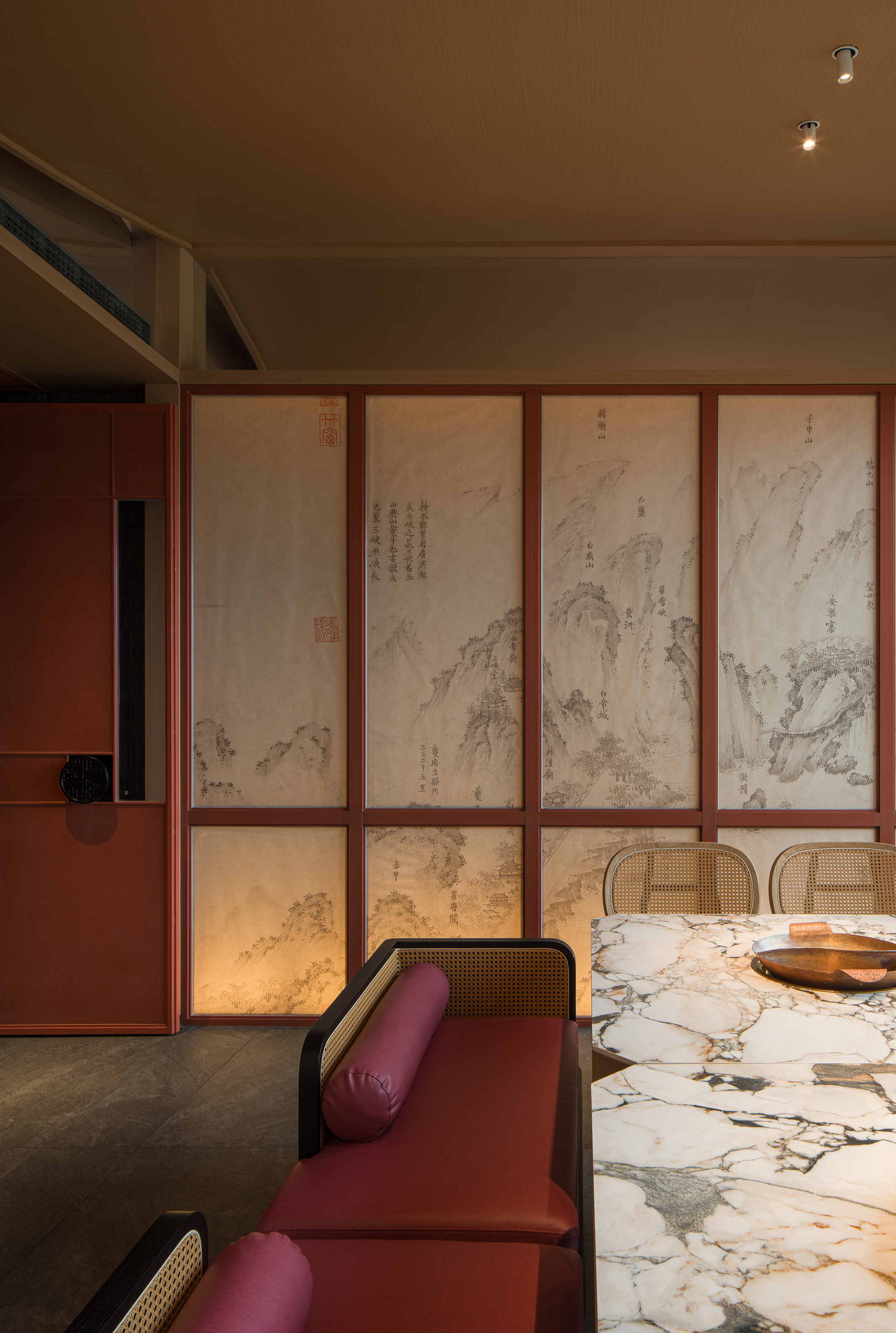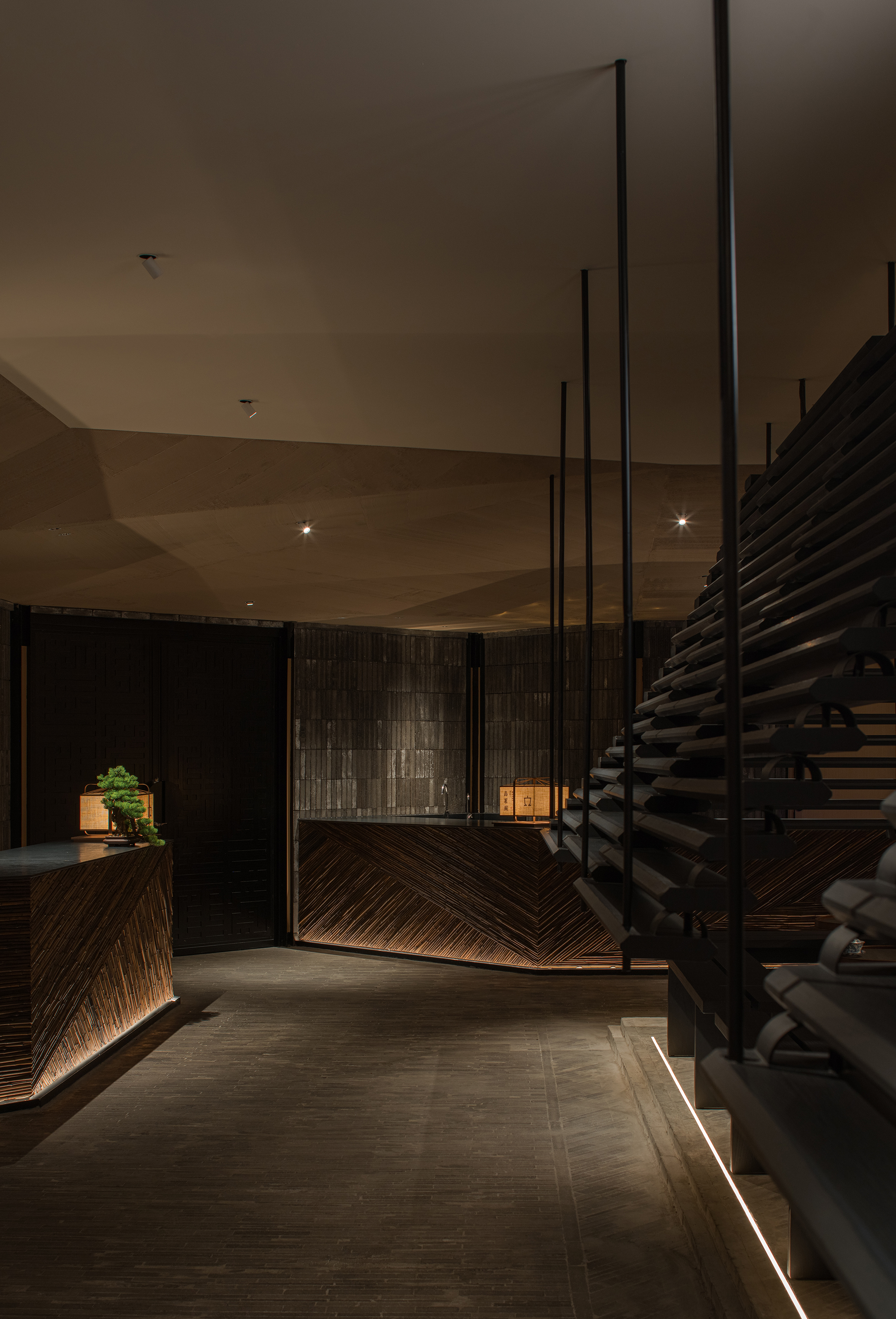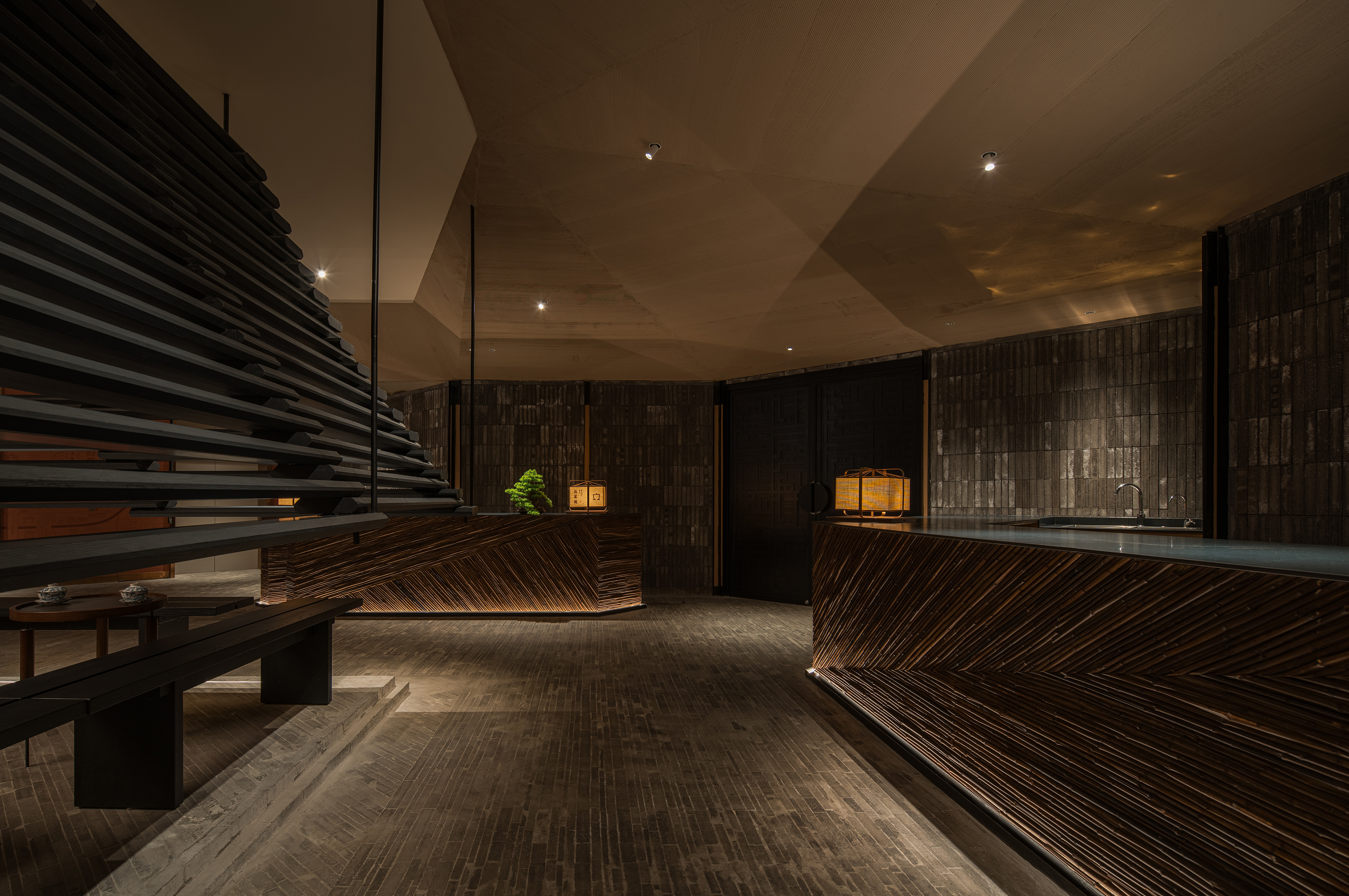 设计选材:切片青砖、美岩板、碳化竹子、木饰面、金属漆、软膜、银镜、夹丝玻璃