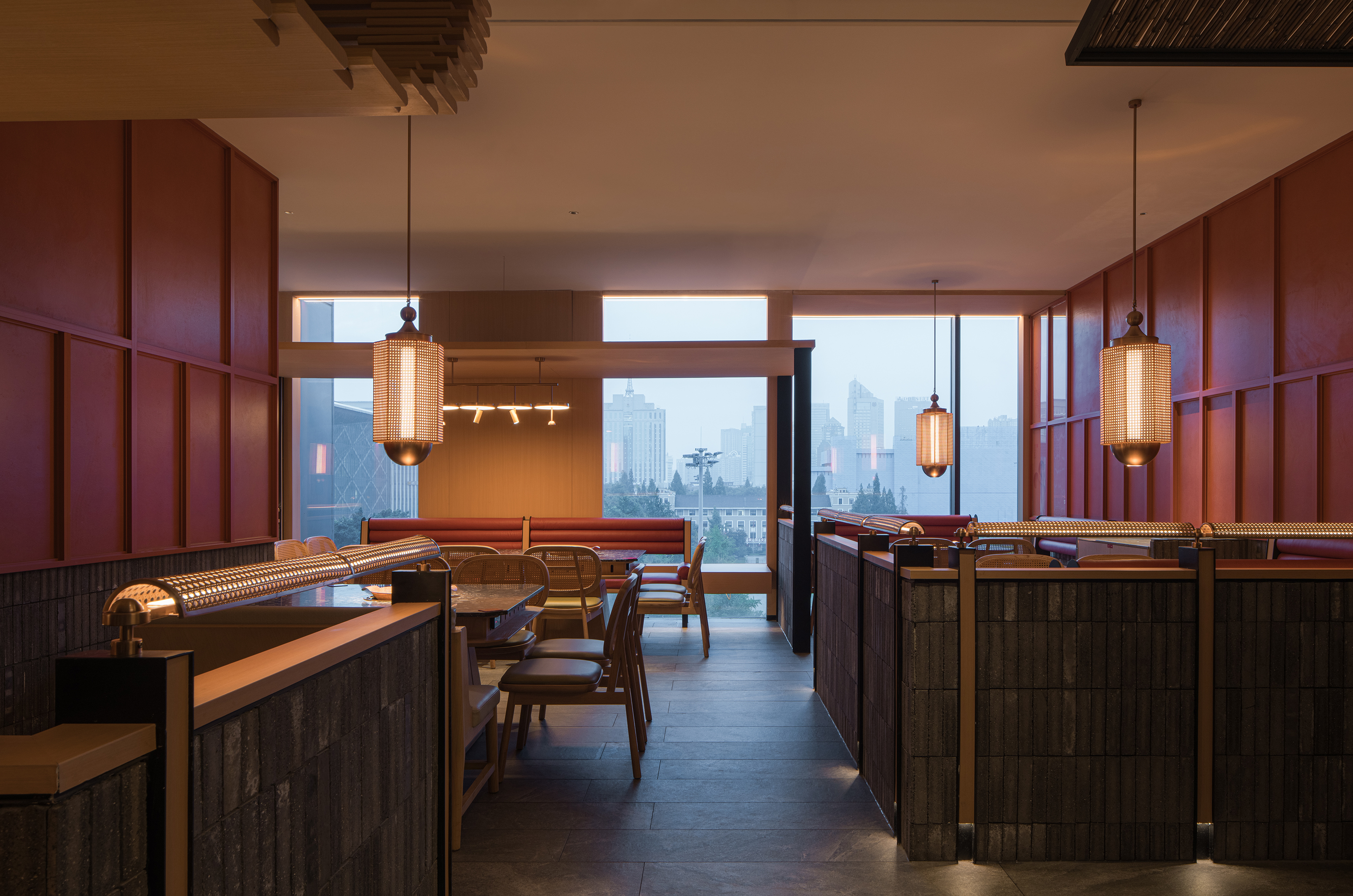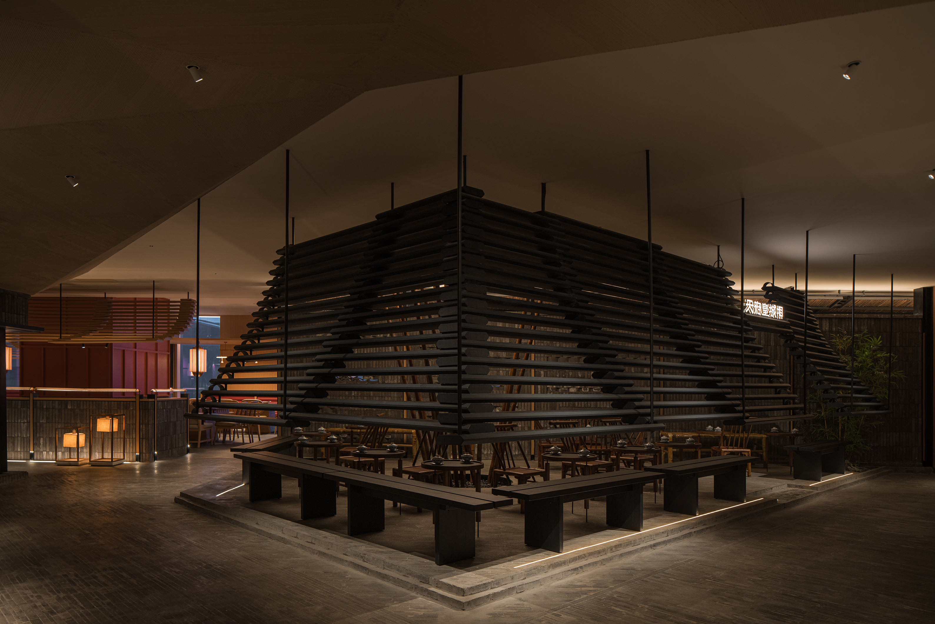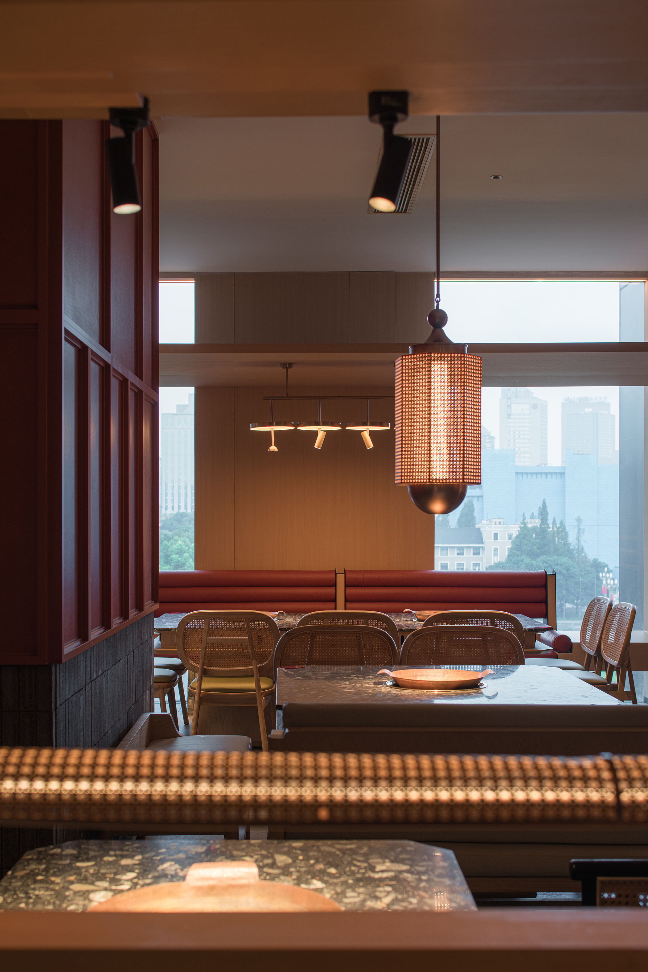 空间布局:1.以视野规划空间:如何更好的帮客户解决盈利问题,是这次设计思考切入点。所以我们将视野最好的区域留给包间。视野次好的留给了散座区的大桌,如不赘述。