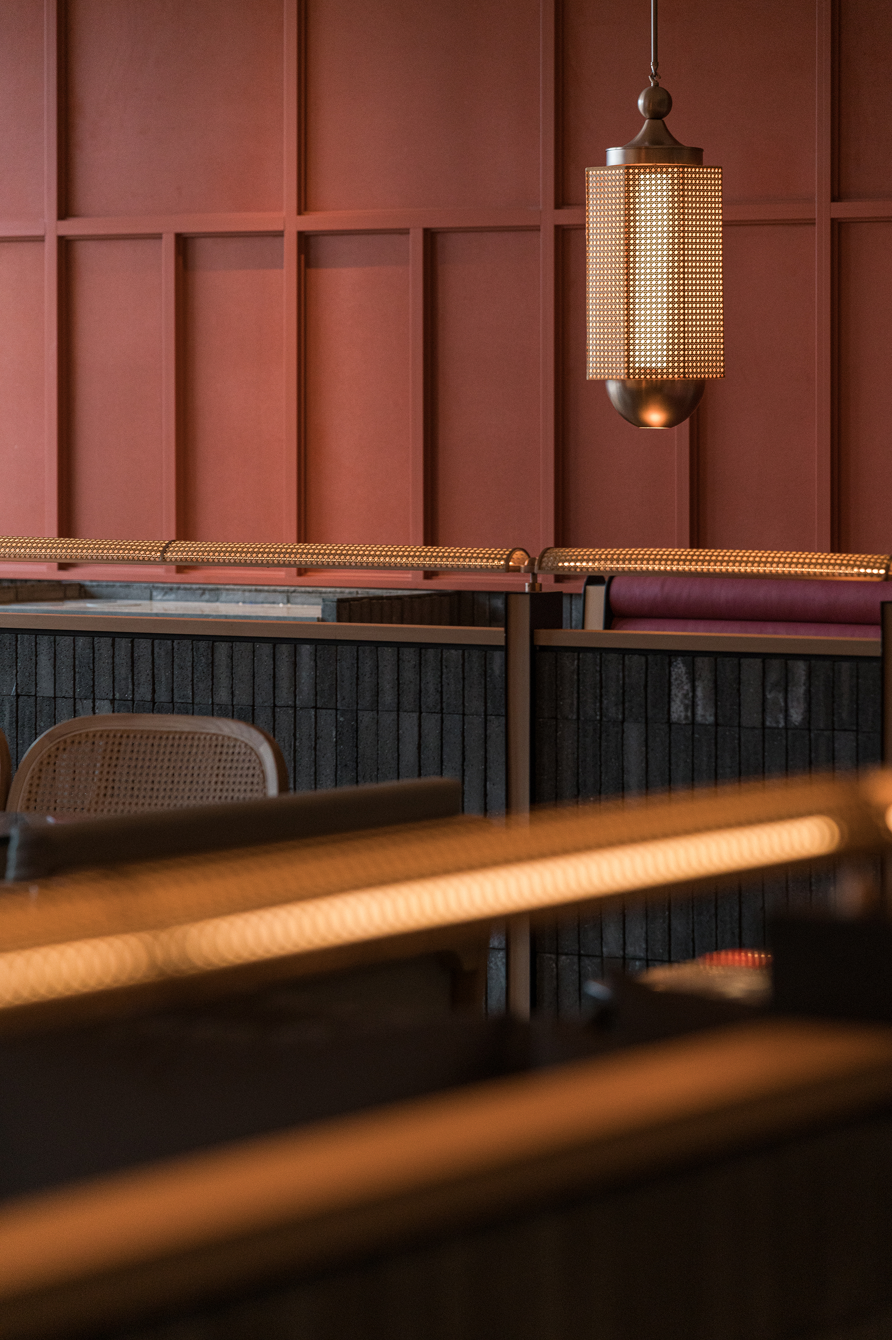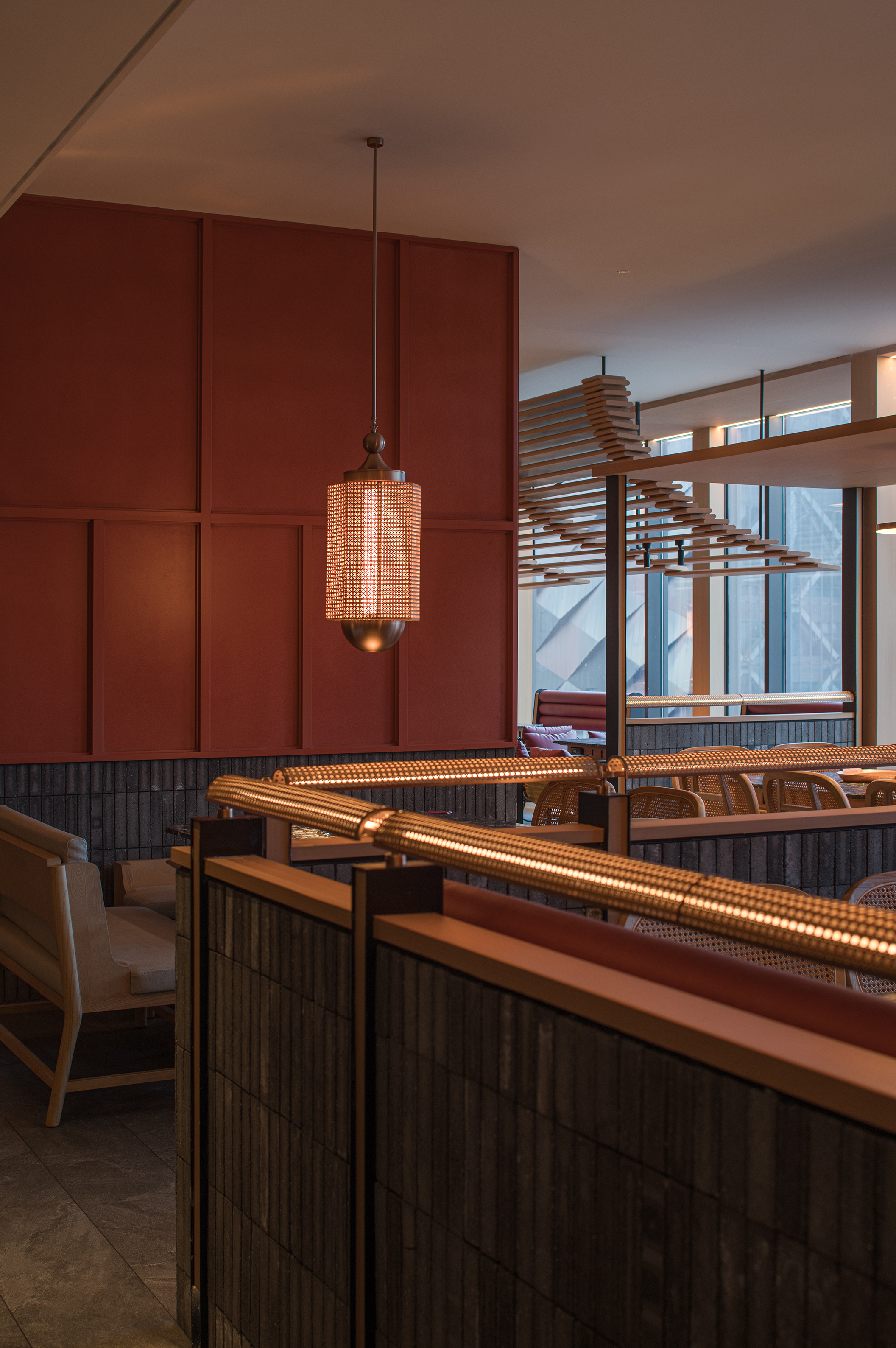 2.入口是餐厅的门面,门面是礼。通过穆斯林新月图形的一角来塑造门面,并赋予其休闲等候的功能。重新设置的场景会更加突显品牌的独特调性。