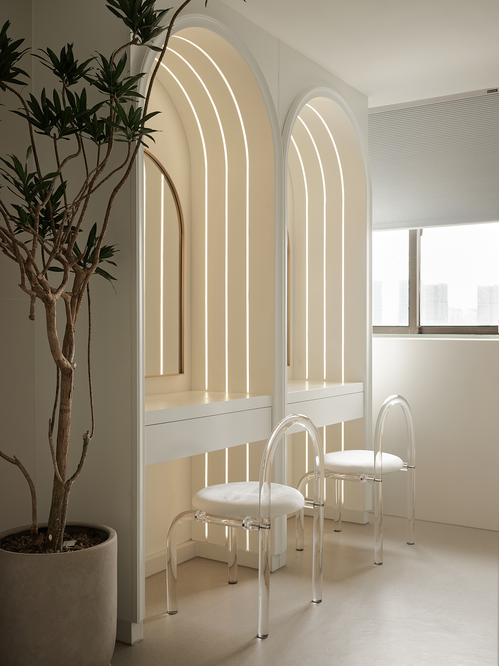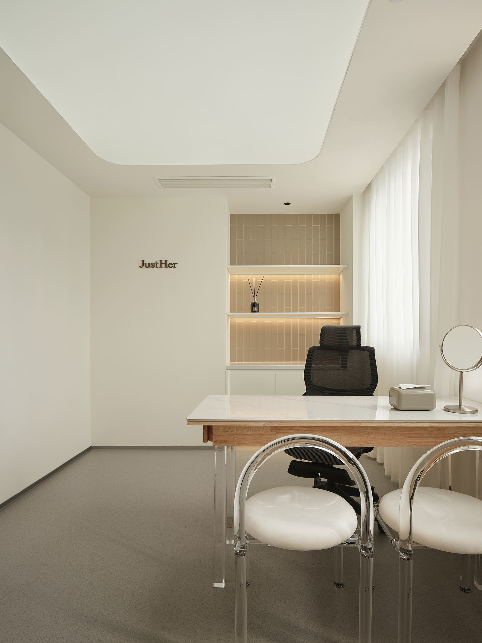 用户体验:多年来,我们医院已经换了好几任设计师了,直到遇见本案设计师后,才发现原来每个空间都可以有造型,并且看上去不罗嗦。本次的风格最初设计师定位为侘寂风,我们想要的是细腻的能给我们的顾客带去高级感的氛围,设计师在改稿几次后,确定风格为奶油风与侘寂风的结合,并融合了我们想要移步有惊喜的设想。这次的设计在我们医院里达到了耳目一新的不同体验感。同时设计师希望为美容院带来一种积极向上的氛围,让每一位顾客都能在这里找到自己的美丽,并与我们的客户一同分享快乐与自信。