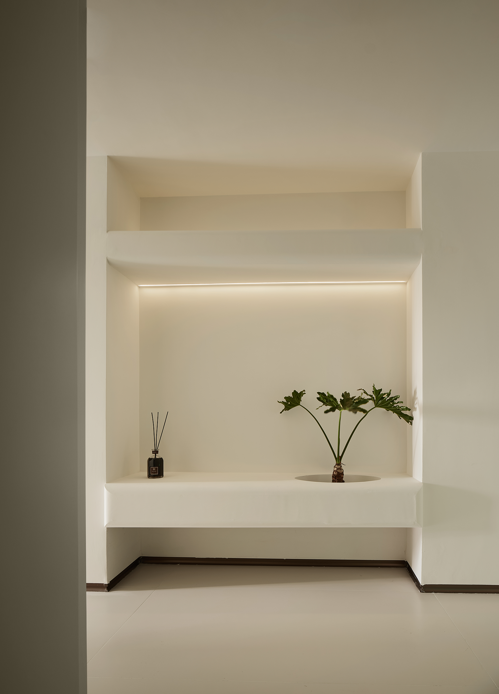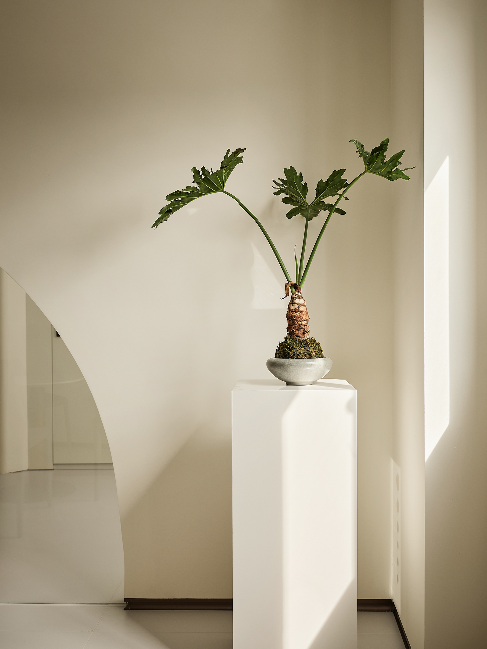 空间整体色调采用了奶油色 自然白的“细腻”与东方的“留白” 不仅是一种令人放松的符号 更容易在它安静时候去触摸
