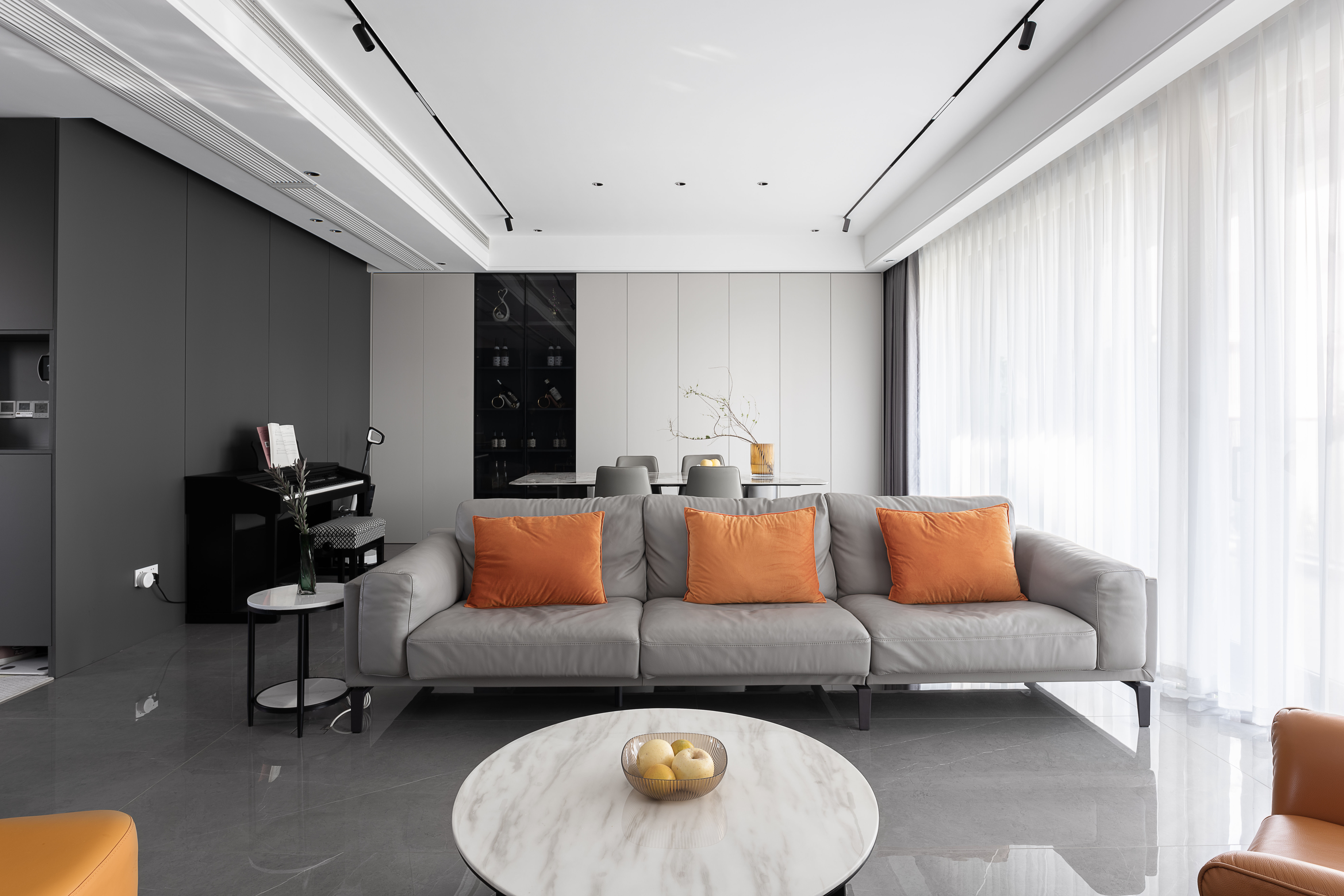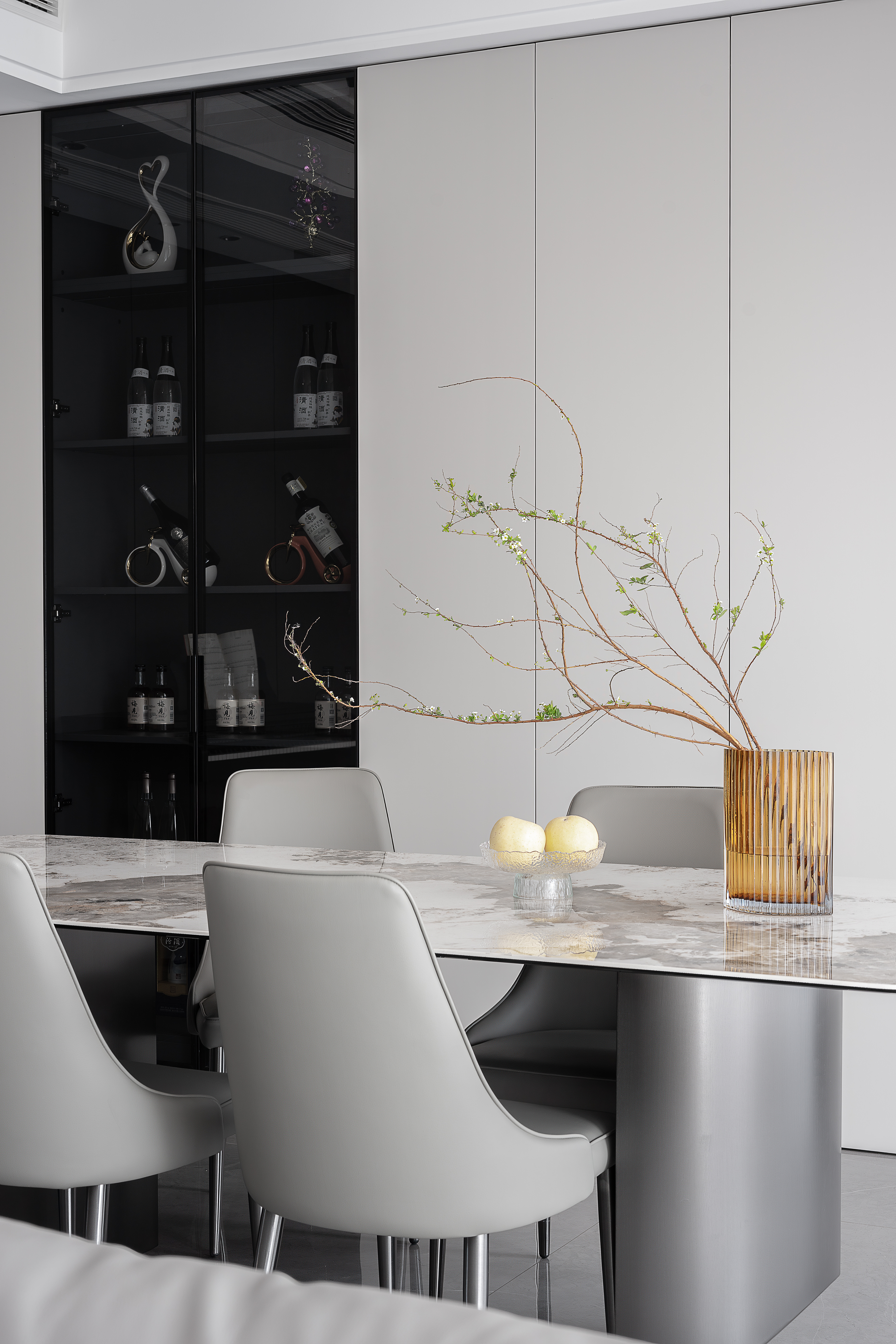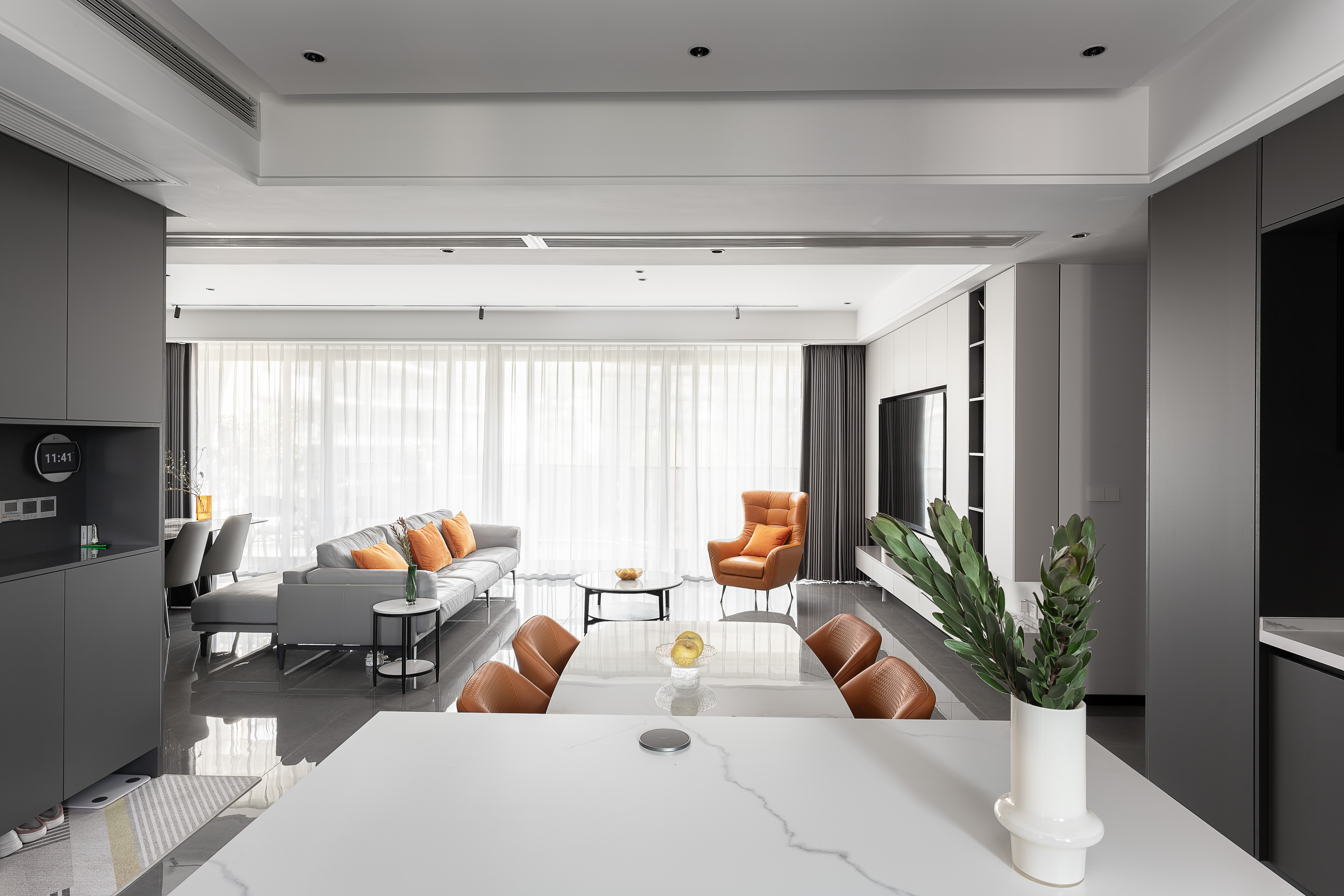空间布局:原始户型本身已经足够优秀,再跟业主的沟通决定整个风格的走向,最终决定极简,极简就注定空间上做减法,空间做大,施工工艺以及收纳上做加法,最后完美体现出现代极简这一主题。