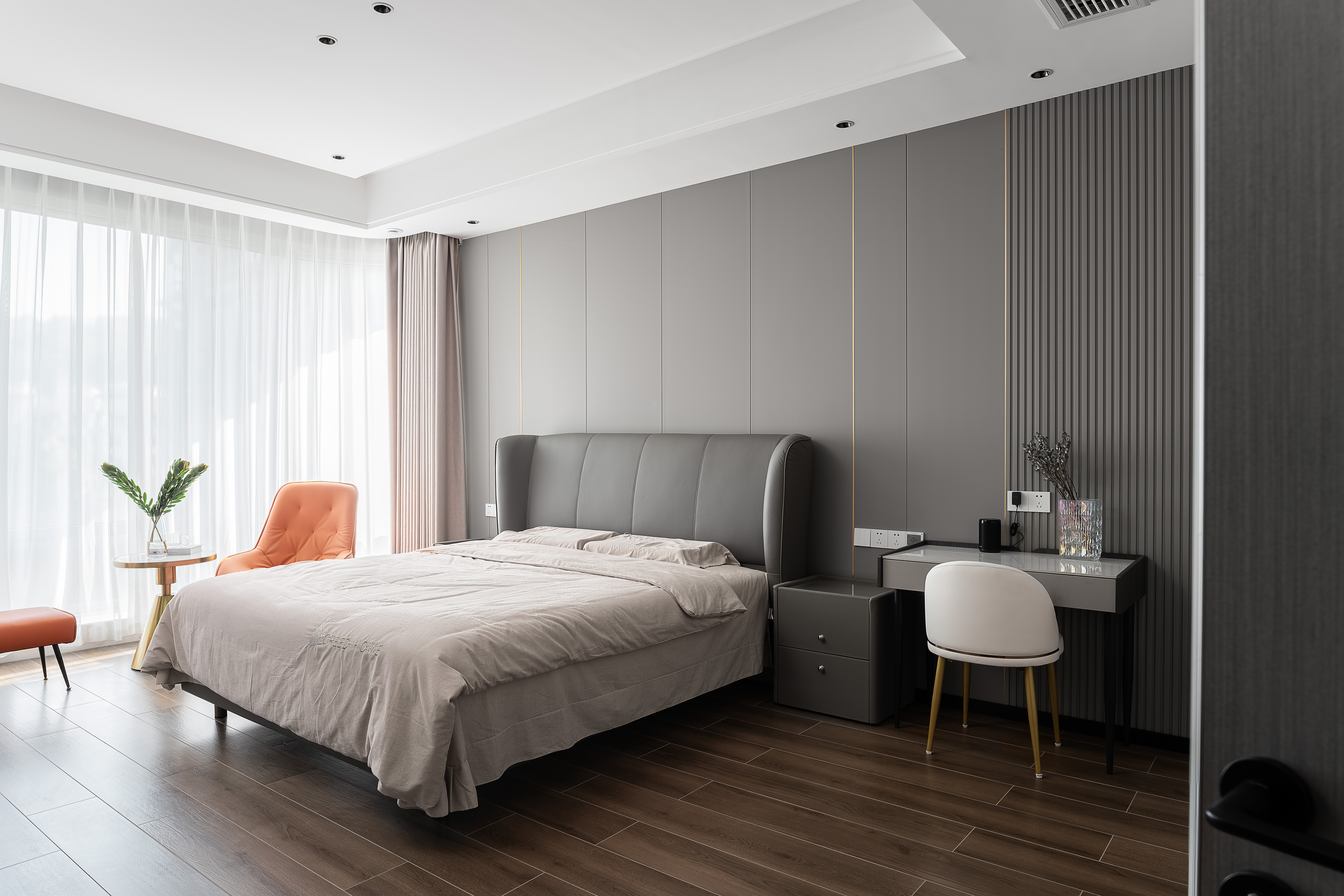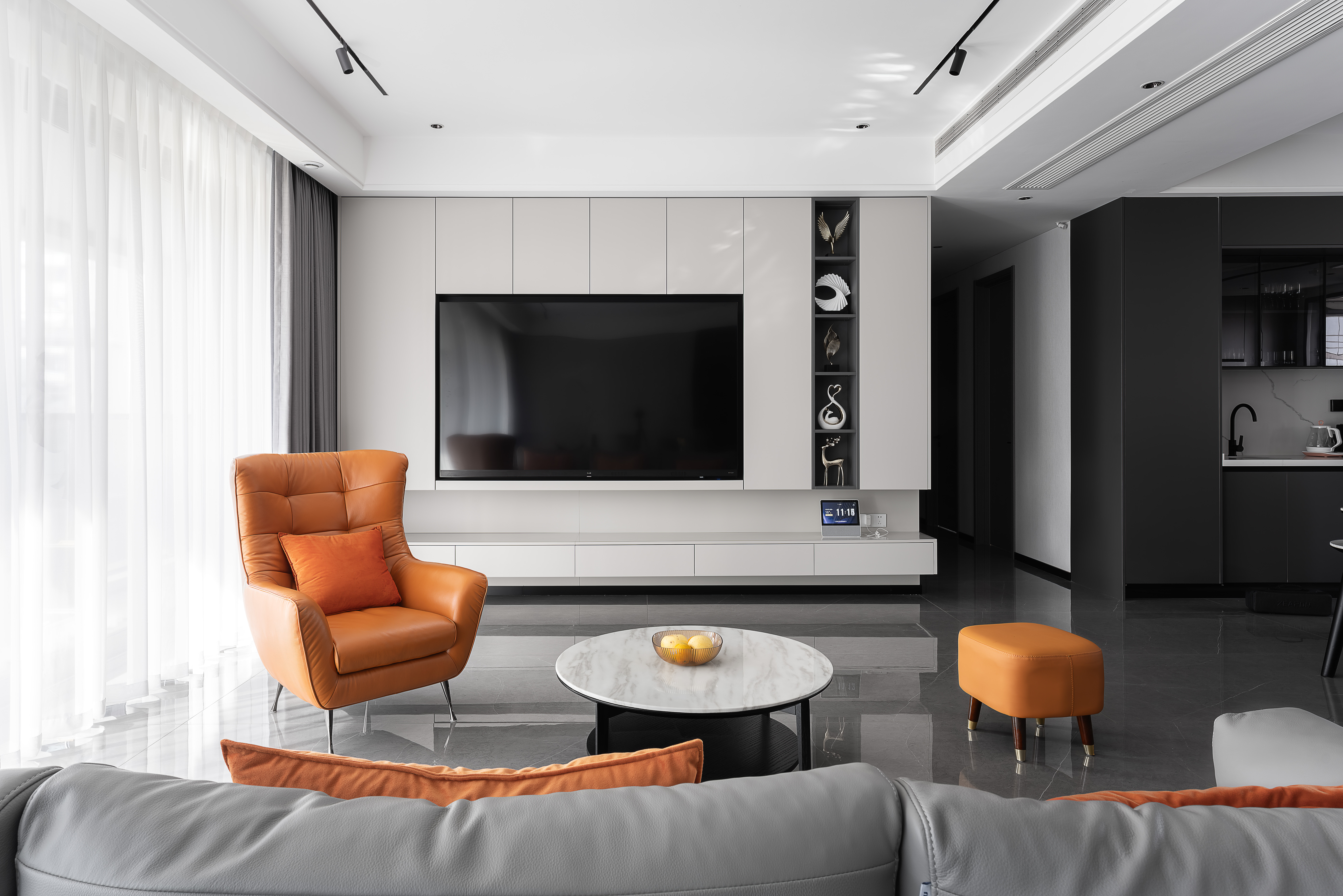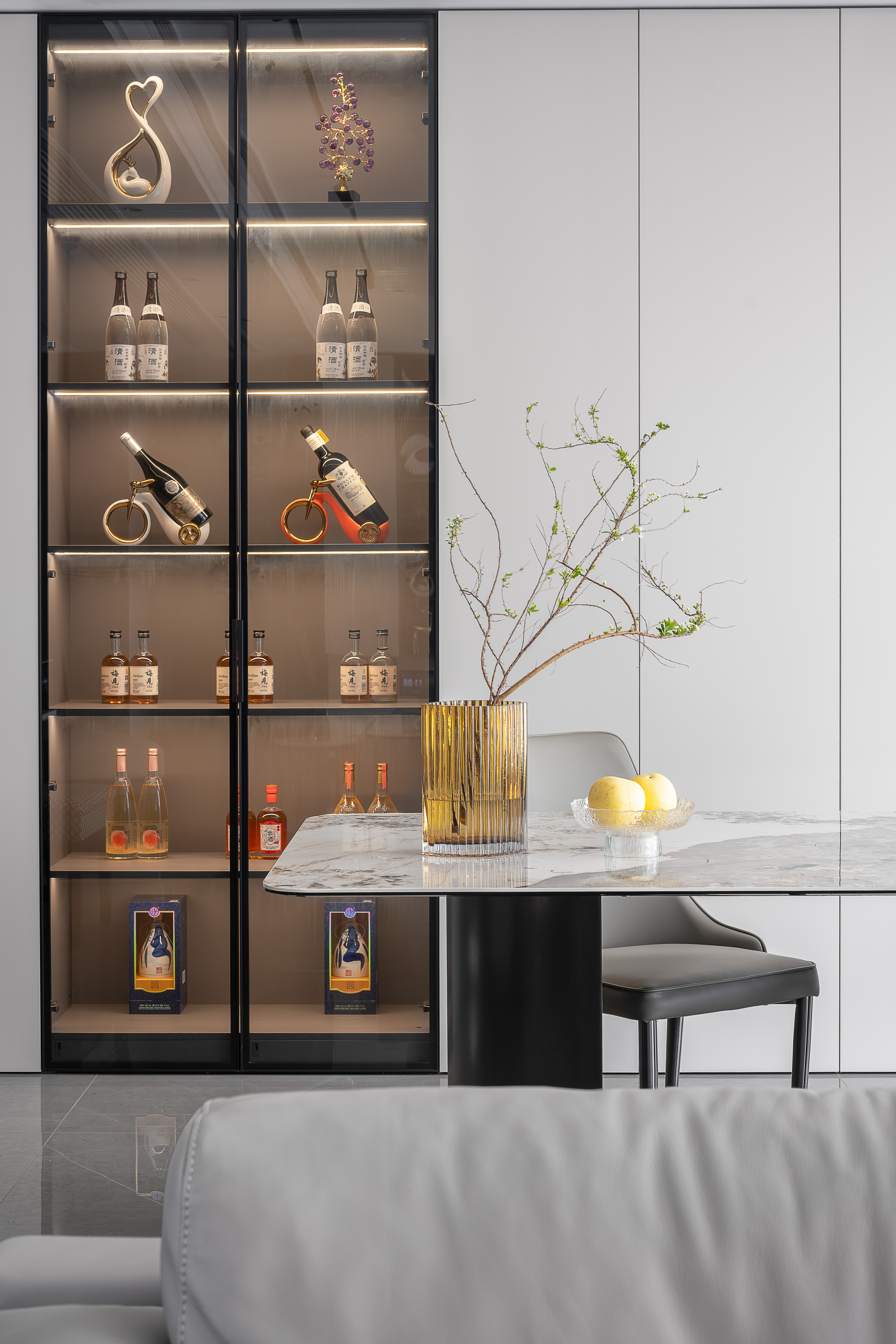 空间布局:原始户型本身已经足够优秀,再跟业主的沟通决定整个风格的走向,最终决定极简,极简就注定空间上做减法,空间做大,施工工艺以及收纳上做加法,最后完美体现出现代极简这一主题。