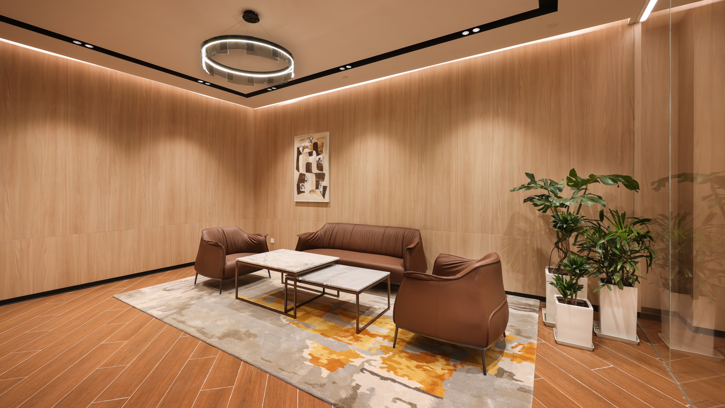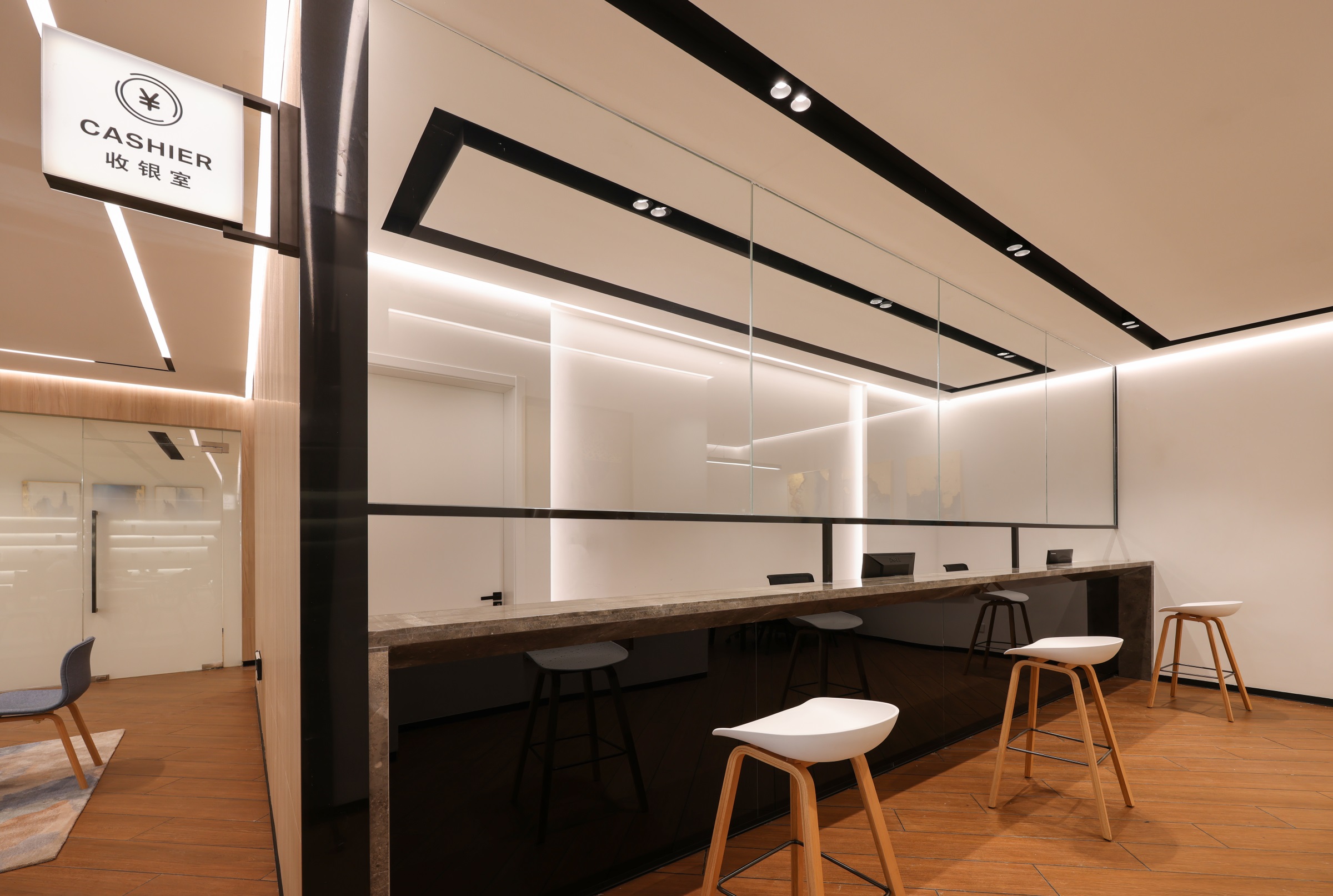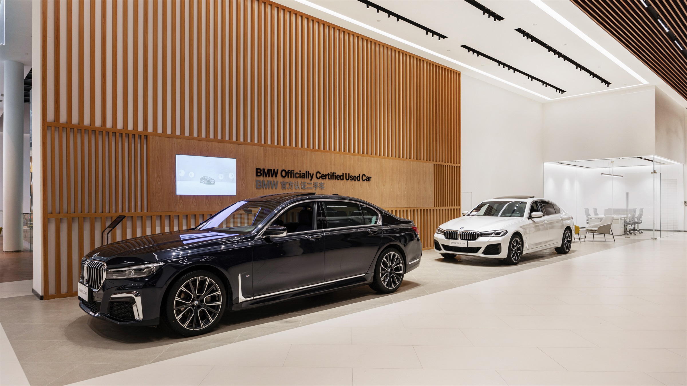 采用绿色、低碳、可持续能源是BMW公司在全球施工的规章式要求之一,因此,本案将可持续发展的理念贯穿到整个项目的每一处细节。其一,采用LED节能灯具,设计团队对整体照明体系进行了重构,并在高窗位置穿插木格栅,将温润的自然肌理与现代科技融合,让空间能在光影中尽显朦胧雅韵。其二,以水机中央空调代替原有立式空调,并拆除了原先耗能较大的燃气暖气片,有效改善室内舒适度的同时,从根本上降低了能源的消耗。