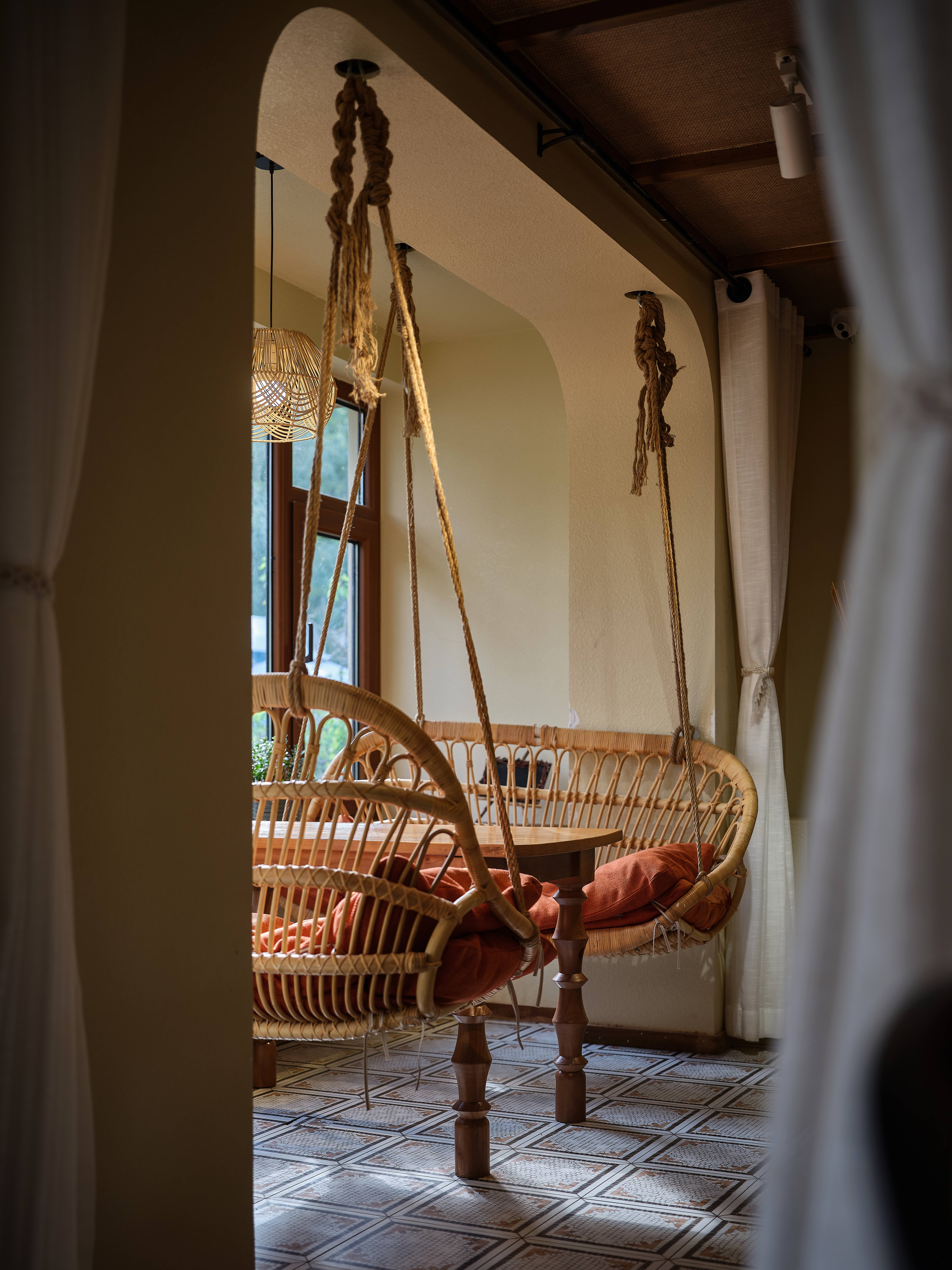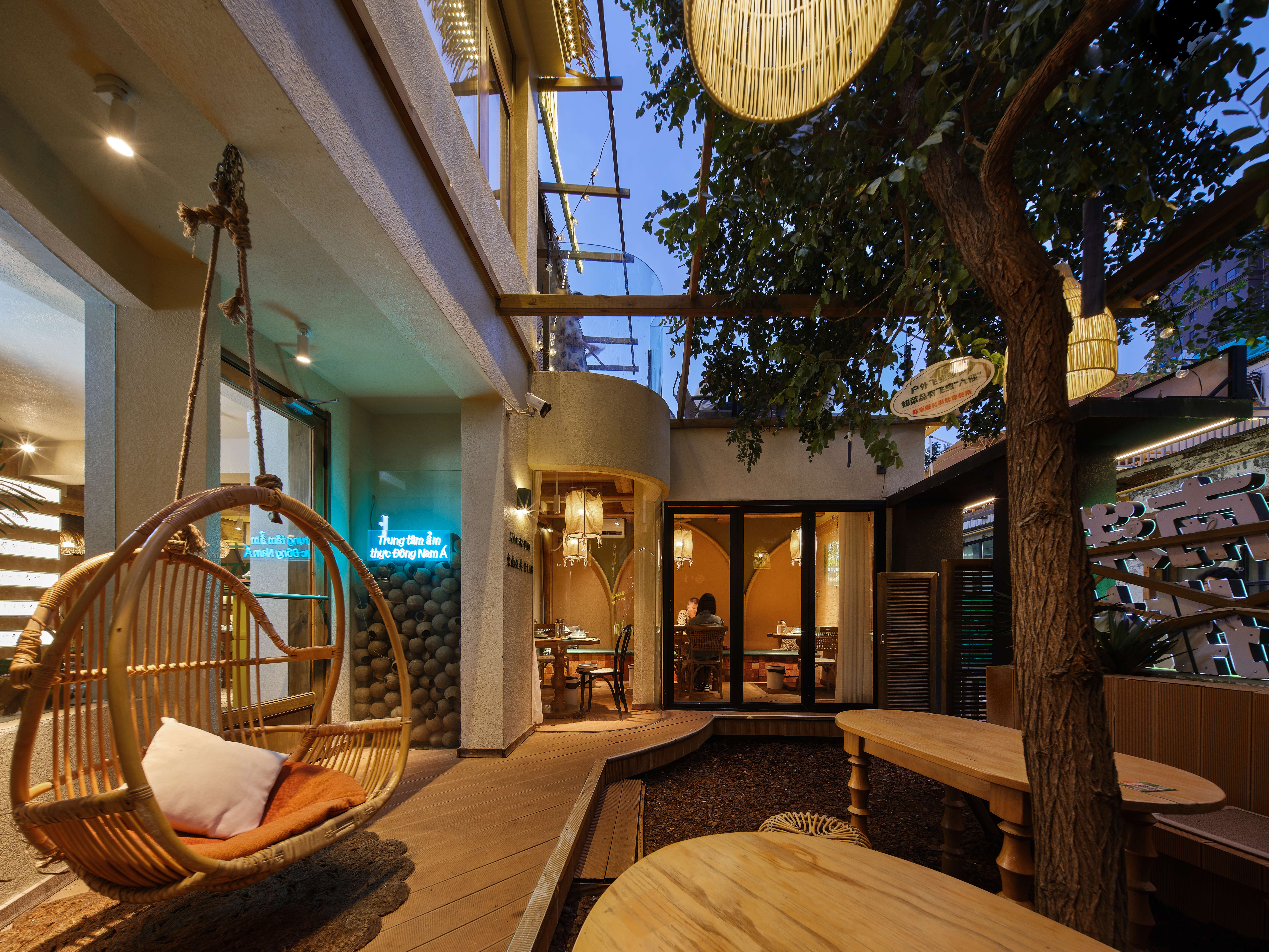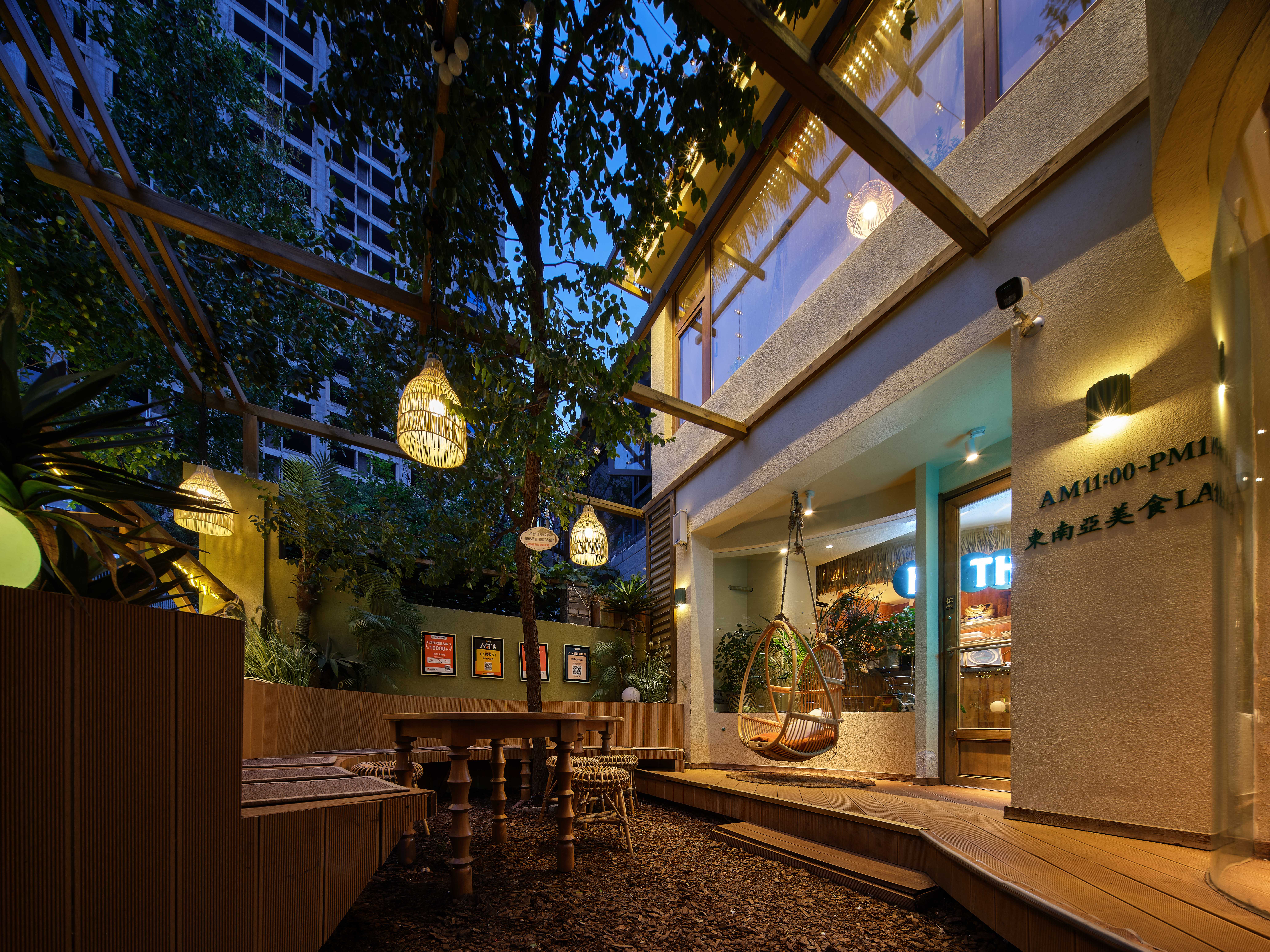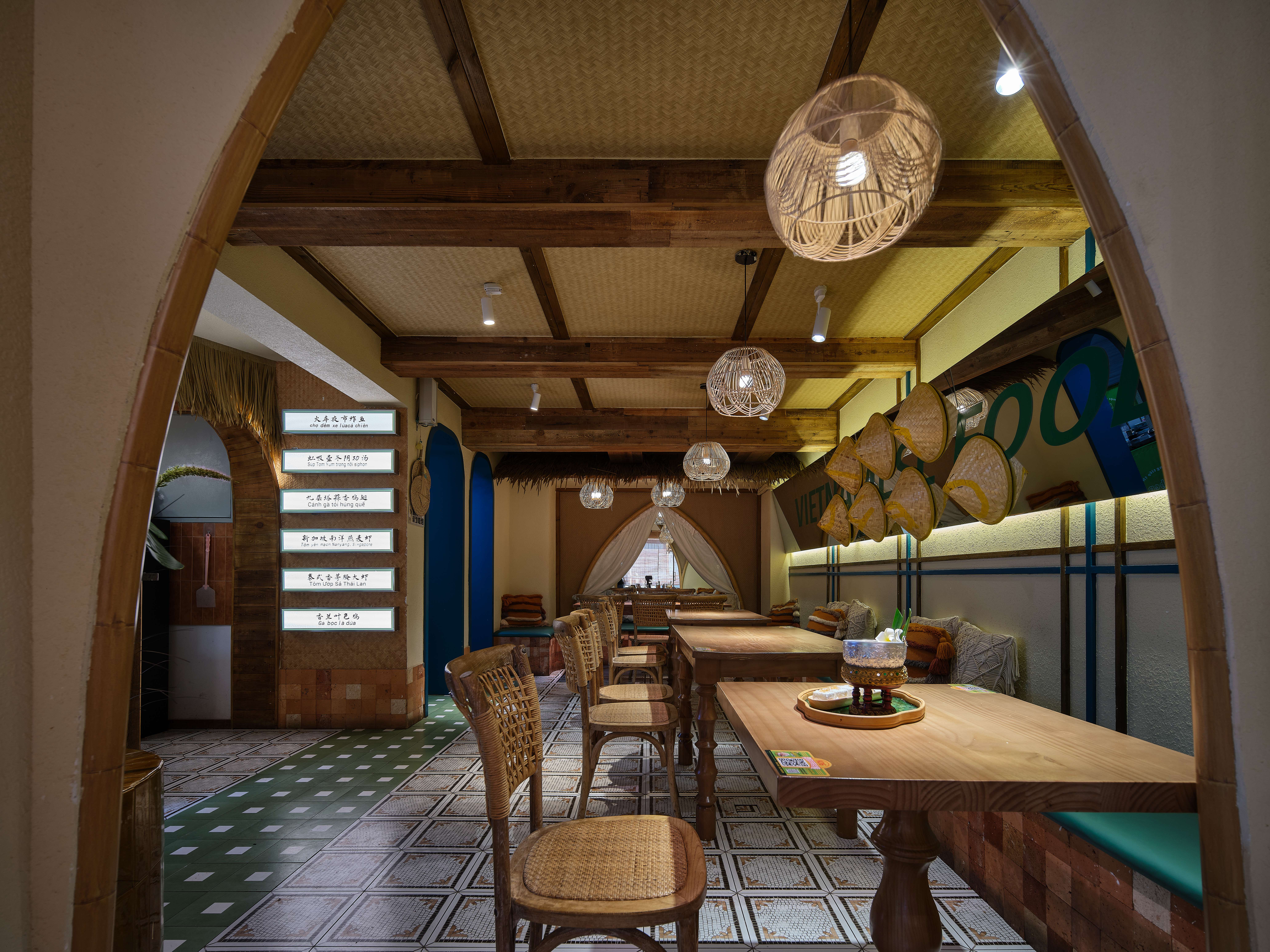 从原建筑到内部空间布局,我们把室内外的体验感做了更多元的变化。从庭院到室内,再从开敞空间到分隔空间,最后来到户外露台。空间的节奏变化,满足了不同需求的同时,也让项目本身更加具有独特性。 在庭院内,可以感受到光从枝叶洒落,微风轻拂空中的纱幔;在露台,当户外的视线被升高,松弛与静谧也得到了加持,扶栏遥望或者感受头顶的月光,自然带来的放松感会让人更加沉浸。 也许走进这里的片刻,可以让你恍然间感受到轻度的热带度假体验与和自然相处的松弛感。