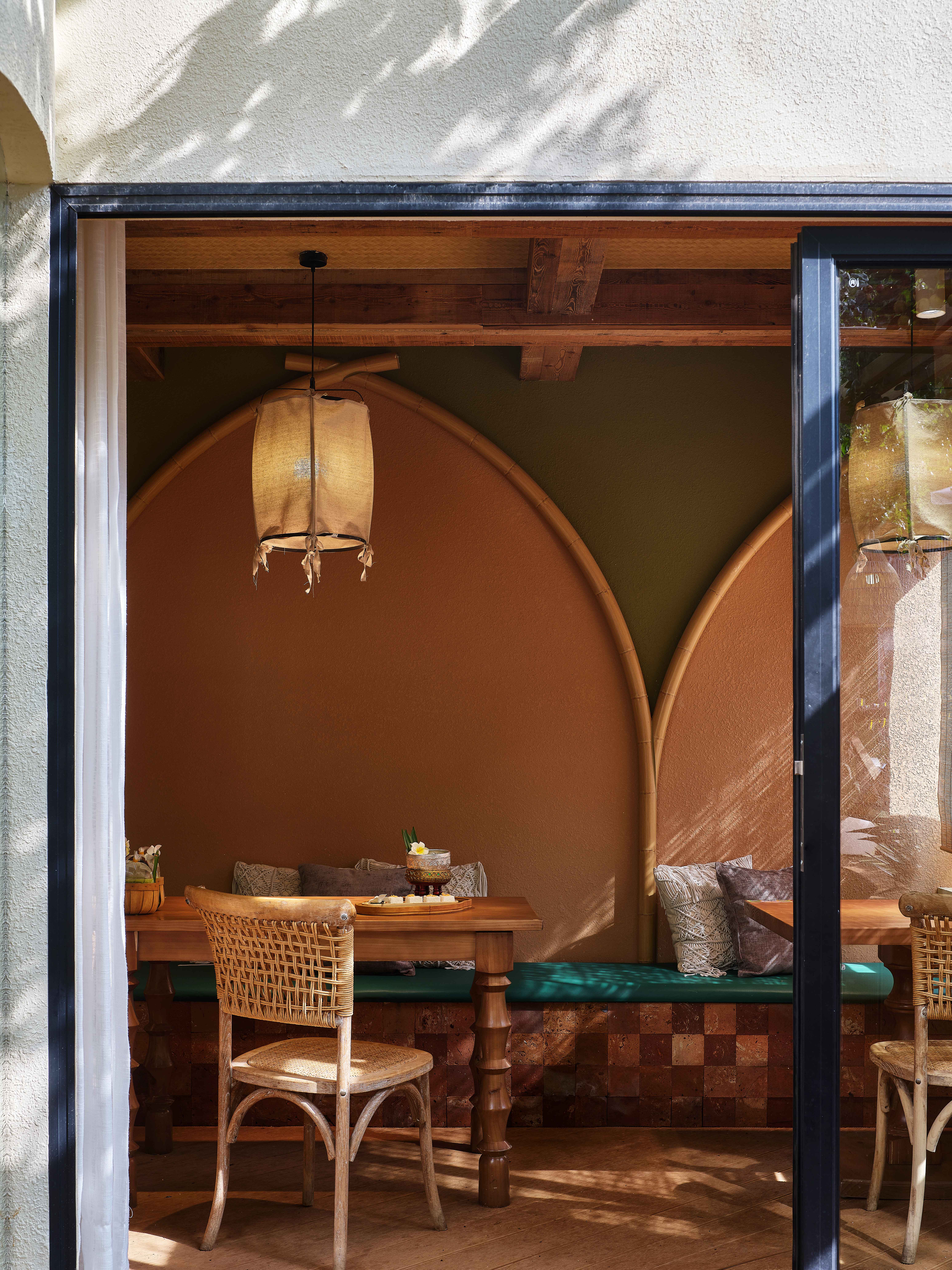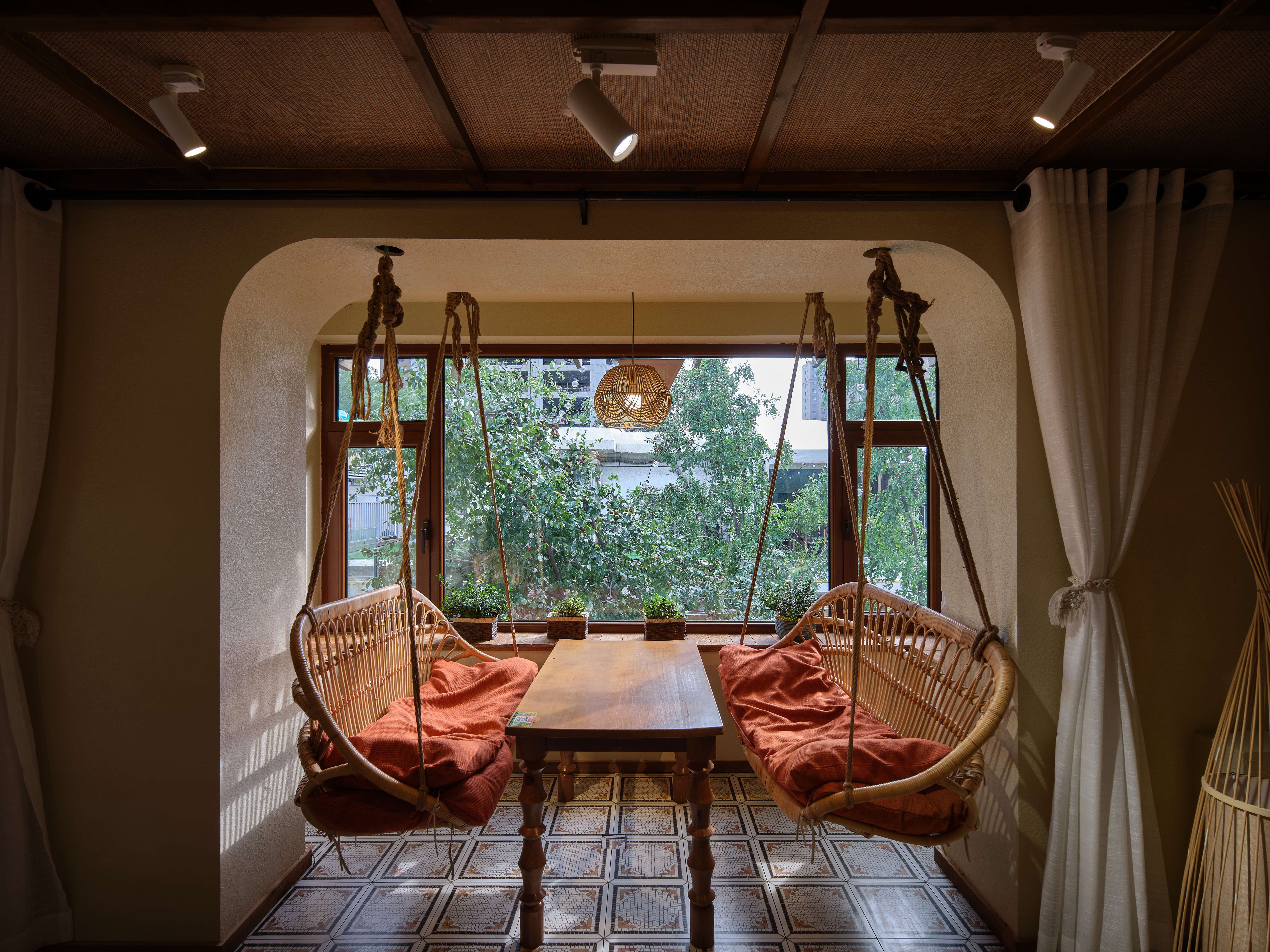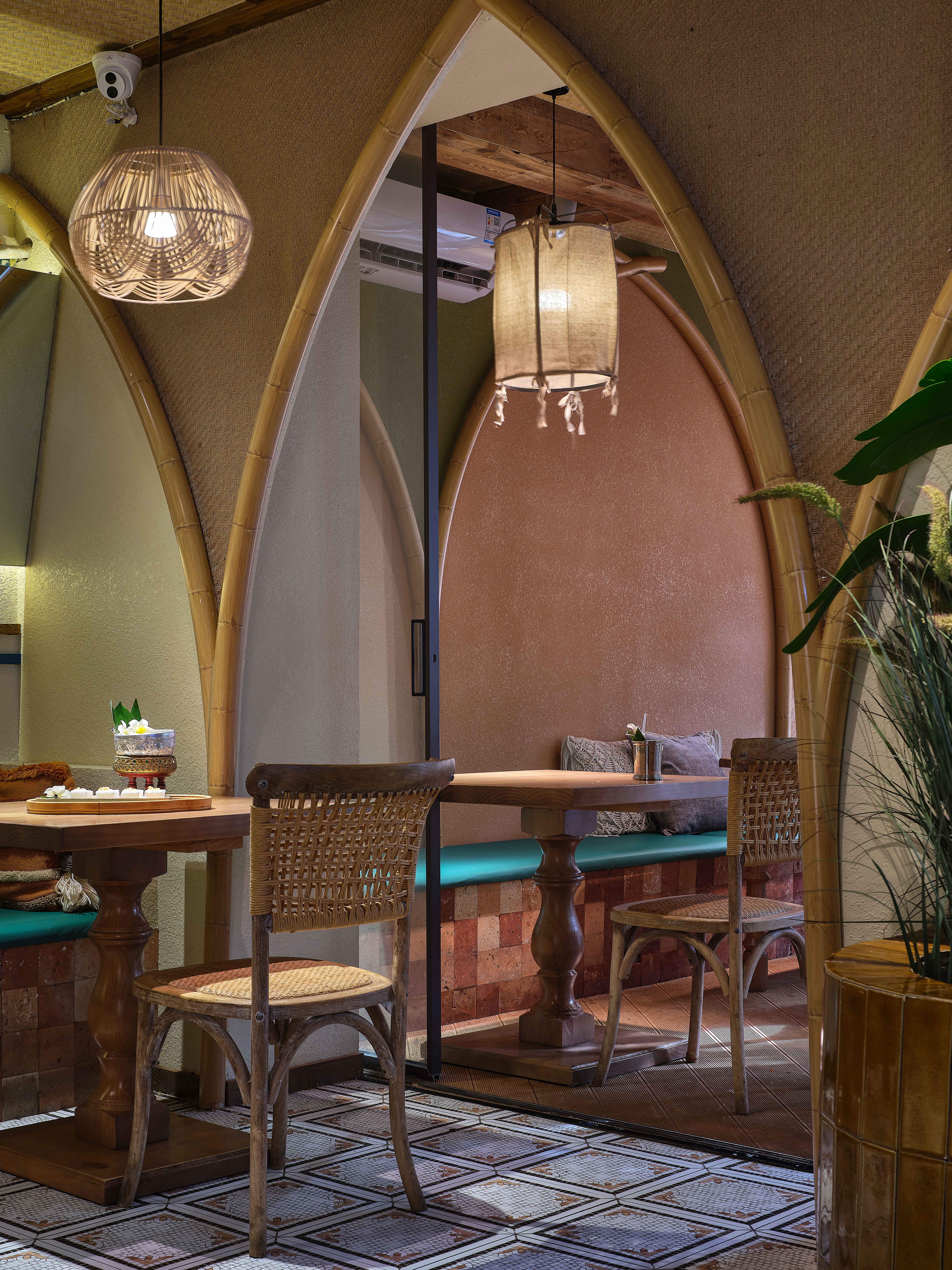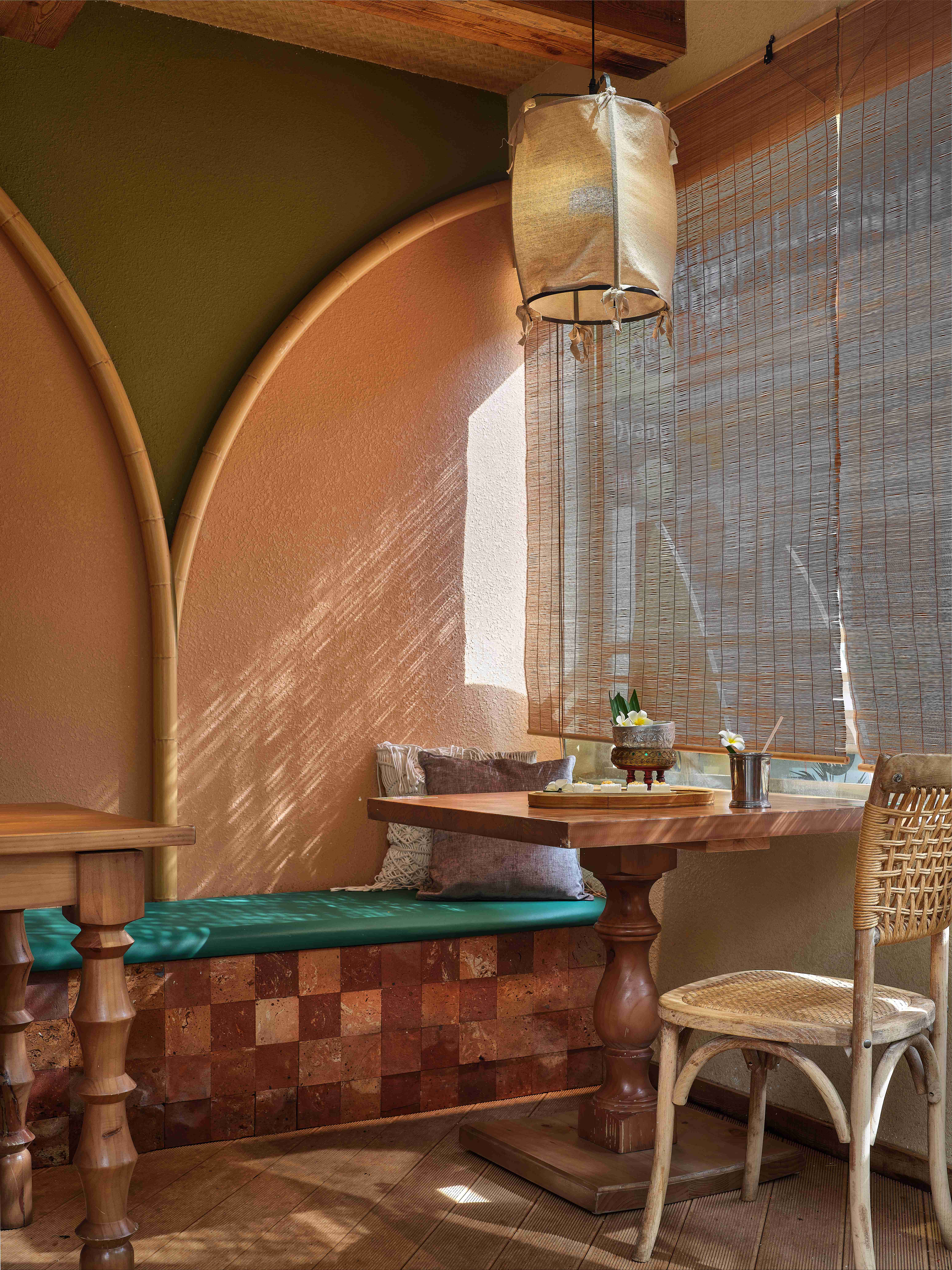 从原建筑到内部空间布局,我们把室内外的体验感做了更多元的变化。从庭院到室内,再从开敞空间到分隔空间,最后来到户外露台。空间的节奏变化,满足了不同需求的同时,也让项目本身更加具有独特性。 在庭院内,可以感受到光从枝叶洒落,微风轻拂空中的纱幔;在露台,当户外的视线被升高,松弛与静谧也得到了加持,扶栏遥望或者感受头顶的月光,自然带来的放松感会让人更加沉浸。 也许走进这里的片刻,可以让你恍然间感受到轻度的热带度假体验与和自然相处的松弛感。