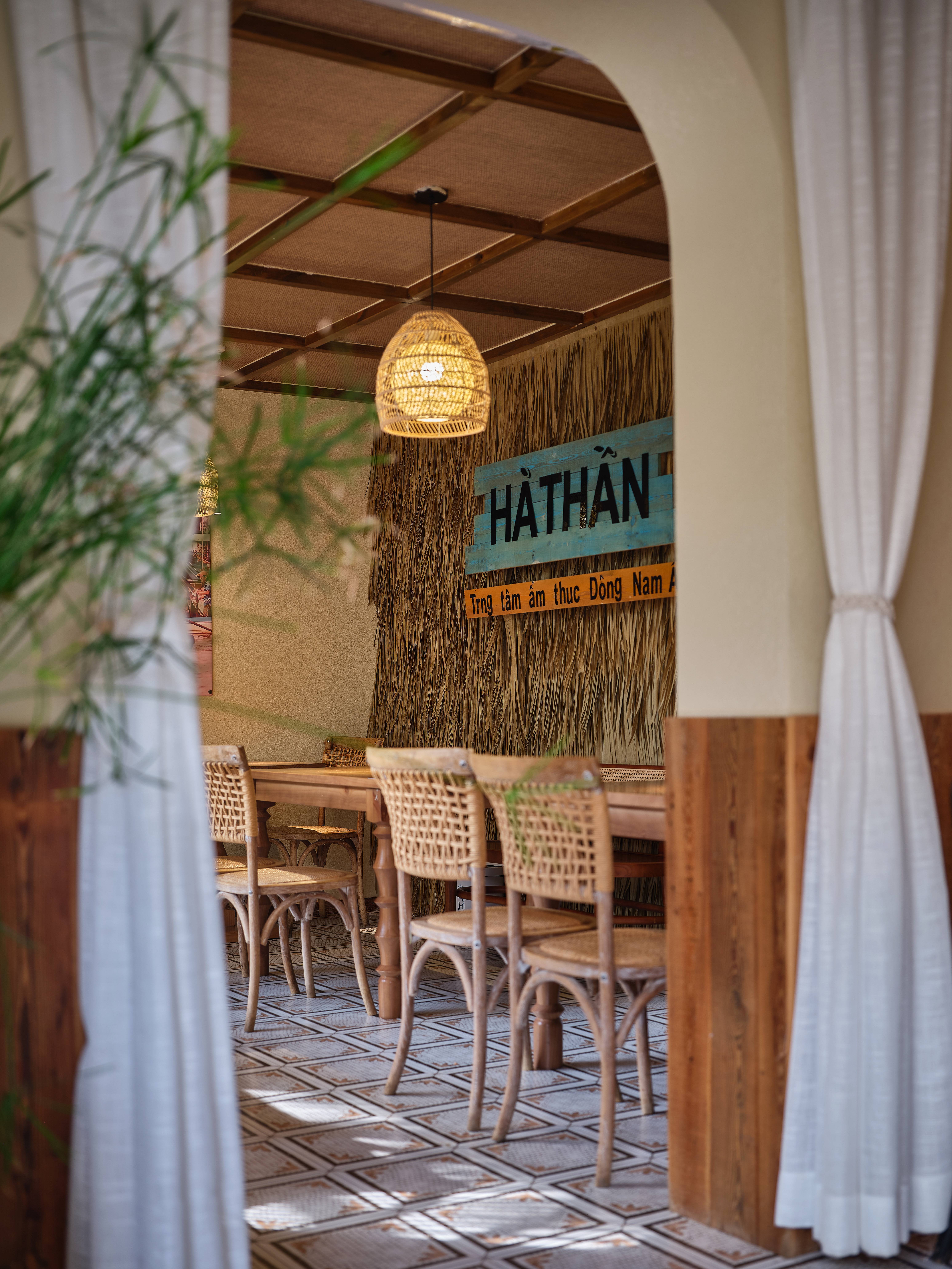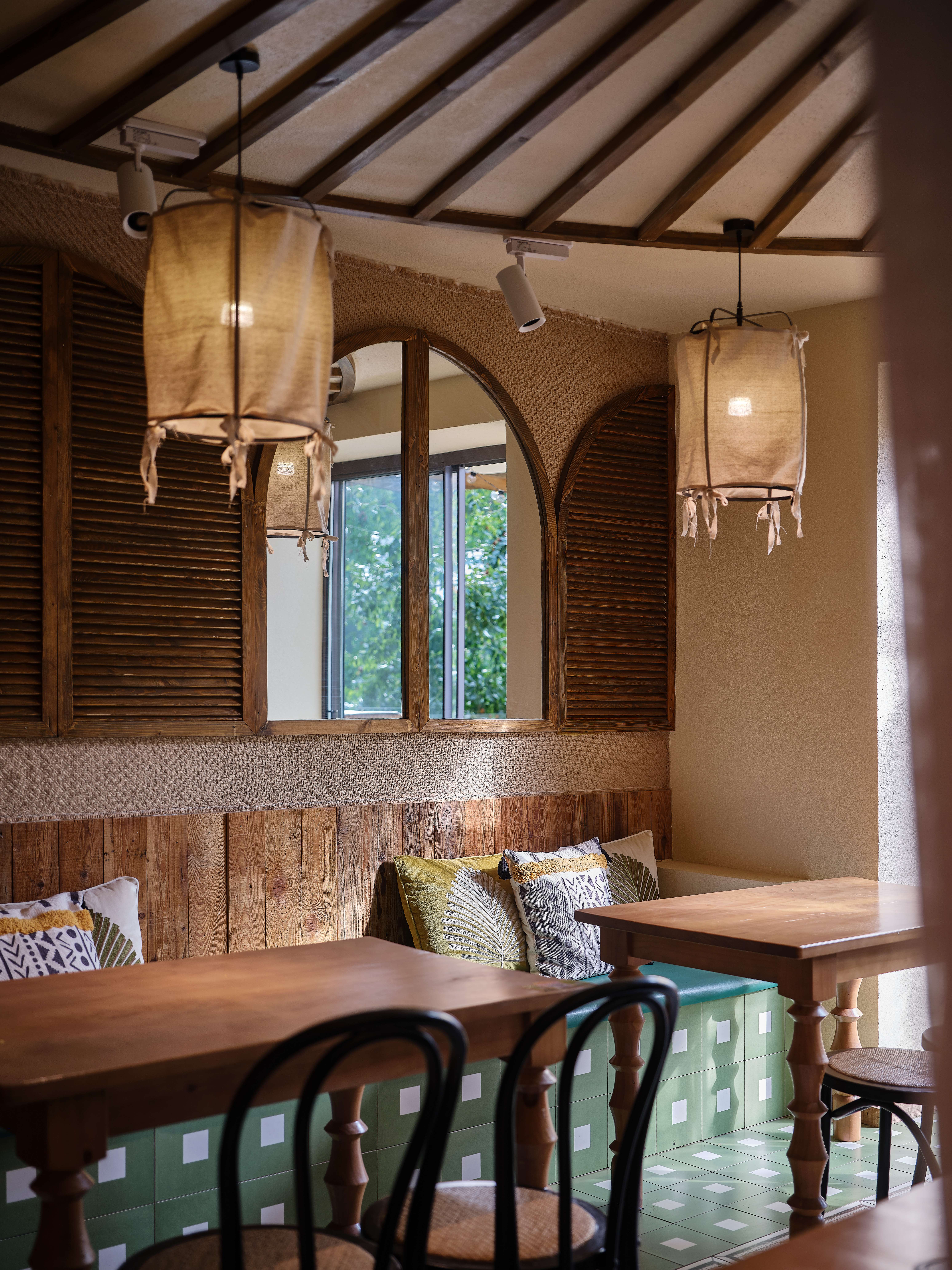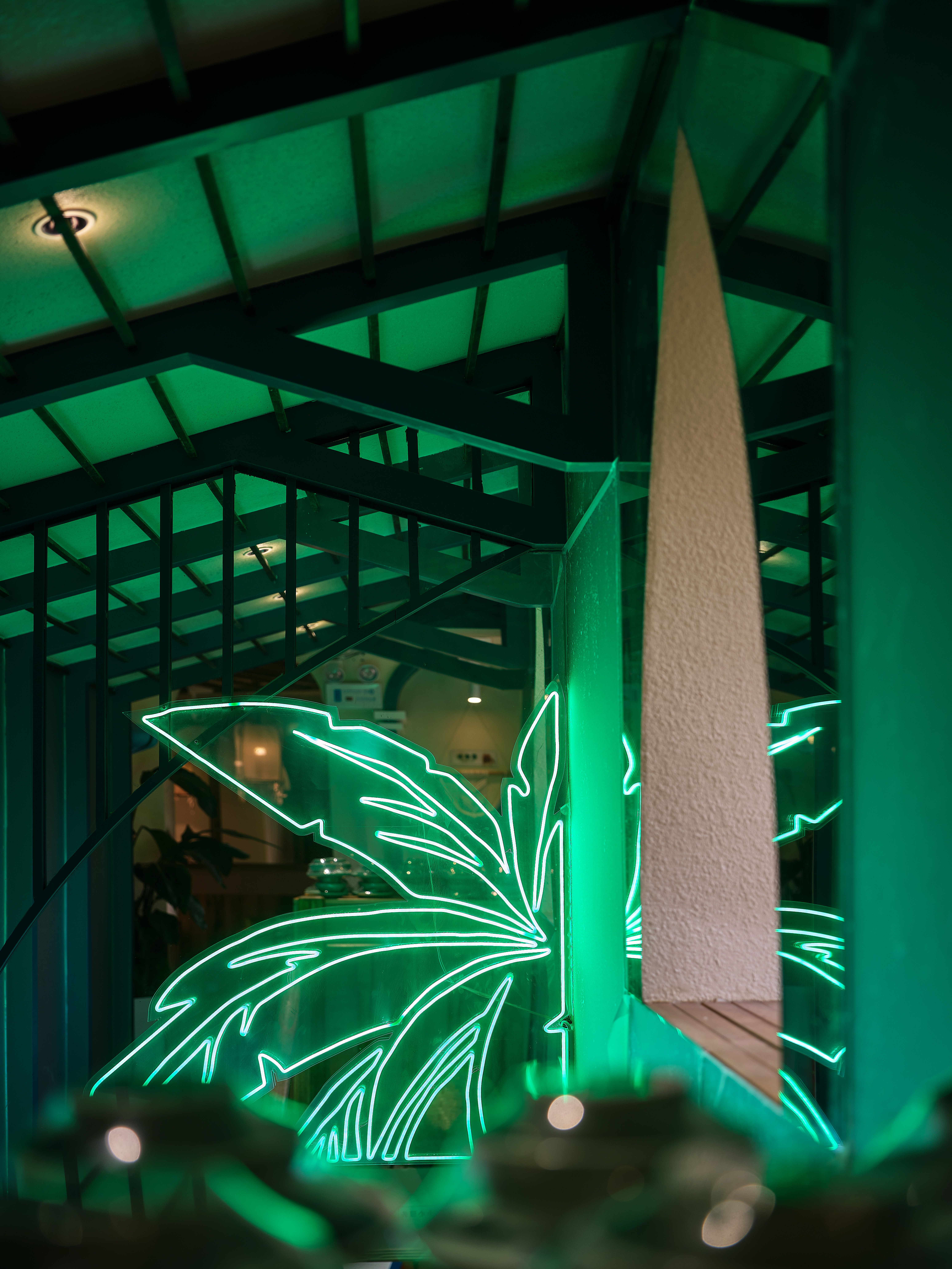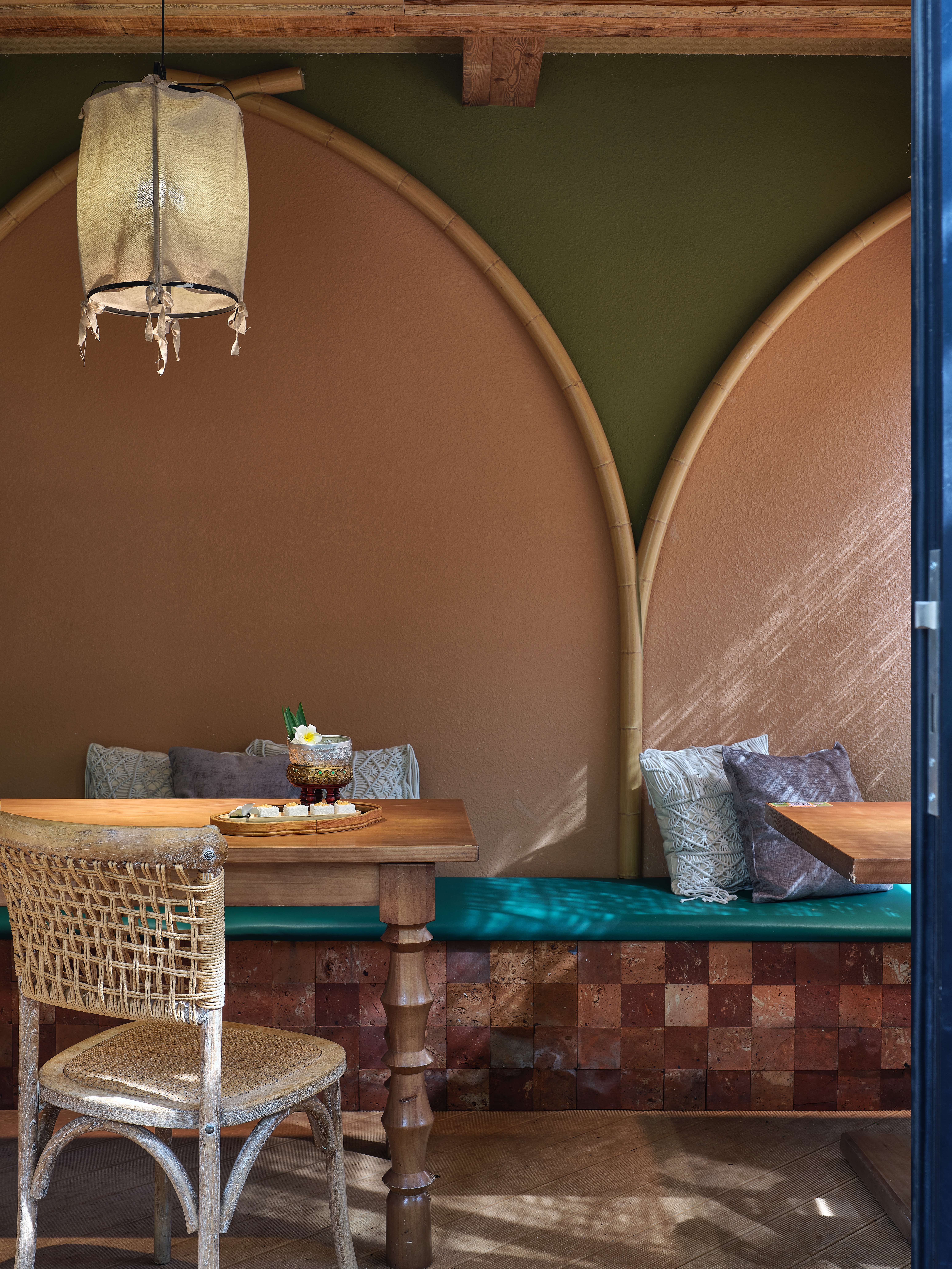 从原建筑到内部空间布局,我们把室内外的体验感做了更多元的变化。从庭院到室内,再从开敞空间到分隔空间,最后来到户外露台。空间的节奏变化,满足了不同需求的同时,也让项目本身更加具有独特性。 在庭院内,可以感受到光从枝叶洒落,微风轻拂空中的纱幔;在露台,当户外的视线被升高,松弛与静谧也得到了加持,扶栏遥望或者感受头顶的月光,自然带来的放松感会让人更加沉浸。 也许走进这里的片刻,可以让你恍然间感受到轻度的热带度假体验与和自然相处的松弛感。