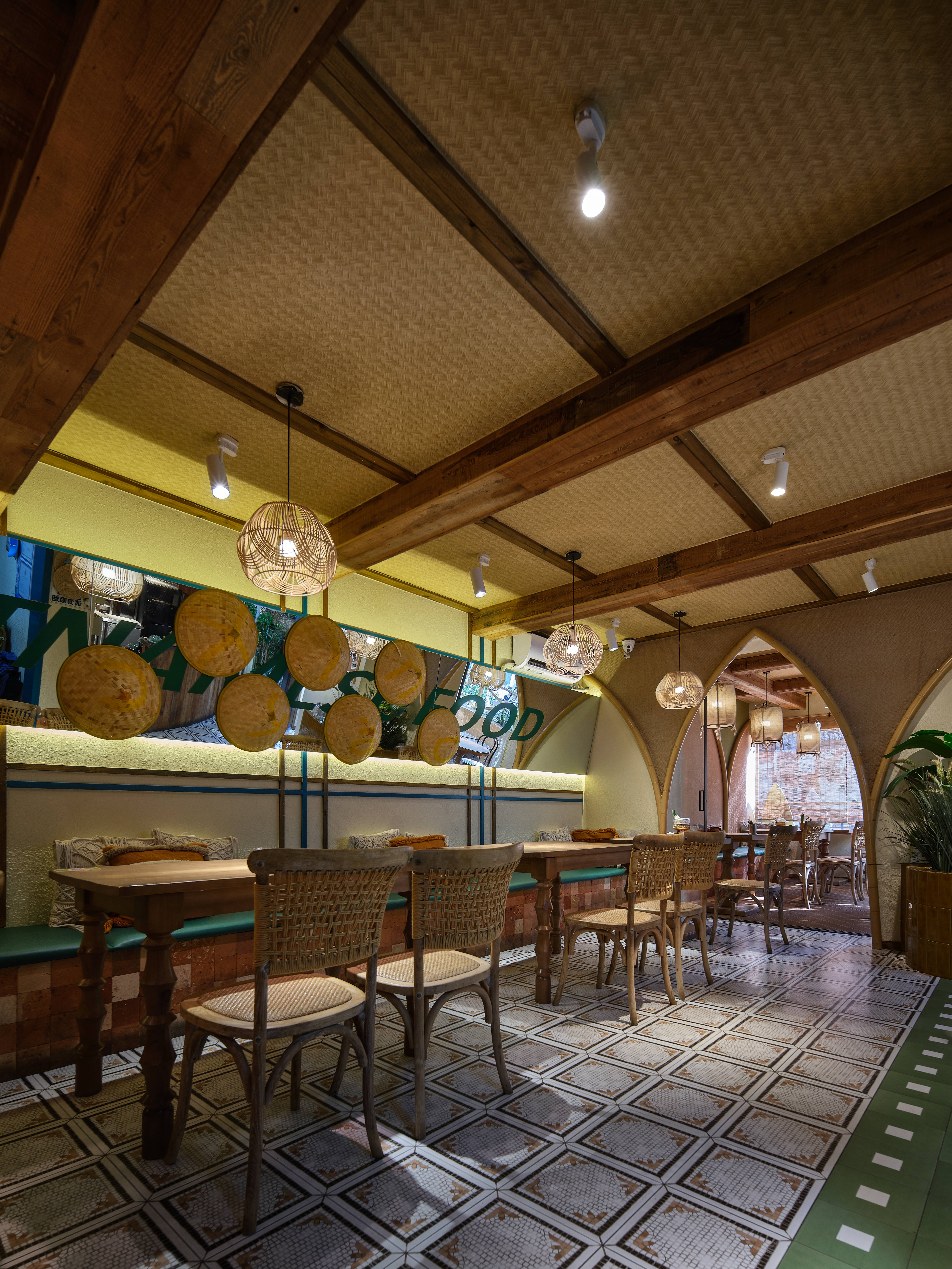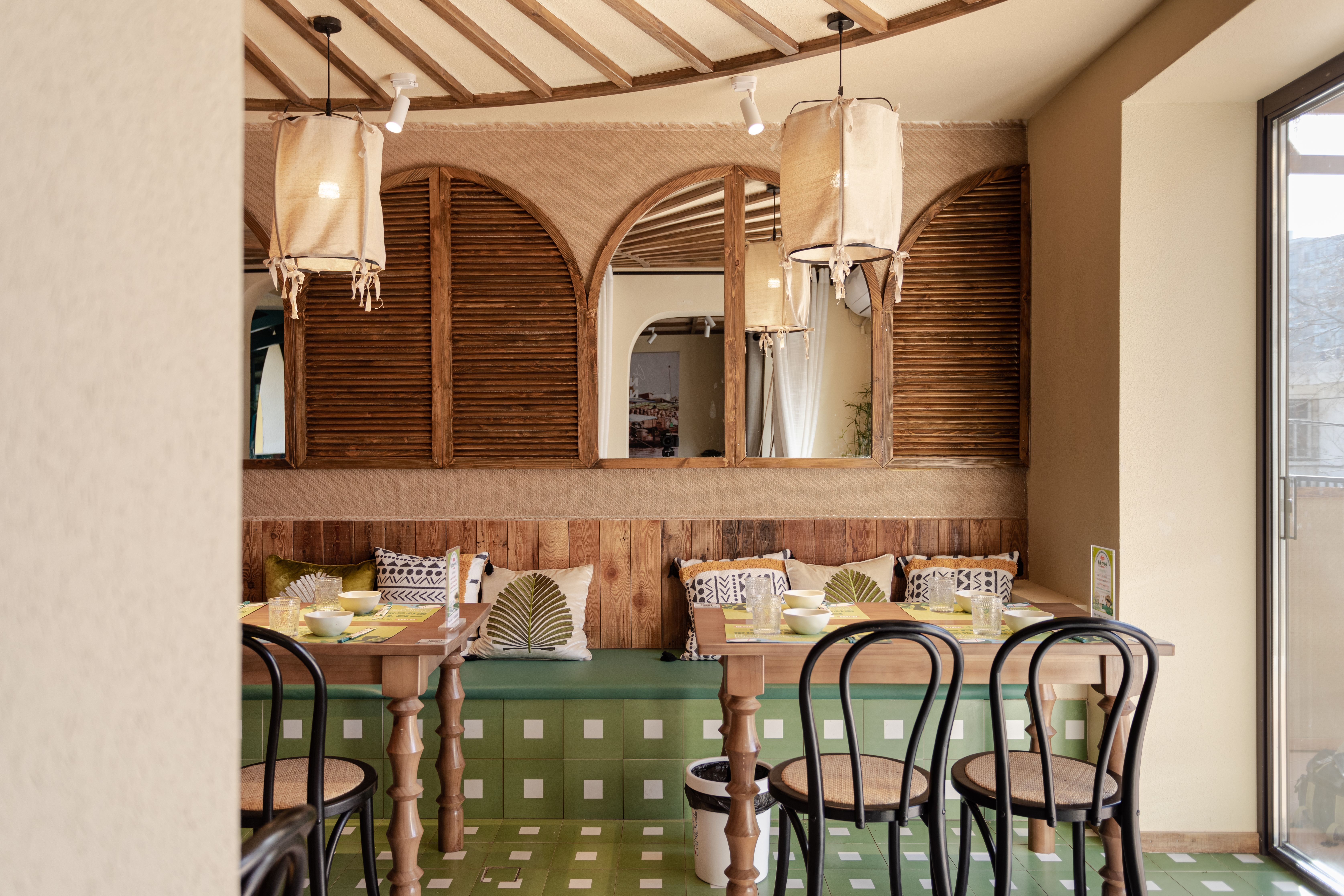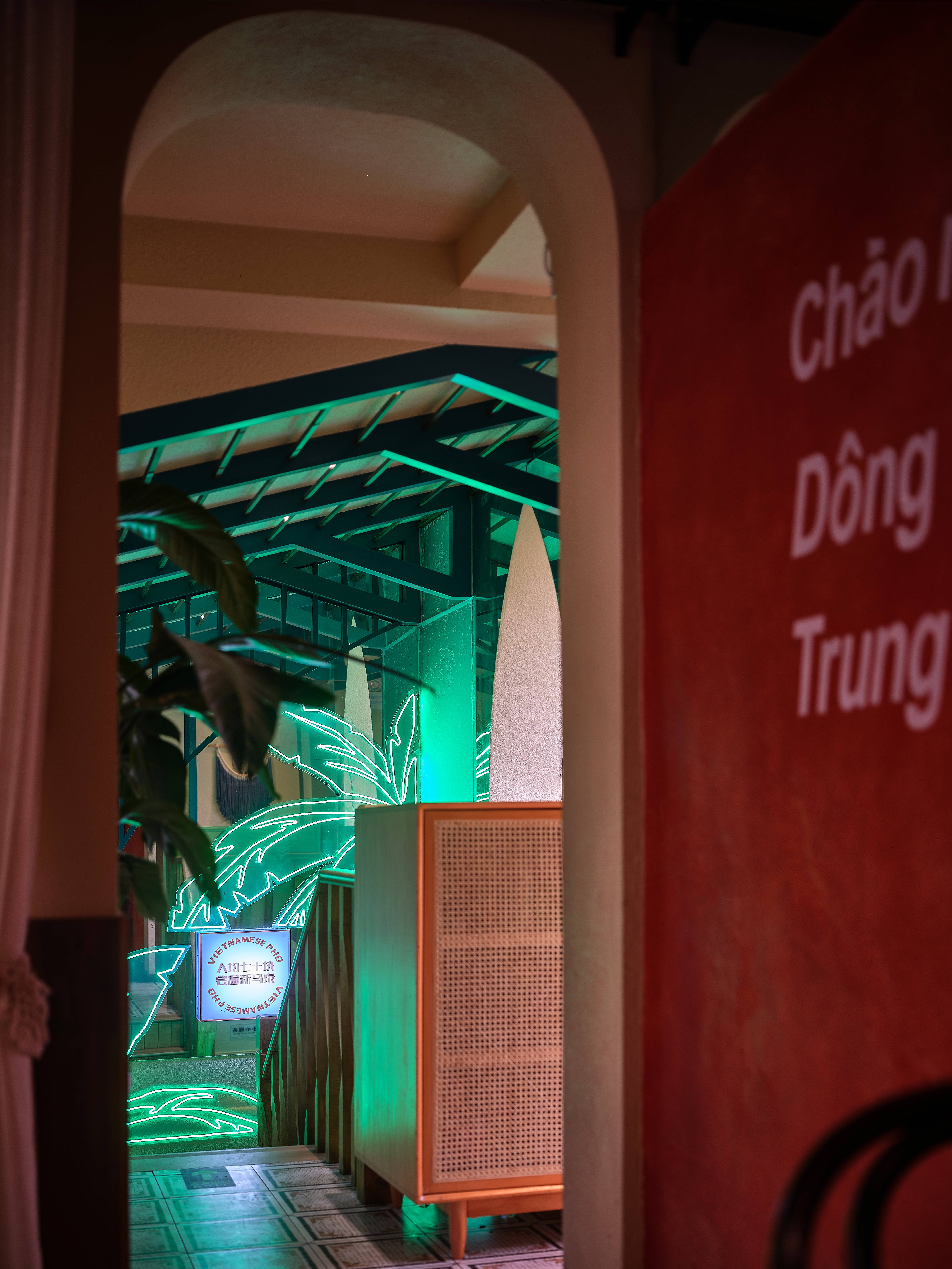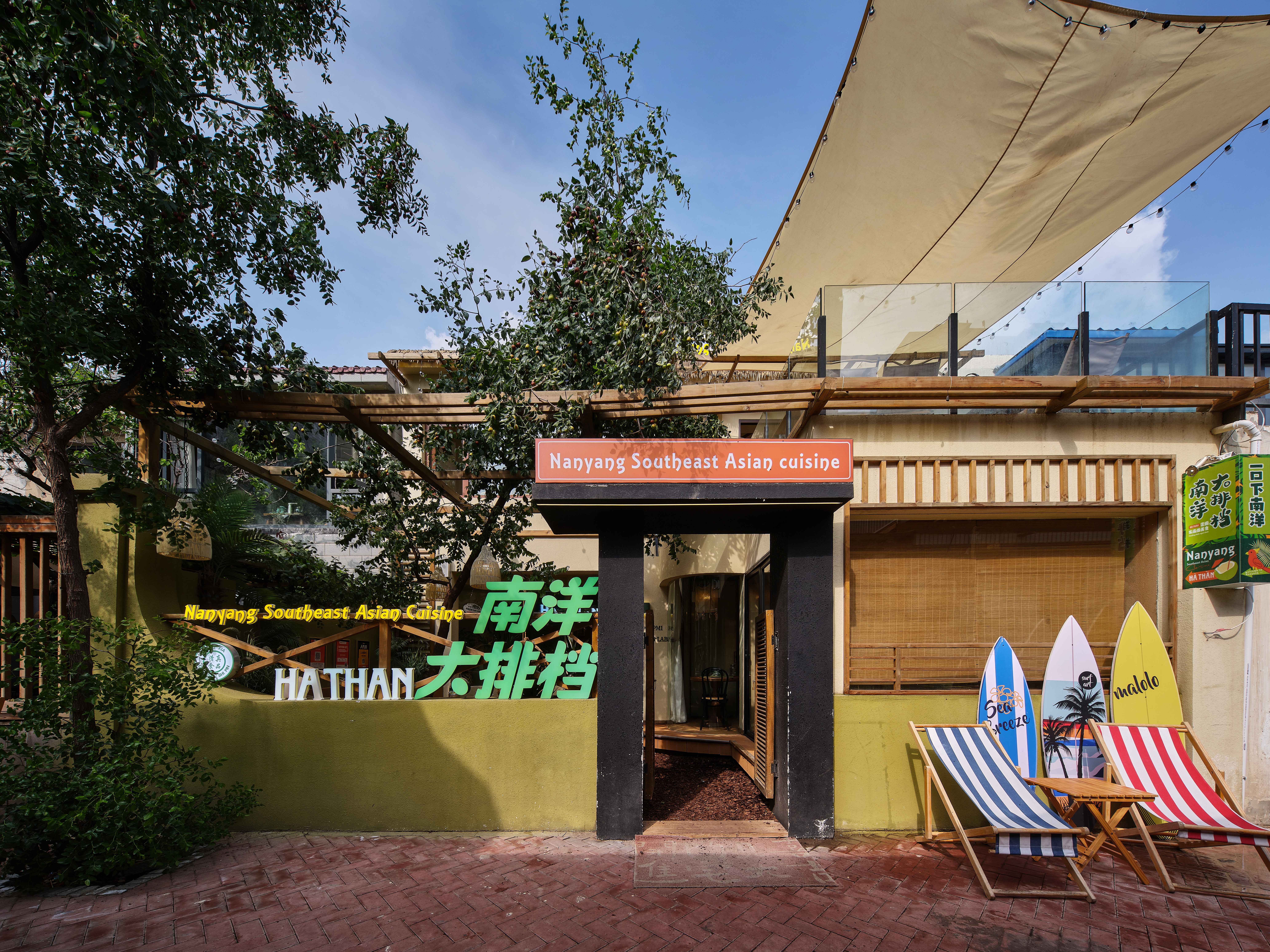 深藏在老社区内的餐厅项目,最大的缺点就是地理位置十分隐蔽,不利于商业传播。但是设计之初我们却想以此成为它独一无二的亮点,因为相比与综合商场的喧嚣热闹,穿过小巷远离街道的老式民居,却能给人更加放松和探索的感官体验。