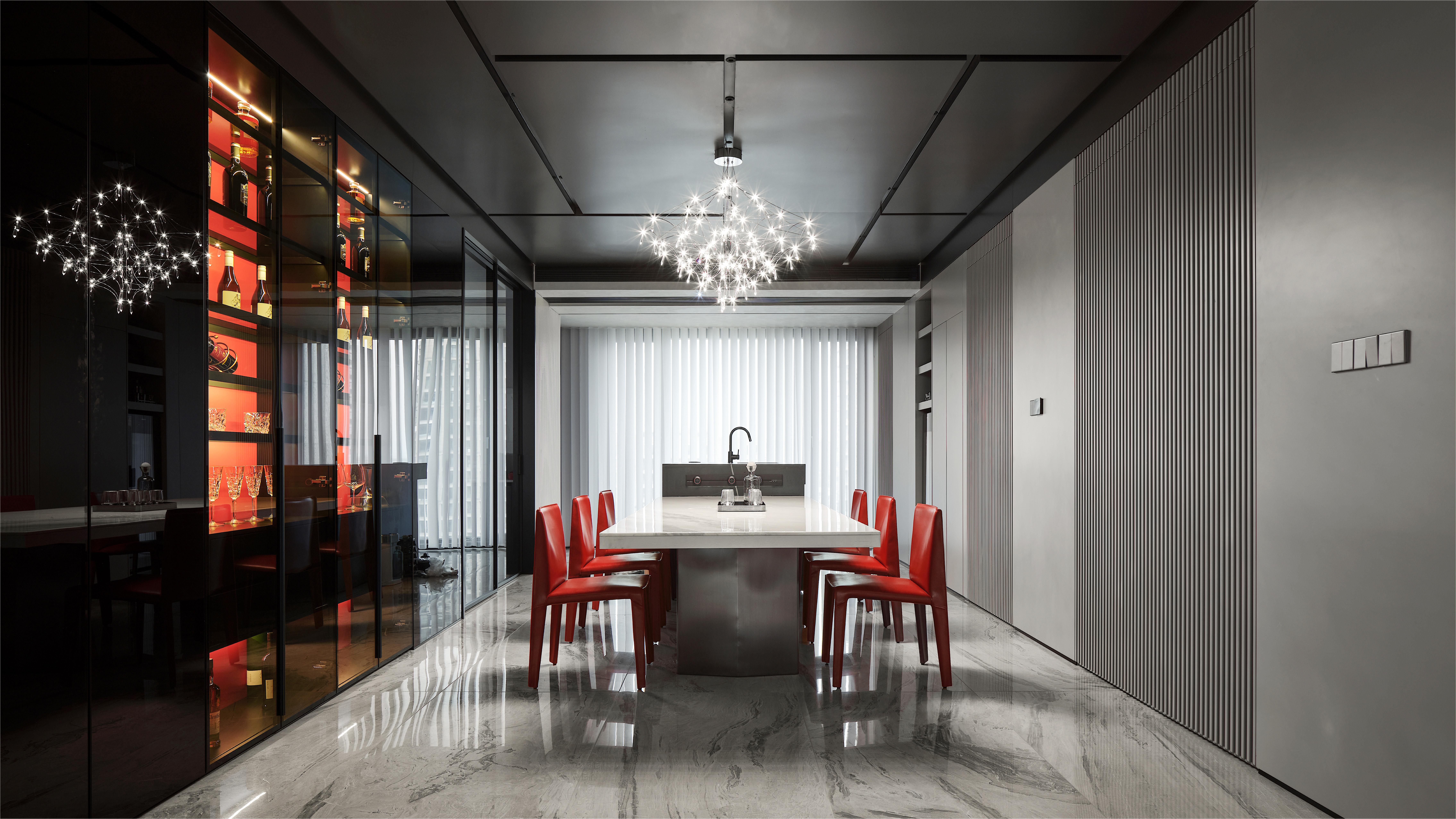 用金属、石材这种充满力量感的材料去塑造空间的底色。