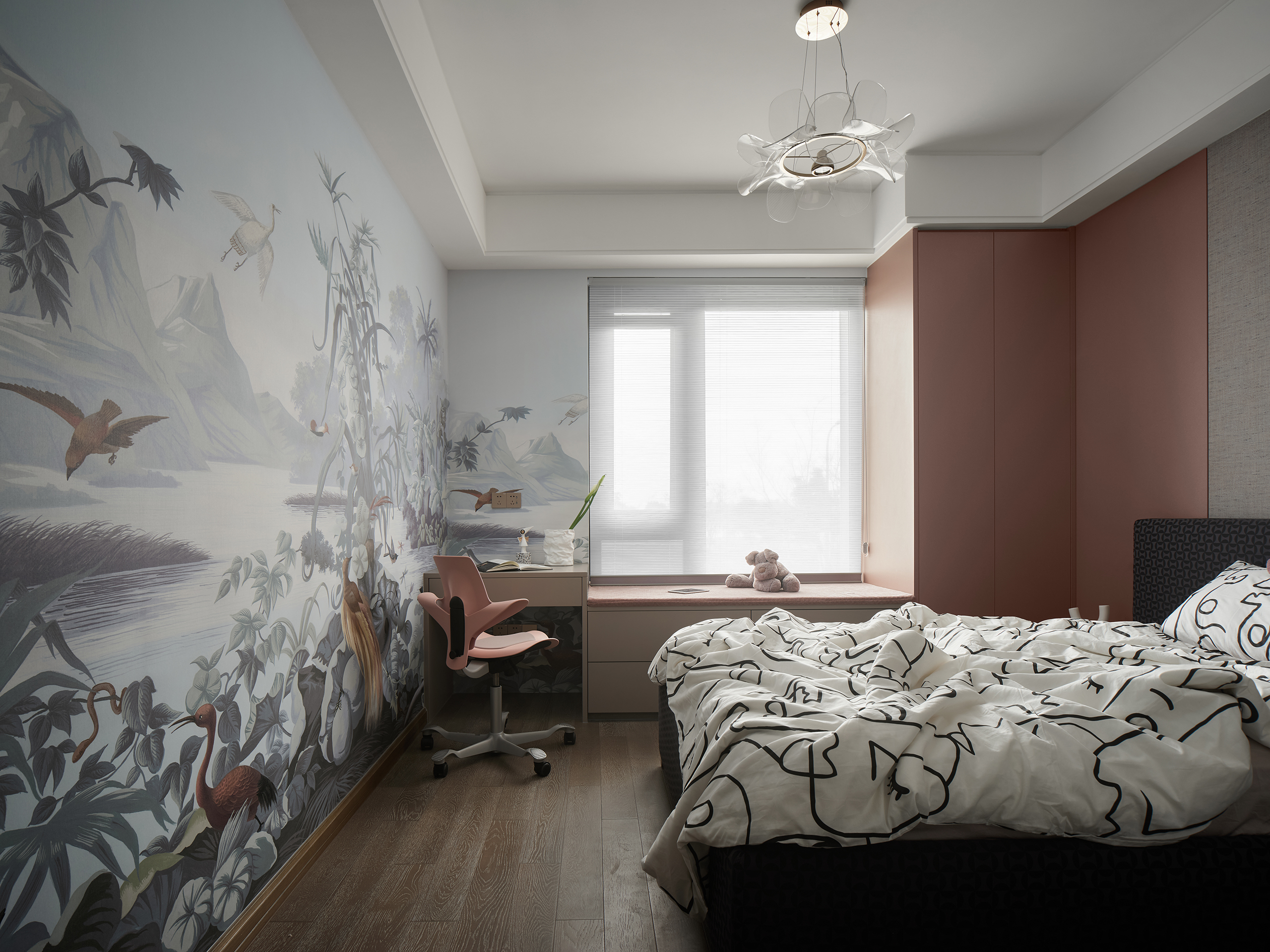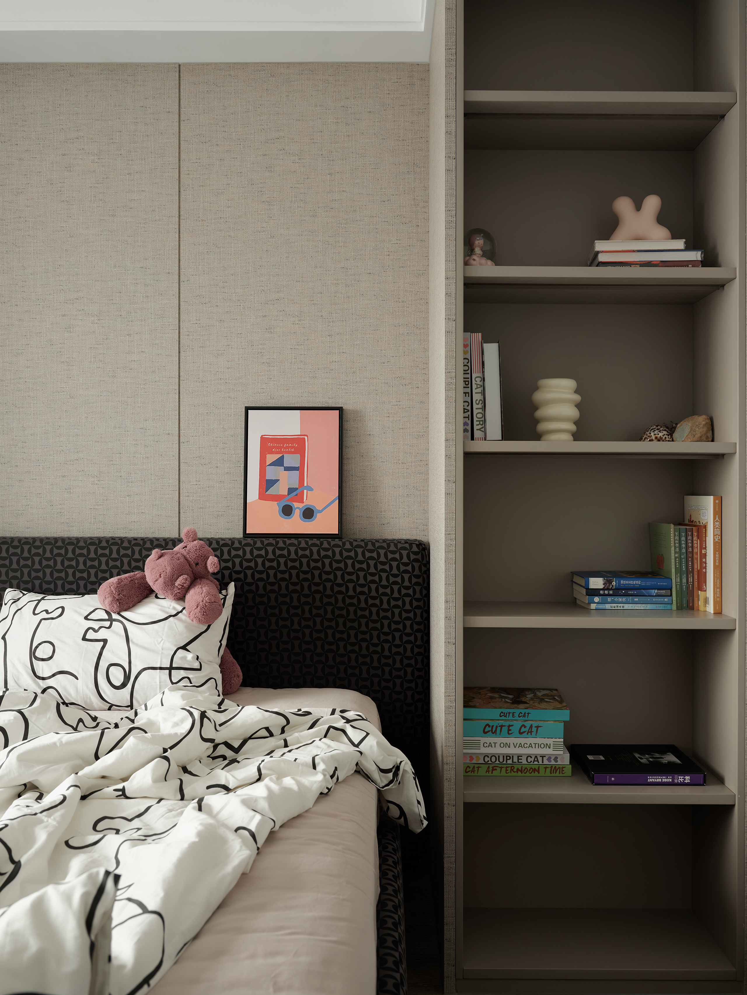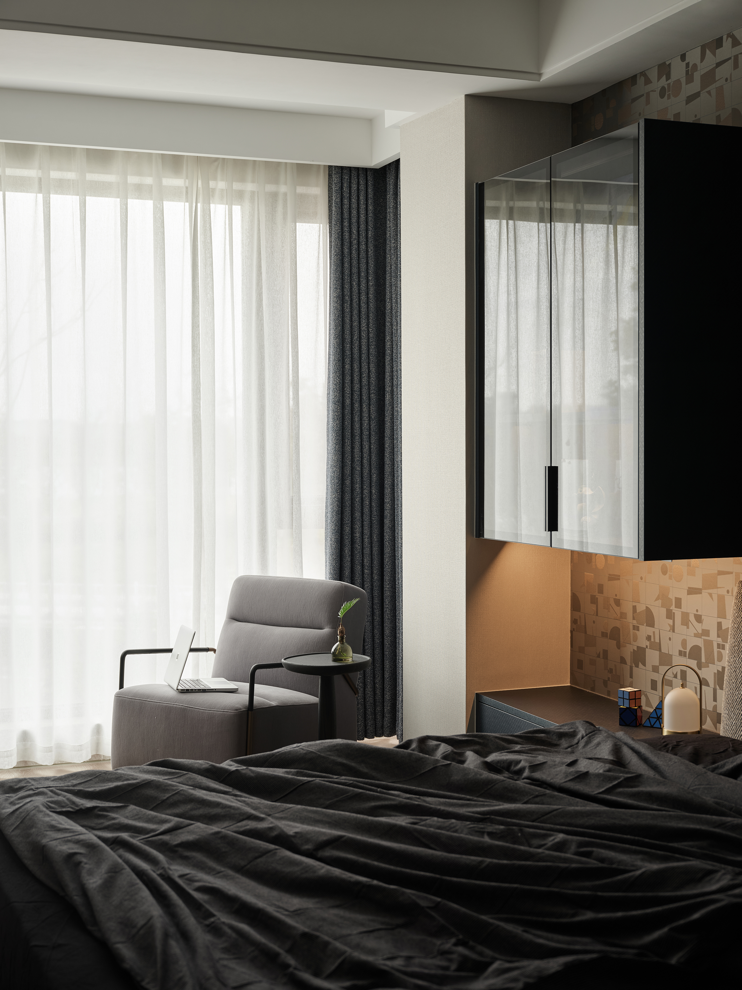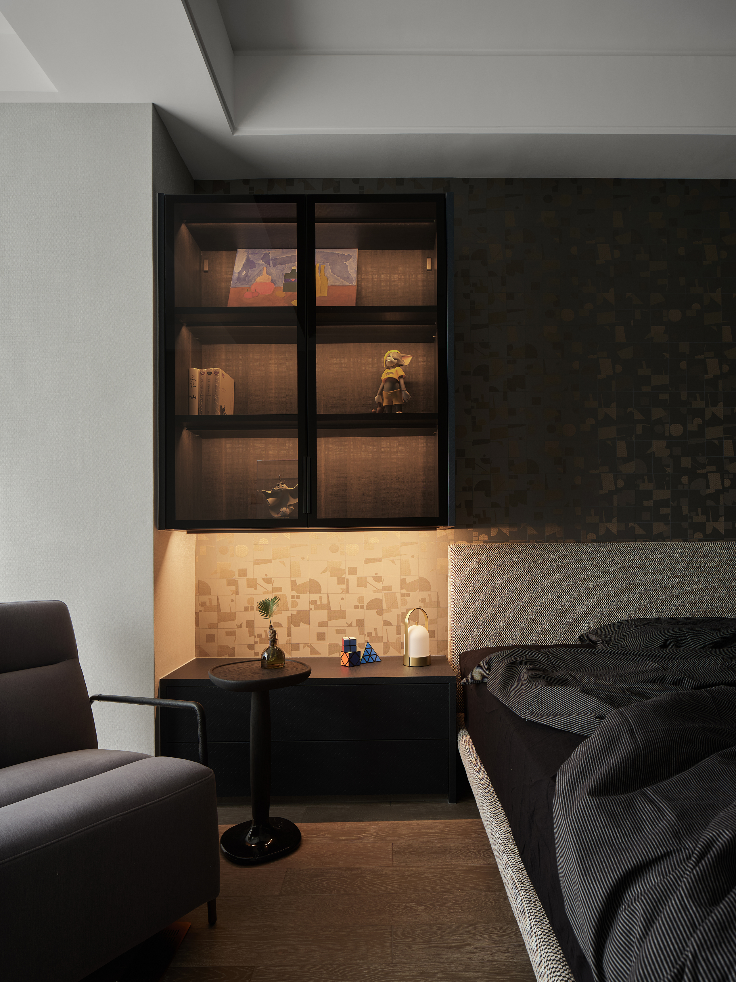 一楼客餐厅,意式简约打底,蓝灰使人平静,在沙发上随意找个姿势,倏忽之间,一个下午已然不见。沉浸在独立空间中,找到一刻世俗的远离,再推门而出时,已是个不一样的自己。