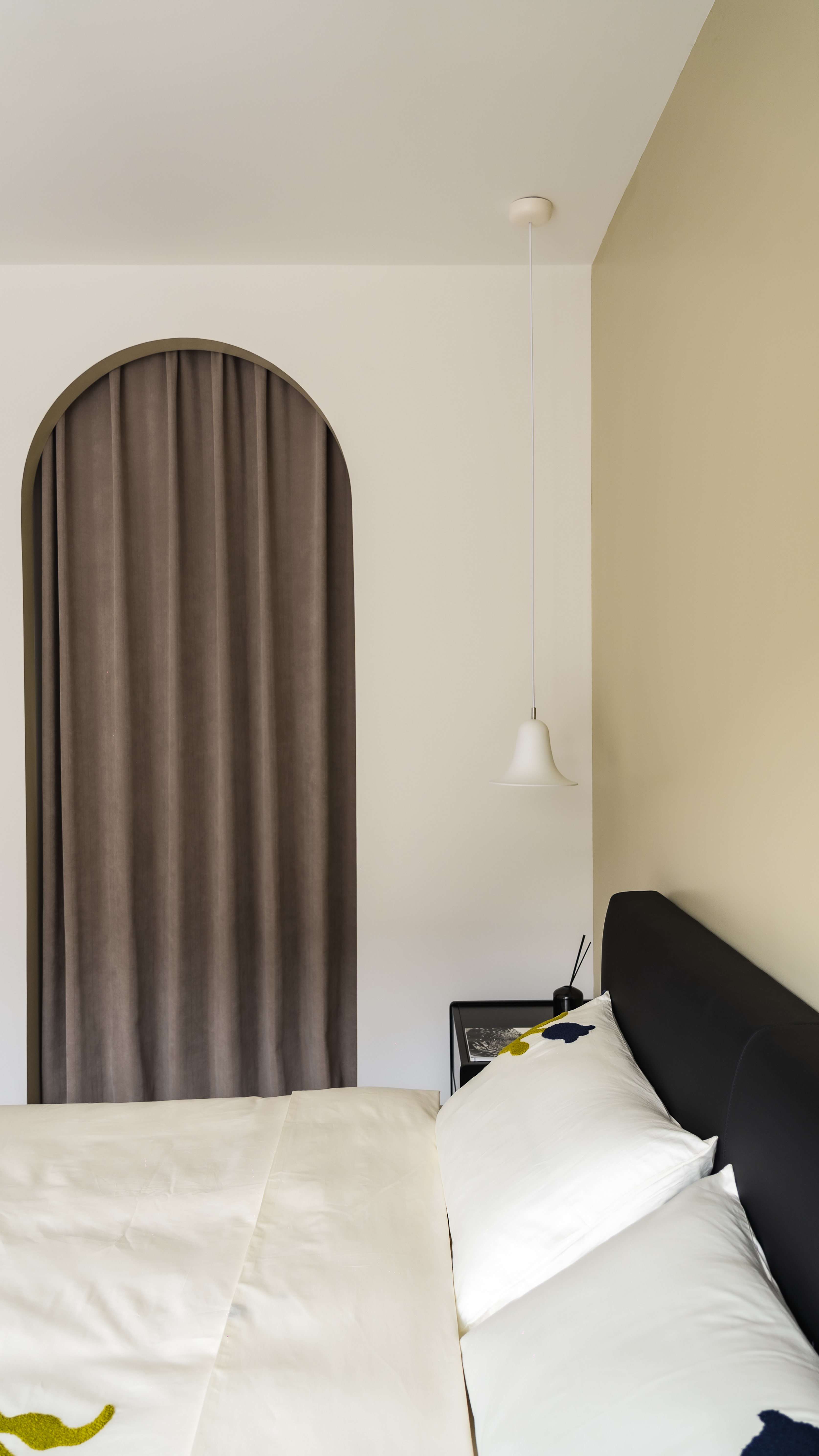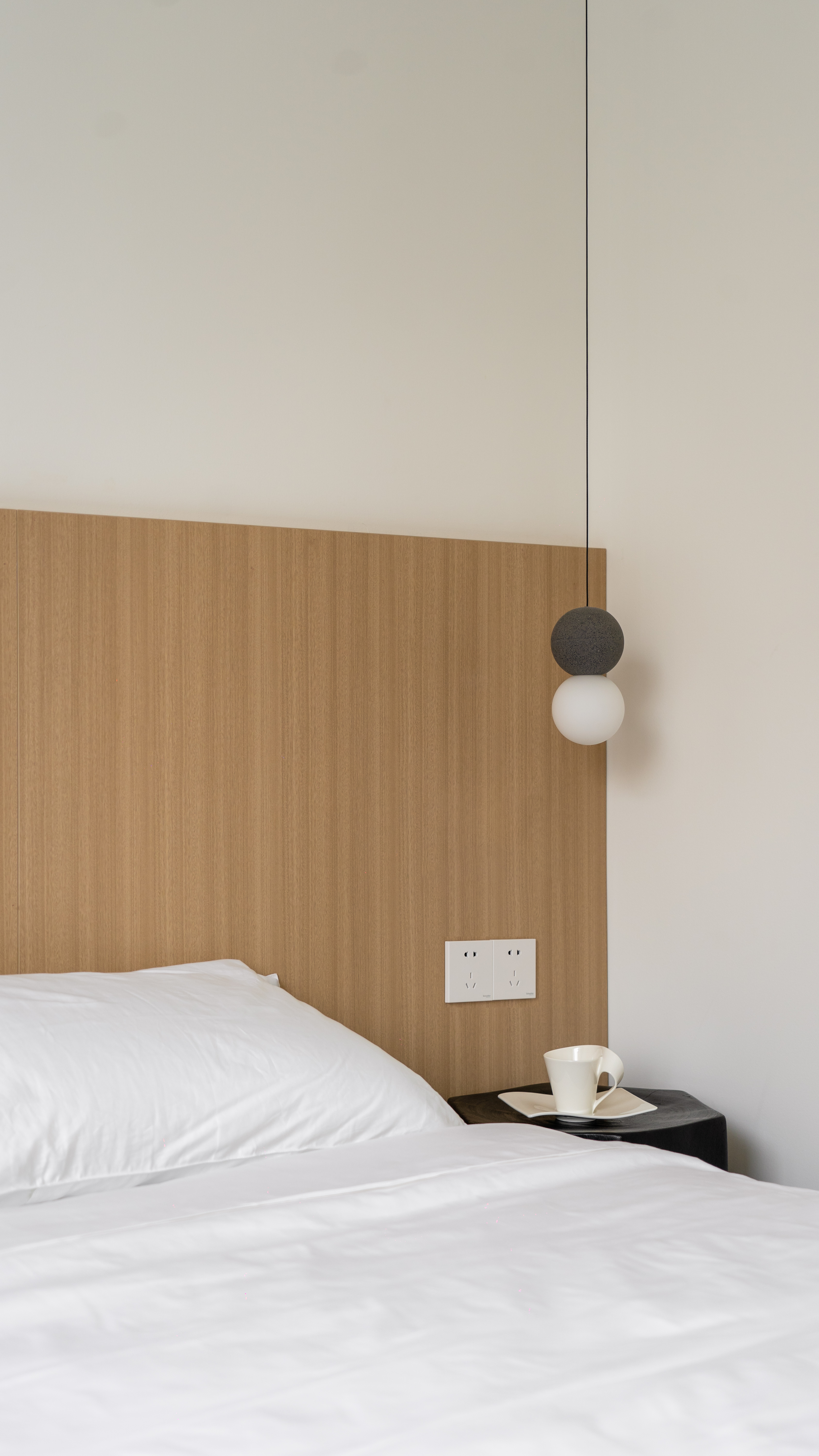 8.老人房希望拥有大尺寸的床,这样可以保证舒适的状态下尽量的“亲切又独立”,设置独立的卫浴间,原木浅浅的颜色和客厅的色系材质元素保持关联一致。