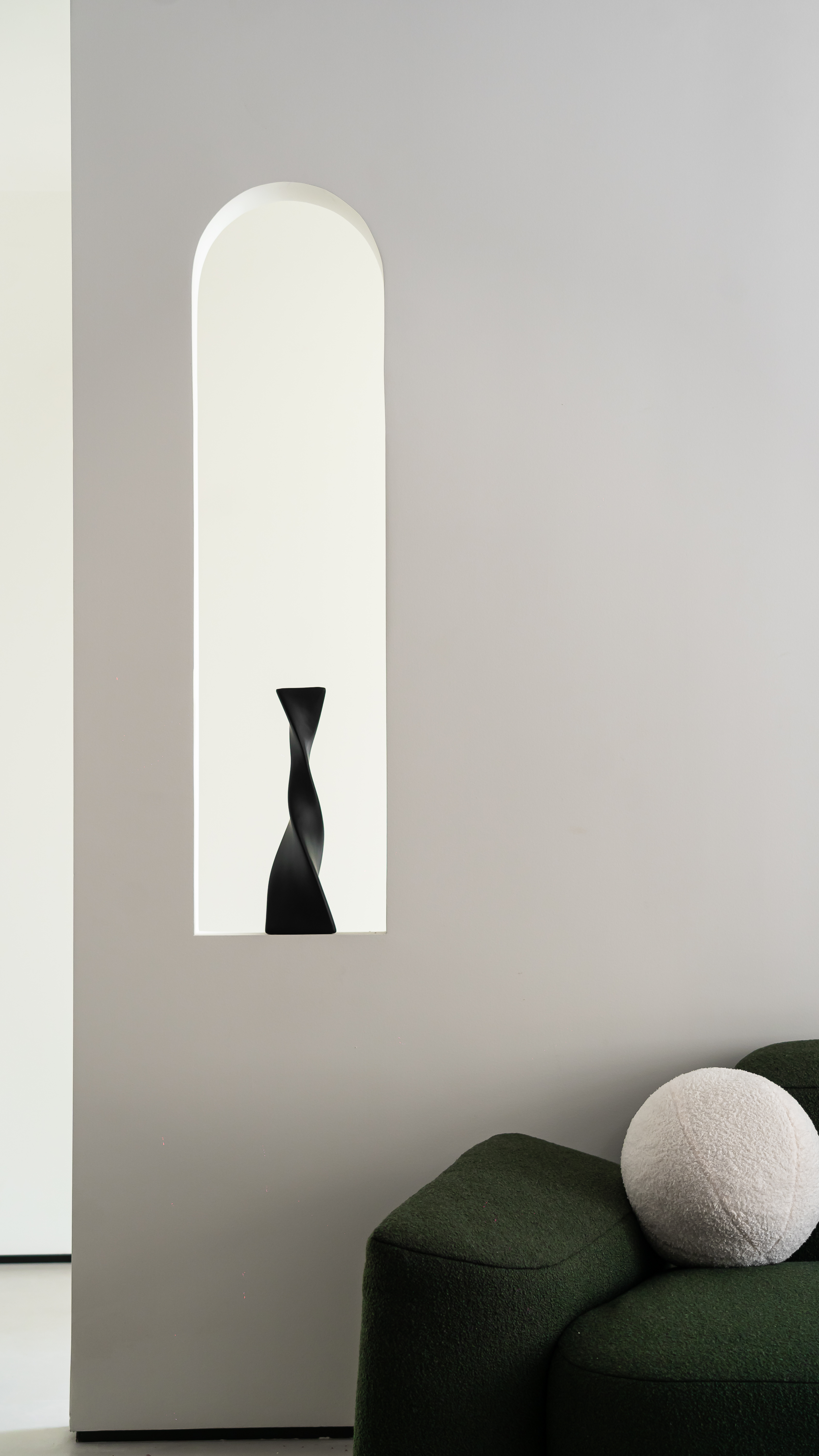 2.破立的关系从墙面“调节”的细节开始,步步启程,延长沙发背景墙,纯白立面中用小的造型点睛,将原始细碎的内部空间变得端整有趣,薄墙加通透的造型亦发挥了双面借光的作用,顶面的几何线条是交错碰撞,设计的延展是呈现空间的全新面孔。