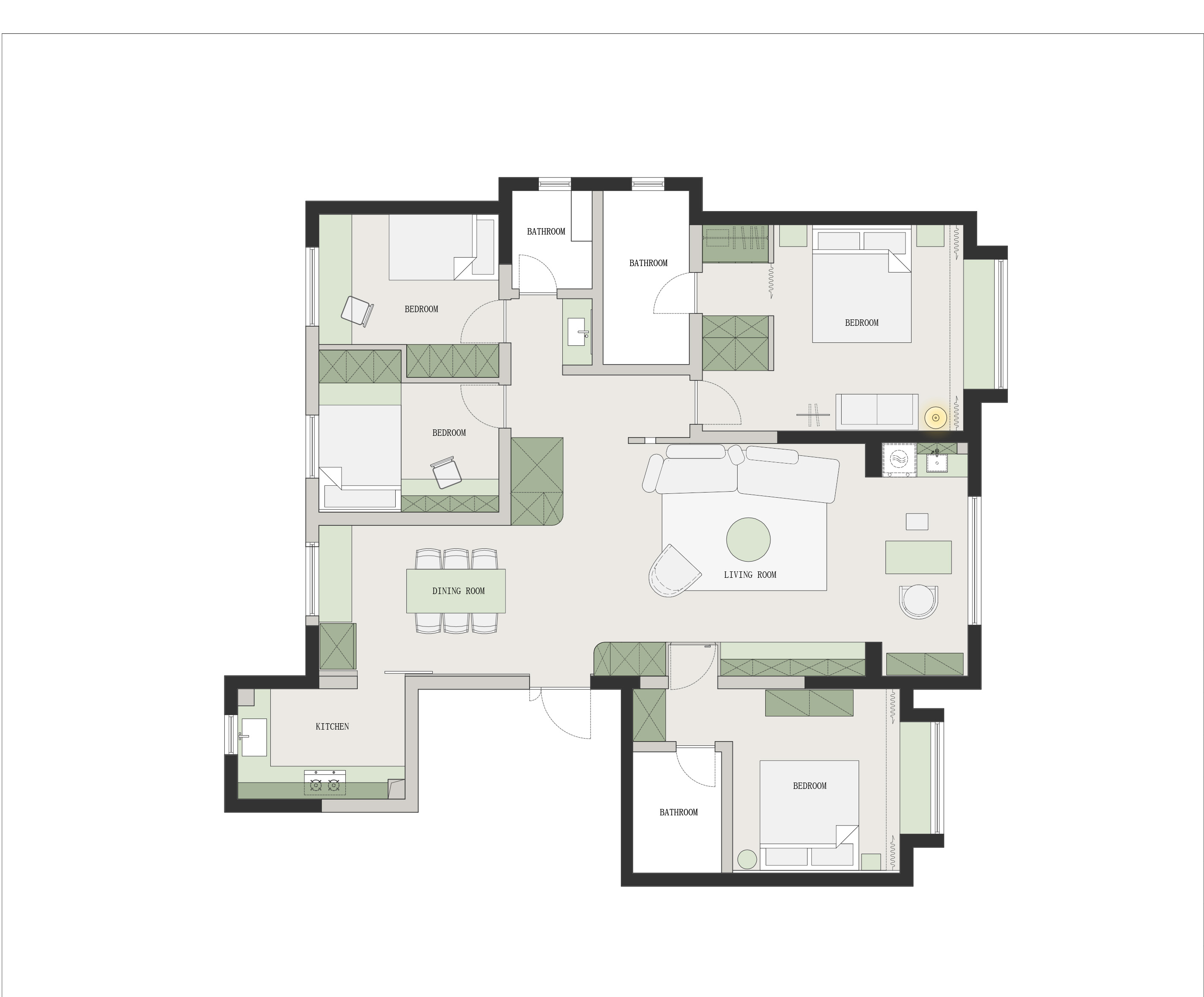 空间意境:满足三代同堂的舒适居住和充分收纳需求,且需要兼顾总预算