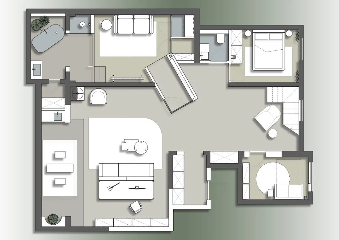 项目定位:本案,揽月府260平方米底跃空间,设计在空间的性能赋予上,为每位家庭成员都平衡了完美关系,独立又亲密,彼此重要又不是附属。