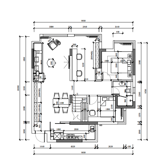 空间布局:餐厅独具采光优势,秉承简约格调,减少琐碎装饰,岛台拼合桌椅,自成回环动线,编织元素、亮泽金属、暖咖饰面,创造出新的烟火温度。